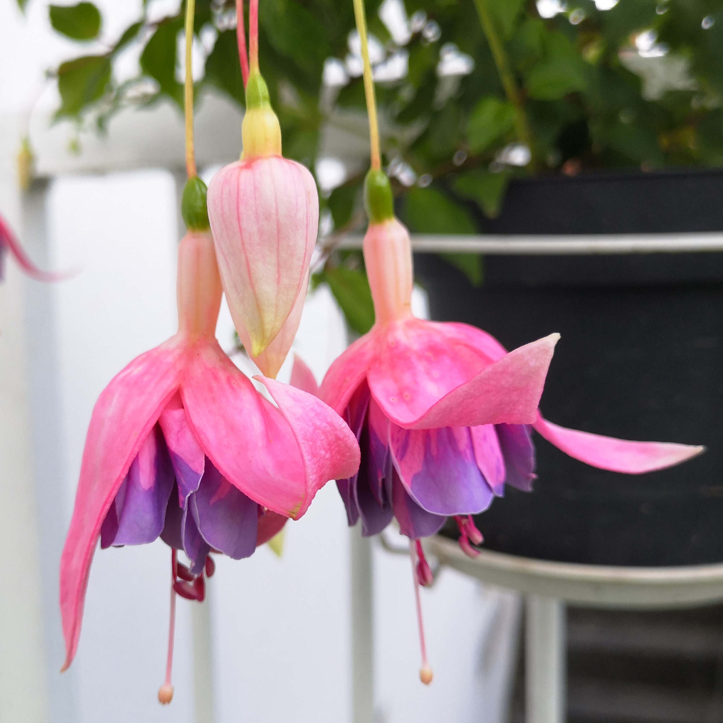 Diese Fuchsie habe ich bestimmt schon 3 Jahre. Es ist eine Fuchsie mit starkem Wuchs, großen Blüten in imposanten Farben. Die Sepalen sind in sich gedreht und unterseits gekreppt.
