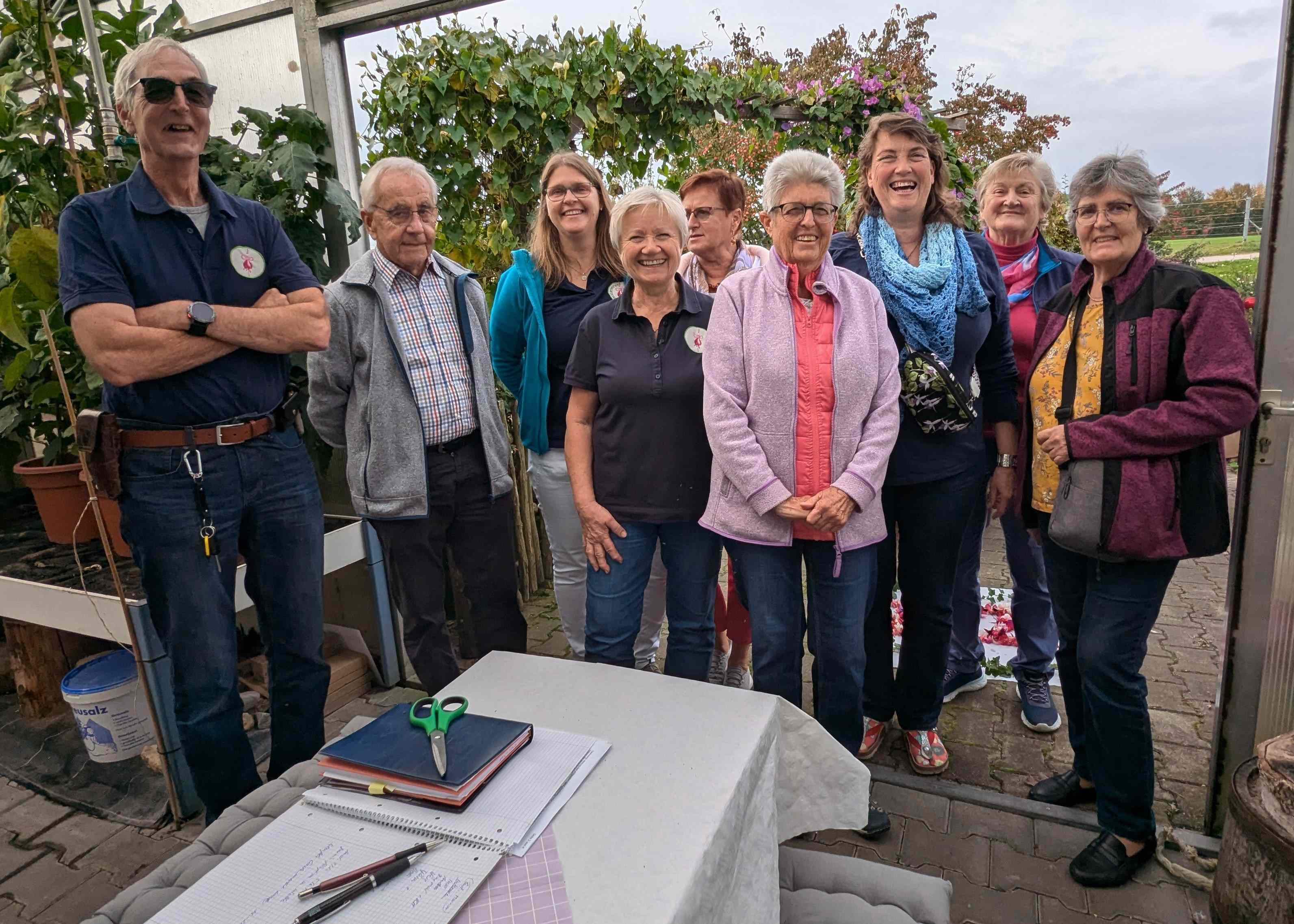 Wir hatten ein schönes Treffen mit 15 Personen. Es wurde gefachsimpelt, Rosi bot einen Überblick über dieses ereignisreiche Jahr, schließlich hatten wir ja auch die Landesgartenschau in Kirchheim, die Jahreshauptversammlung mit der Wahl der neuen Geschäftsführerin Yasmin Wolff, da gab es sogar noch eine Flasche Sekt und anschließend Vorschläge für Ausflüge für das kommende Jahr. Und natürlich haben wir noch einmal viele Fuchsien gesehen, die zum Herbst wie jedes Jahr all ihre Farben zeigen. Nebenbei haben wir Kaffee getrunken und viel Kuchen gegessen, die als kleine Beigabe mitgebracht wurden! :)