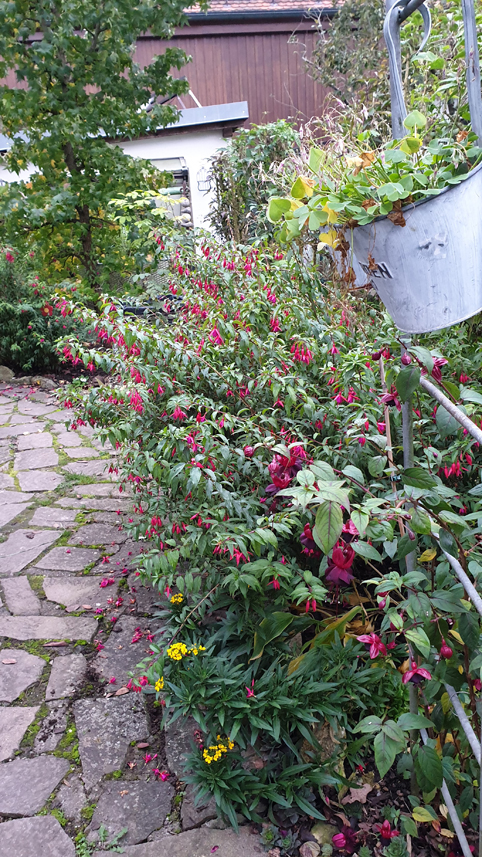 Ich weiß aber, dass in anderen Gärten diese Fuchsie zu einem Prachtexemplar werden kann.