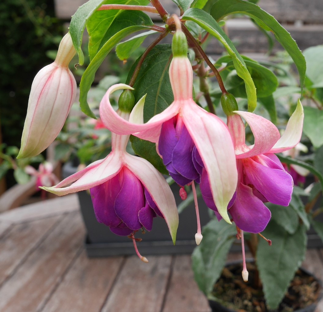 Nächste Saison bekommt sie einen großen Einzeltopf und ich hoffe, dass die vielen Holzstecklinge sich gut entwickeln. Ich finde diese Fuchsie wunderschön.