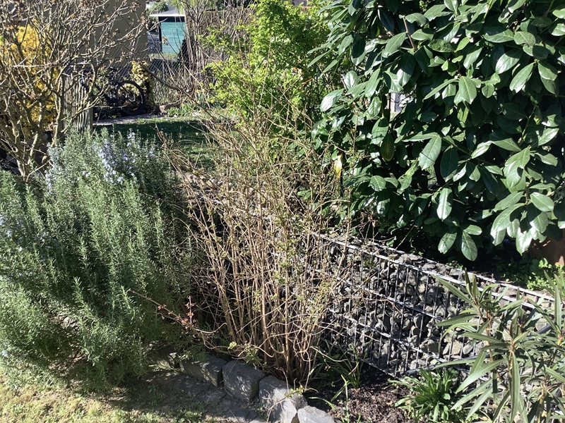 Ich warte mit dem Rückschnitt noch einige Zeit, bis genau absehbar ist, welche Zweige ohne Leben sind. Diese kommen dann ab.