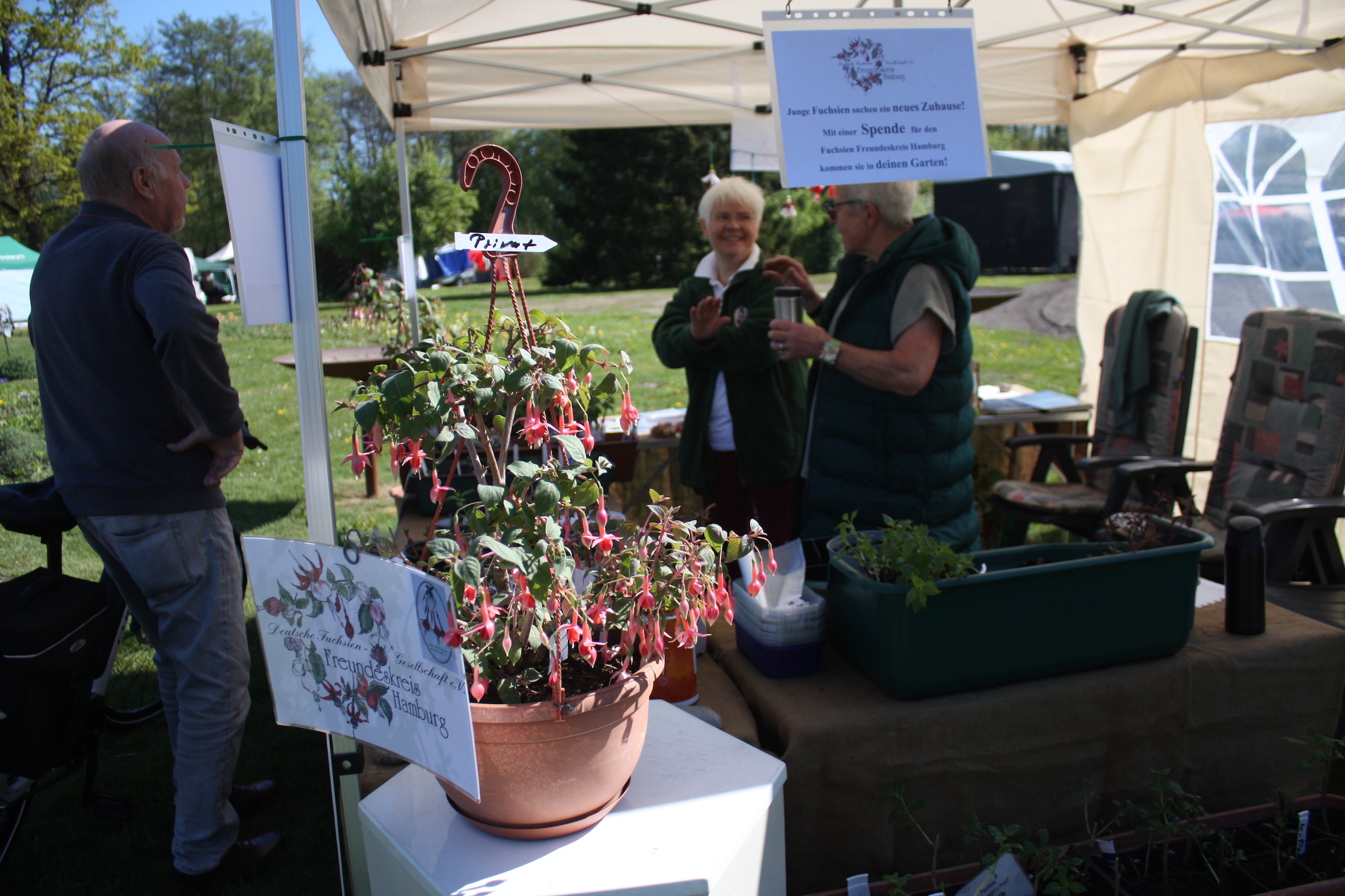 Hallo nun will ich mich auch mal wieder melden. Das war ein arbeitsreiches WE in HH: am Samstag gab es eine Einladung nach Karoxborstel dort war in der Mühle das Fest "Seevetal brummt" alles um Insekten und Bienen freundliche Gärten. Mit einem Imker, dem Wurmkontor, wir als Fuchsienfreunde , es wurde Insektenfreundliche Saat verschenkt, eine Gärtnerei brachte insektenfreundliche Pflanzen mit usw. zu essen gab es Hof eigene Kartoffeln mit Quark (oberlecker) Kaffee und Kuchen. Das Publikum war super entspannt, das Wetter super sonnig. Wenn wir jetzt nicht am Sonntag das "Tulpen und Frühlingsfest" vor uns gehabt hätten....d.h. Horst und ich haben am NM noch den Hänger mit Pflanzen und Stühlen, Pavillon usw. eingepackt damit wir uns am Sonntag morgen um 8.00 Uhr treffen konnten zum aufbauen. Horst ging dann danach nach Hause zum GB feiern von Brunhilde, kam aber dann doch noch mal wieder mit ihr mit Kuchen und Torte bis NM. Dabei waren dann im Dauereinsatz: Rosie Möller, Marlies, Michaela und ich. Alle anderen waren unterwegs. Am Abend mussten die 3 nach Hamburg z. T. mit der Bahn, ich konnte, nach dem abbauen, um 18.00 Uhr nach Hause, bekam Spargel zum Abendbrot und war nur noch platt.