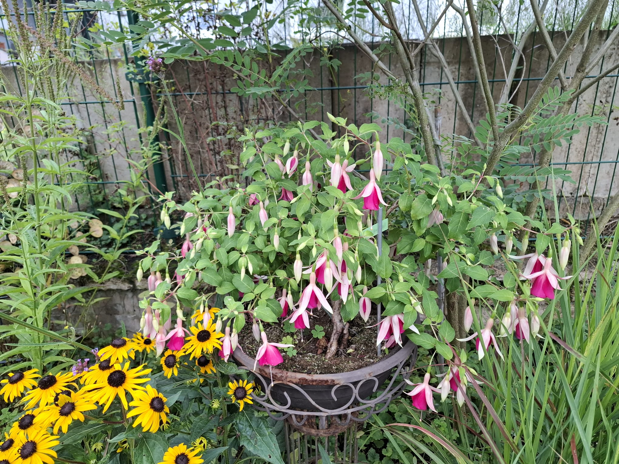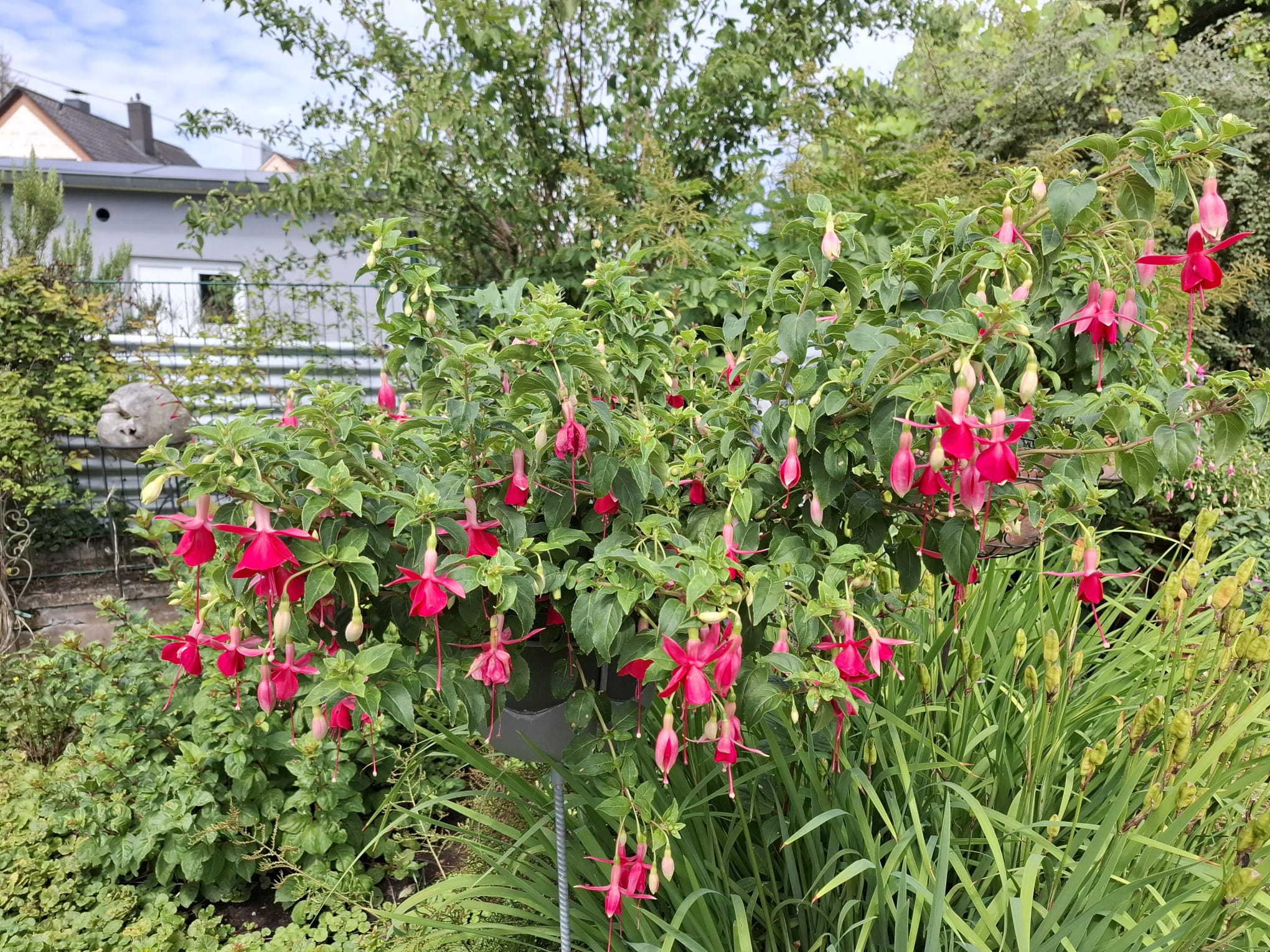 Meine größte Sorge waren meine Fuchsien. Gut sehen sie ja aus, aber die Blüten fehlten. Dabei habe ich doch über 200 Sorten die natürlich nicht erkannt werden konnten. Zum Glück konnte ich wenigstens mit ein paar Blühern beeindrucken.
