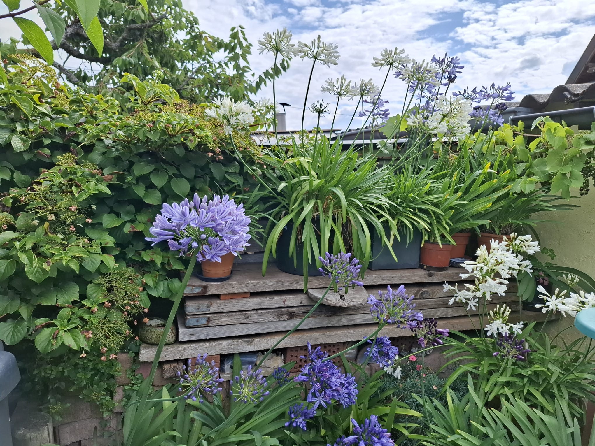 Unsere Terrasse ist ja nur begrenzt groß, doch wir schafften es für 21 Personen Platz anzubieten. Um 14.30 Uhr kamen die ersten Gäste, brachten Kuchen, Herzhaftes, sogar Kaffee mit. Natürlich kamen auch Pflanzen...