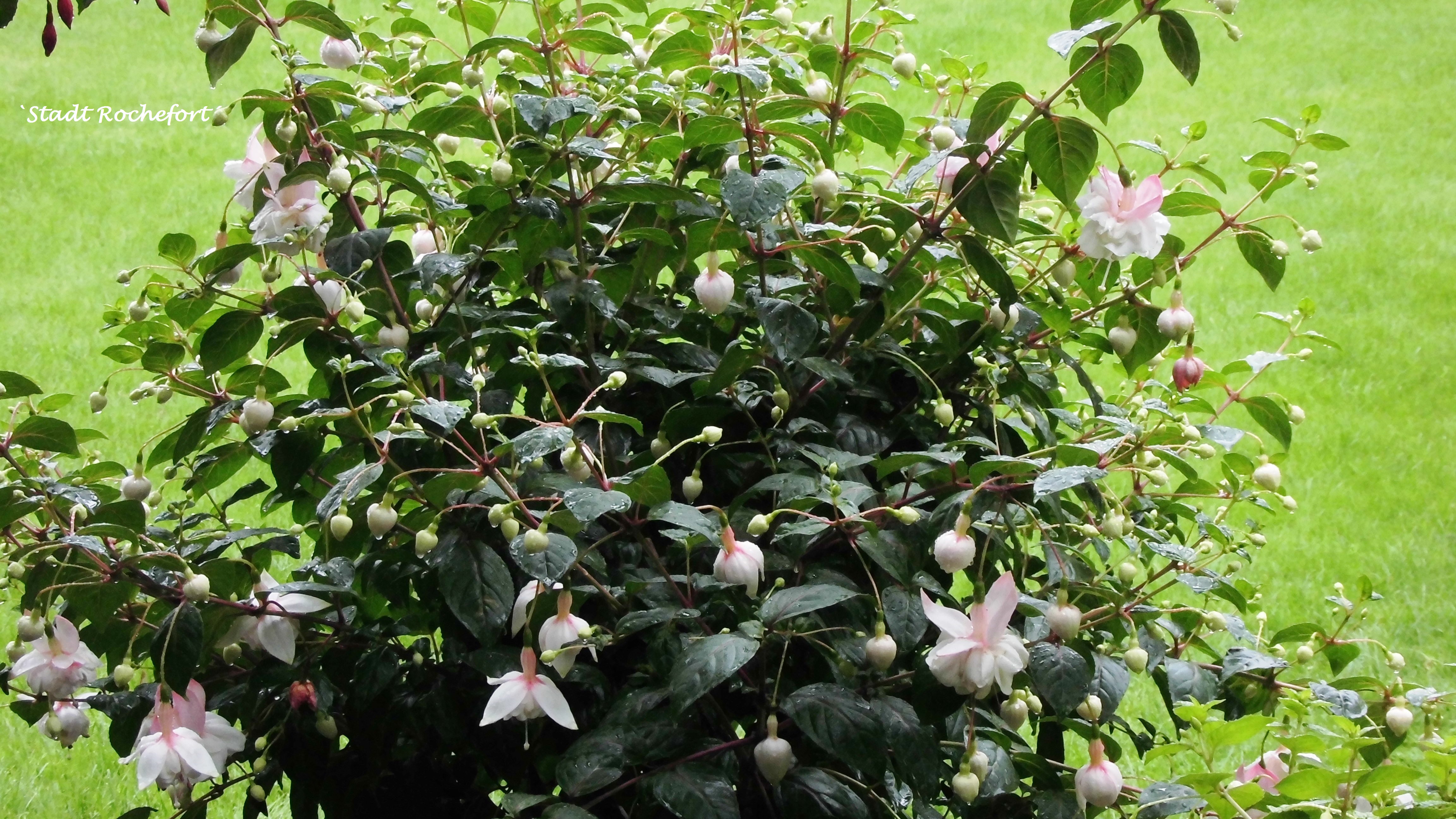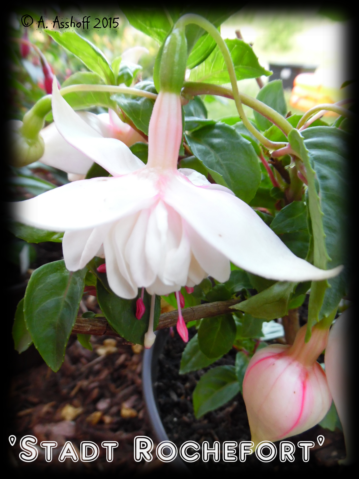 Die 'Stadt Rochefort' habe ich auch schon recht lange und ich gebe sie immer gern als Anfängerfuchsie weiter. Leider Gottes sind alle Neueinsteiger immer auf die großen, dicken gefüllten Sorten aus. Mit den "Normalos" wollen die meisten sich gar nicht erst abgeben. (Kommt dann später :D) Aber bei dieser Sorte brauch ich da keine Bedenken haben. Sie wächst gut,verzeiht auch mal einen Pflegefehler und blüht immer wieder aufs Neue. Die Blüten halten auch schön lange und werden nicht gleich braun im Regen. Ich guck mal, ob ich Fotos finde :)