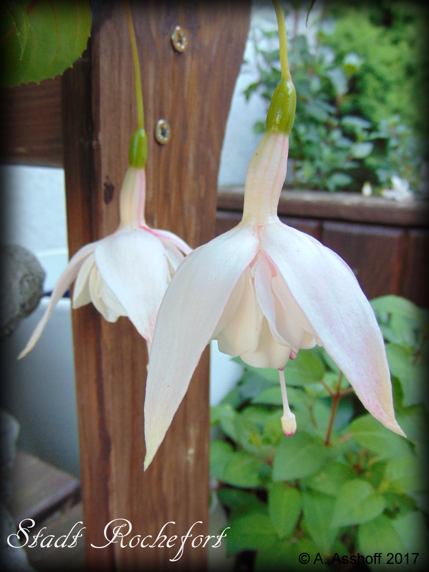 Beim Fotografieren ist mir die Ähnlichkeit zu anderen weißen Fuchsien aufgefallen.