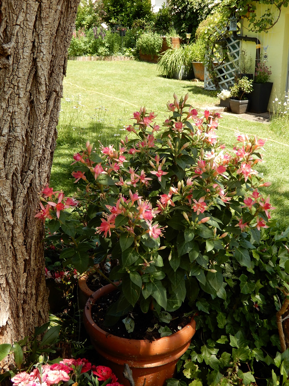 Die ist wirklich prächtig und groß! Schon beeindruckend, wie buschig manche Fuchsien im Topf werden