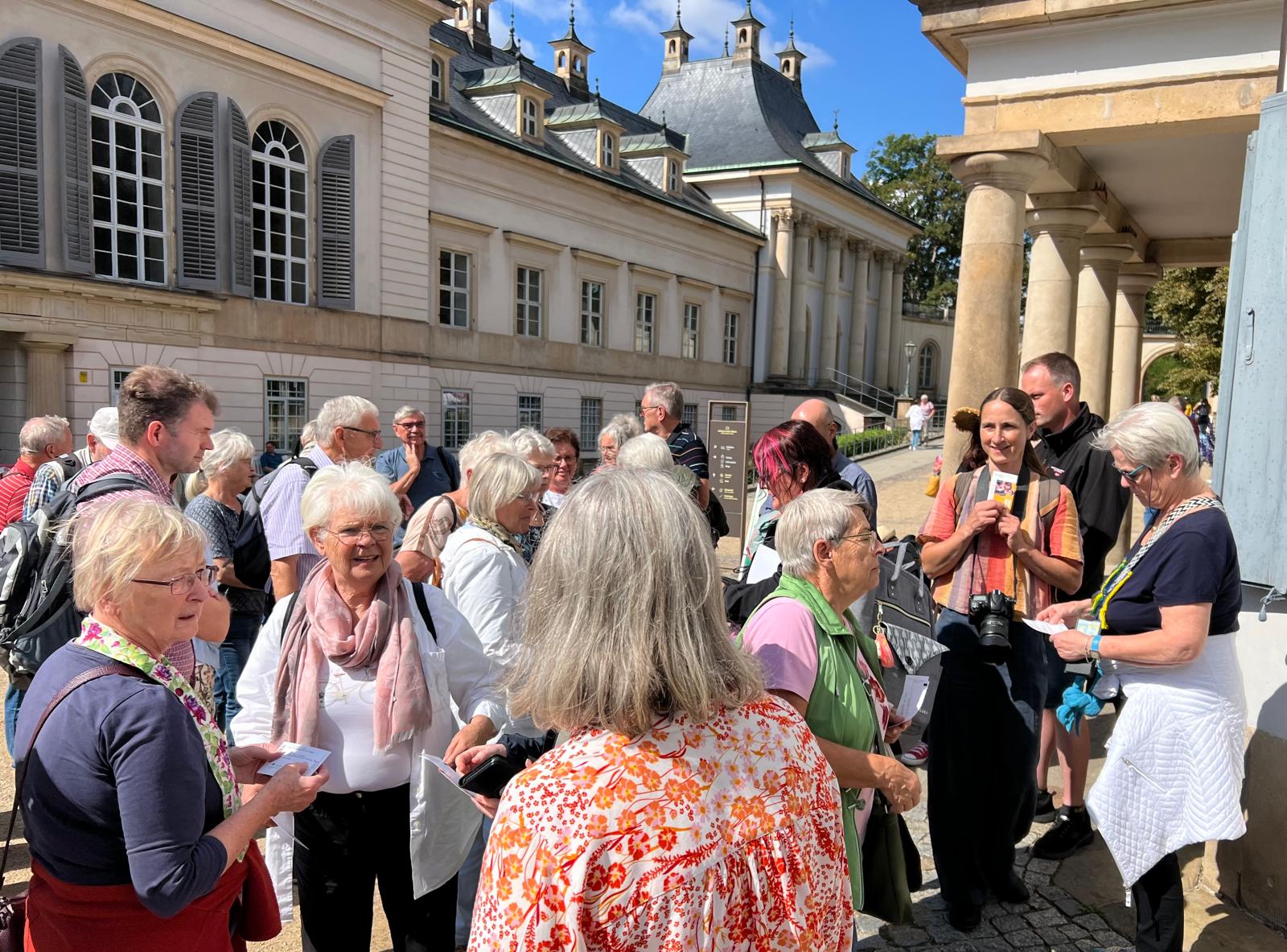 hier warteten wir auf unsere Führer für das Schloß Pillnitz und die Parkführung.