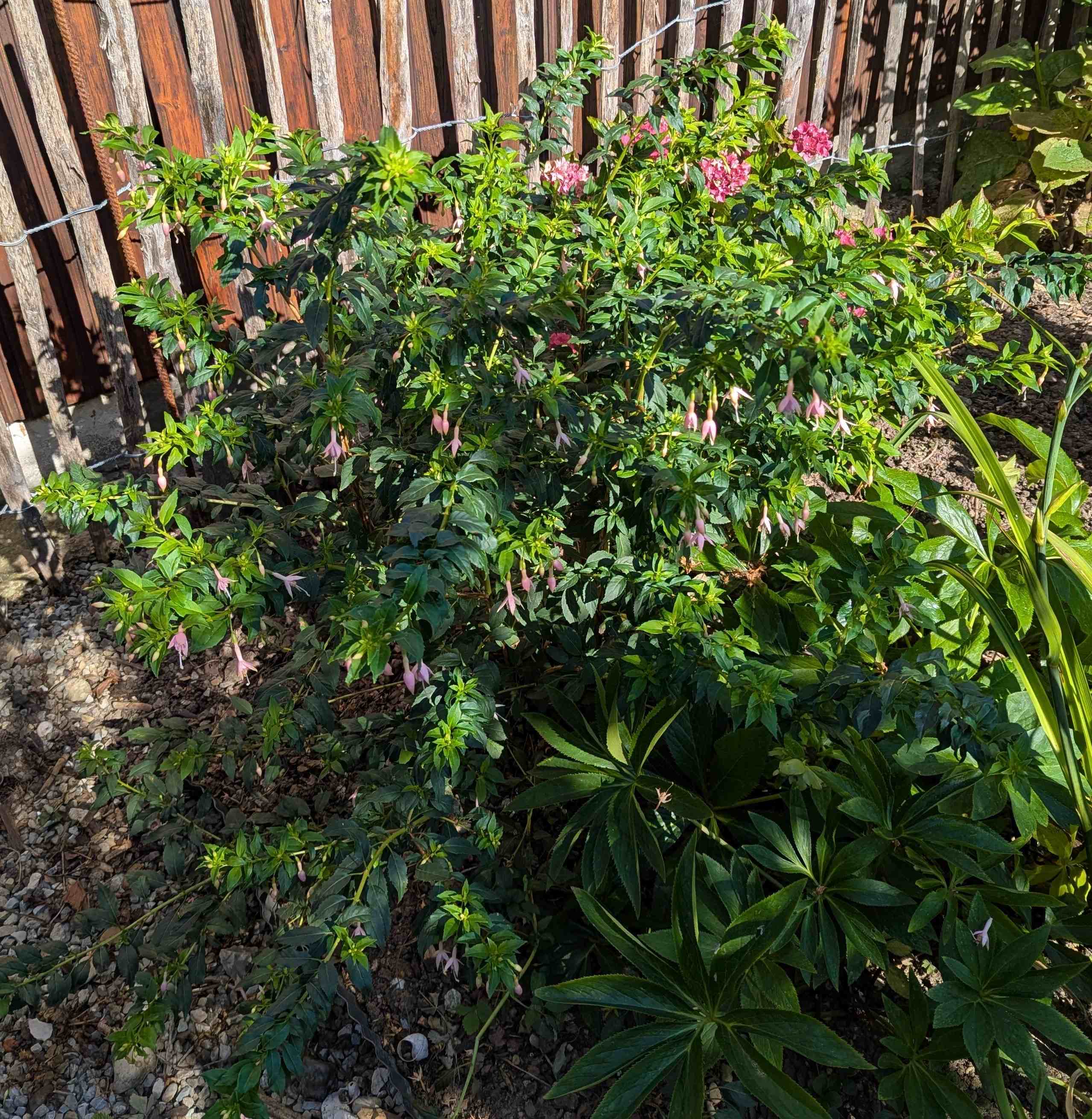 Schon oft gezeigt, aber immer wieder bin ich selbst über die Größe der beiden Fuchsien überrascht.