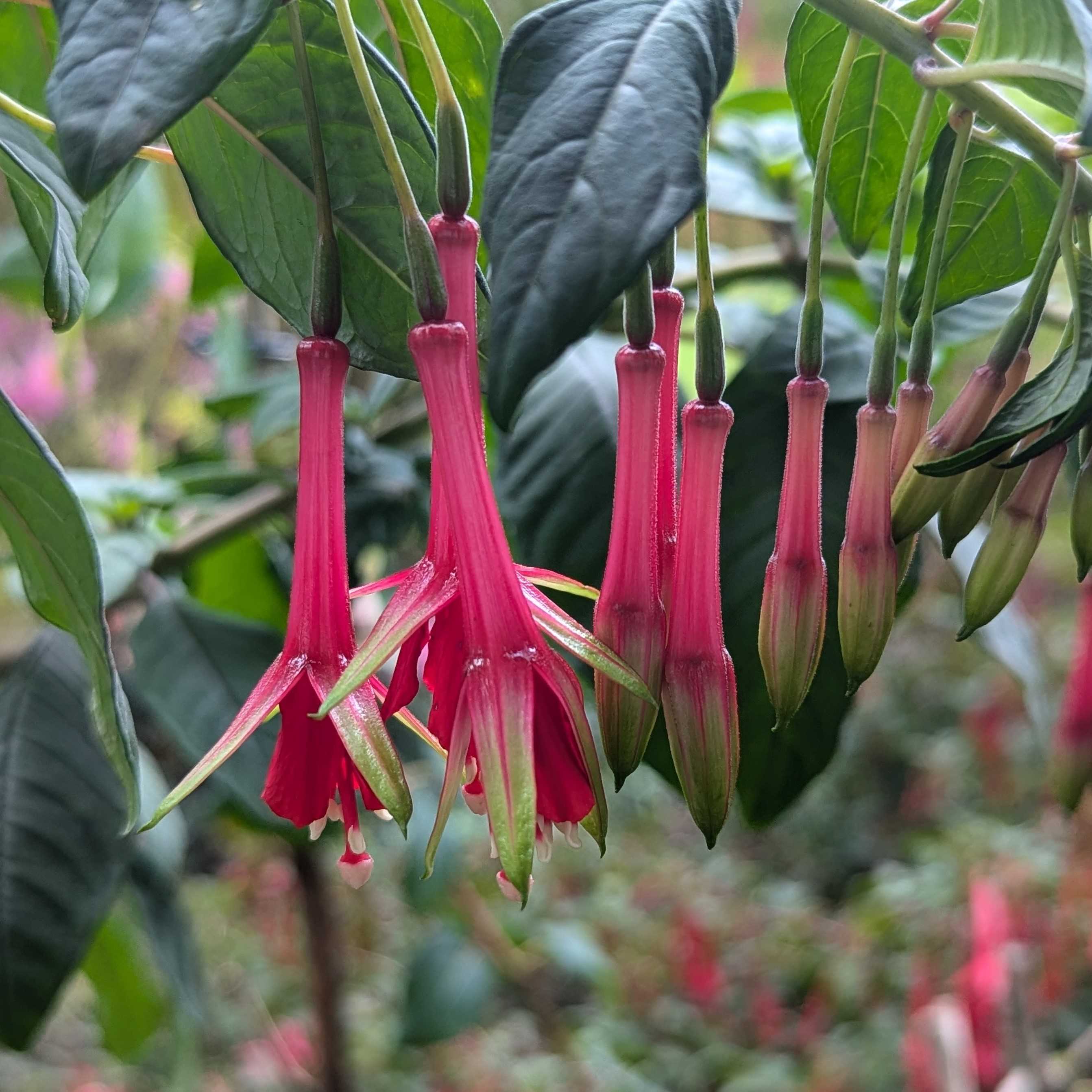 Eine Fuchsie die ich erst seit diesem Jahr habe und die mich begeistert. Zuerst wuchs sie unscheinbar zwischen anderen Sorten. Sie steht halbschattig und streckte sich erst mal in die Höhe. Seit ein paar Wochen hat sie nun auch Blüten die allesamt bezaubernd sind. Die Farbigkeit spricht mich so an. Ich könnte mir diese Fuchsie durchaus auch in einer Ampel vorstellen.