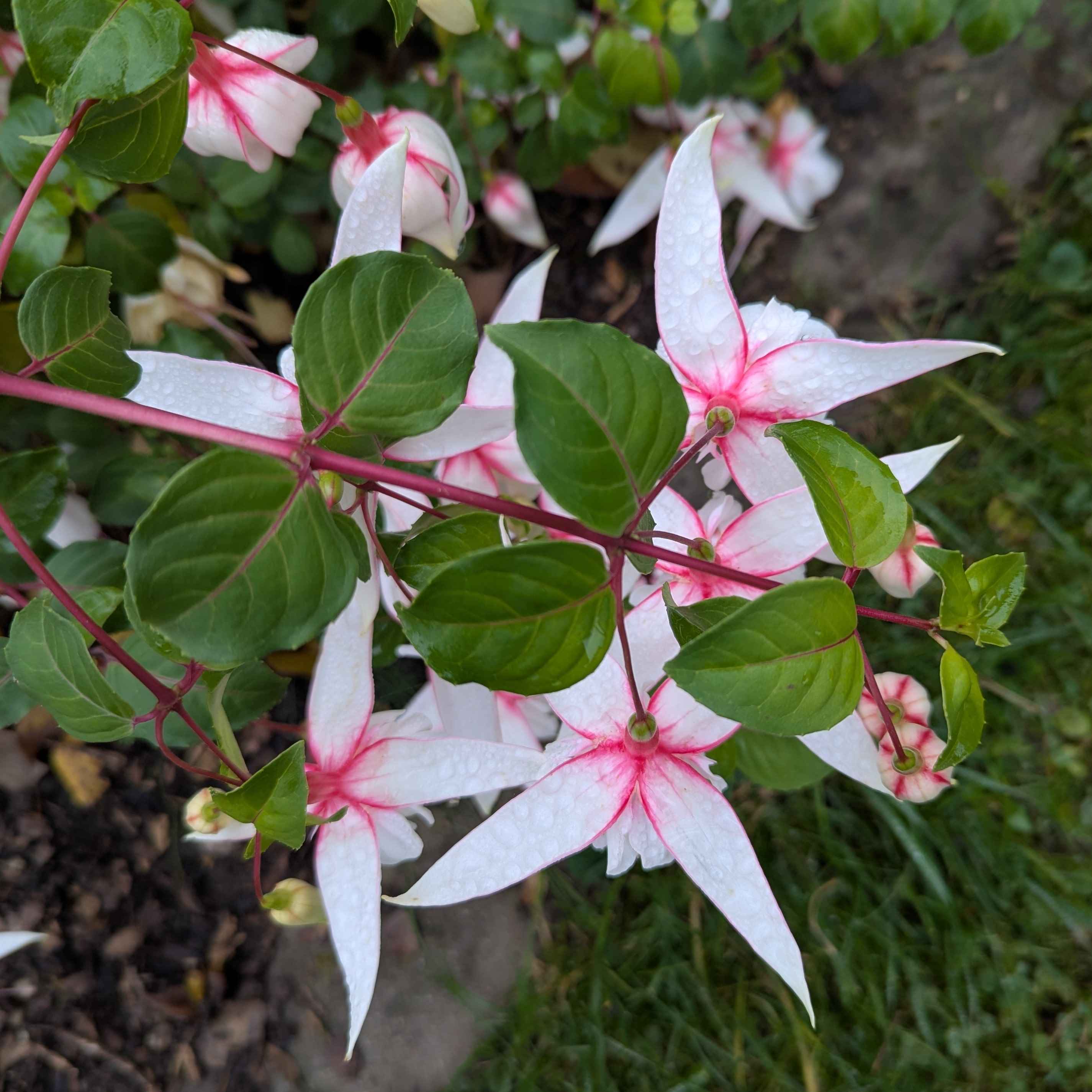 Eine weitere große Fuchsie ist die Bernisser Hardy und die Whiteknights Pearl Die großen übersehe ich oft, weil sie so selbstverständlich sind!