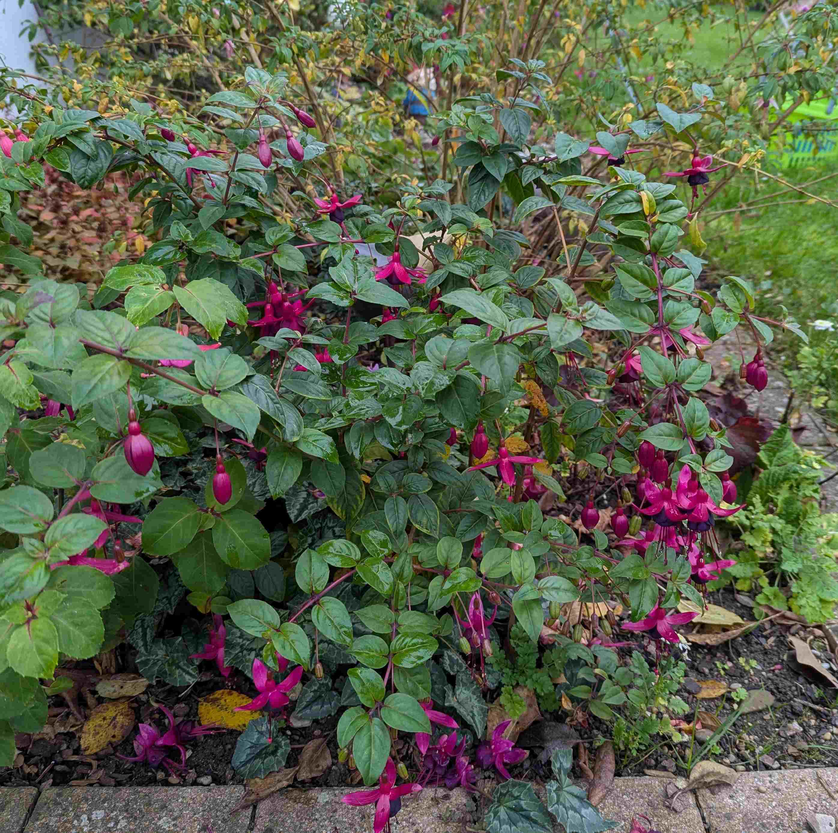 Schon oft gezeigt, aber immer wieder bin ich selbst über die Größe der beiden Fuchsien überrascht.