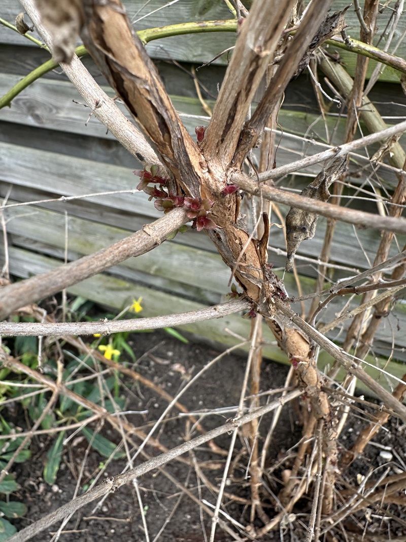 Die erste Triebe aus dem alten Holz von der Maggelanica vor meinem Haus sind erschienen. Vorhin entdeckt als ich den, angeblich nicht Weinterharten, Jasmin leicht geschnitten habe.