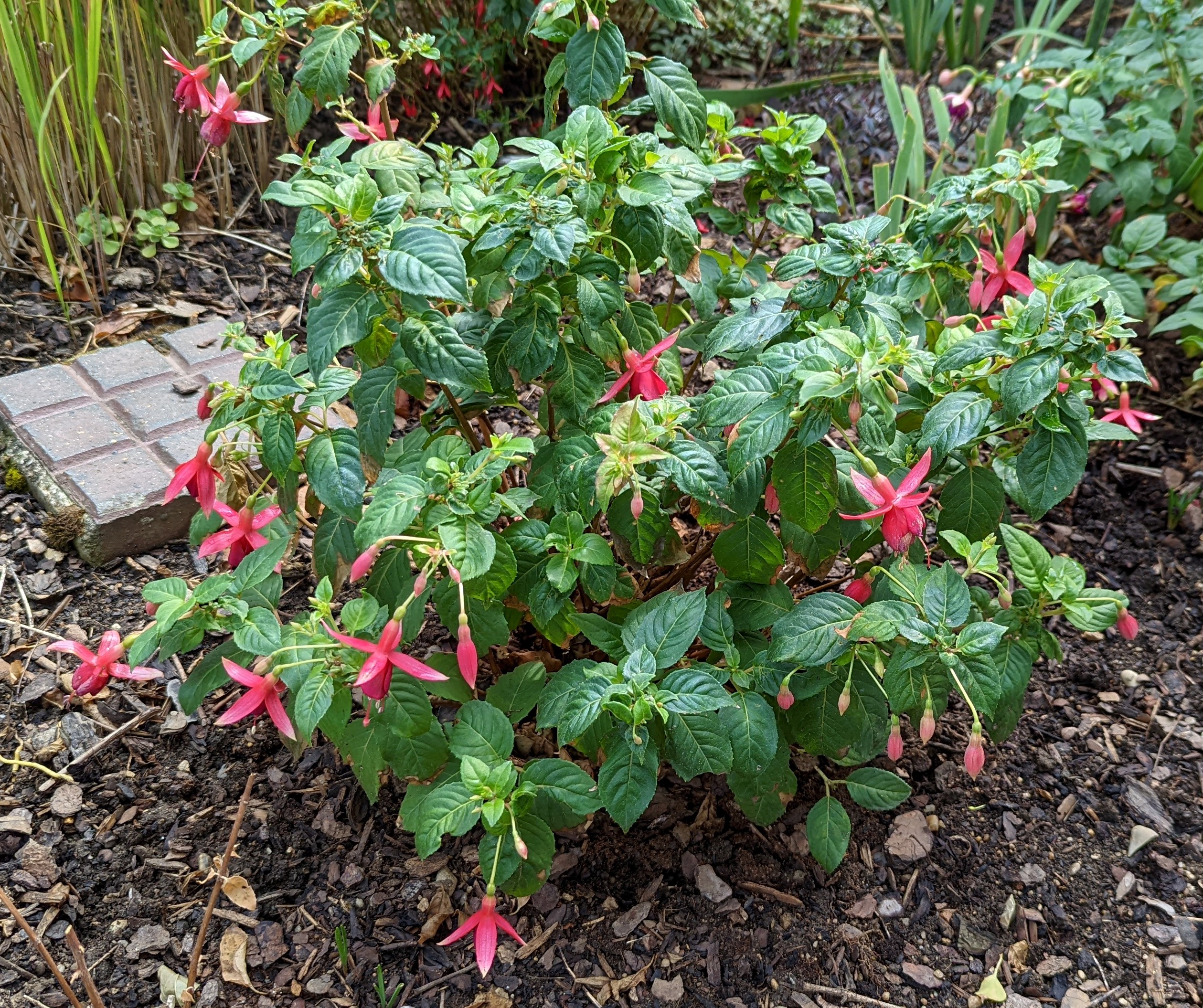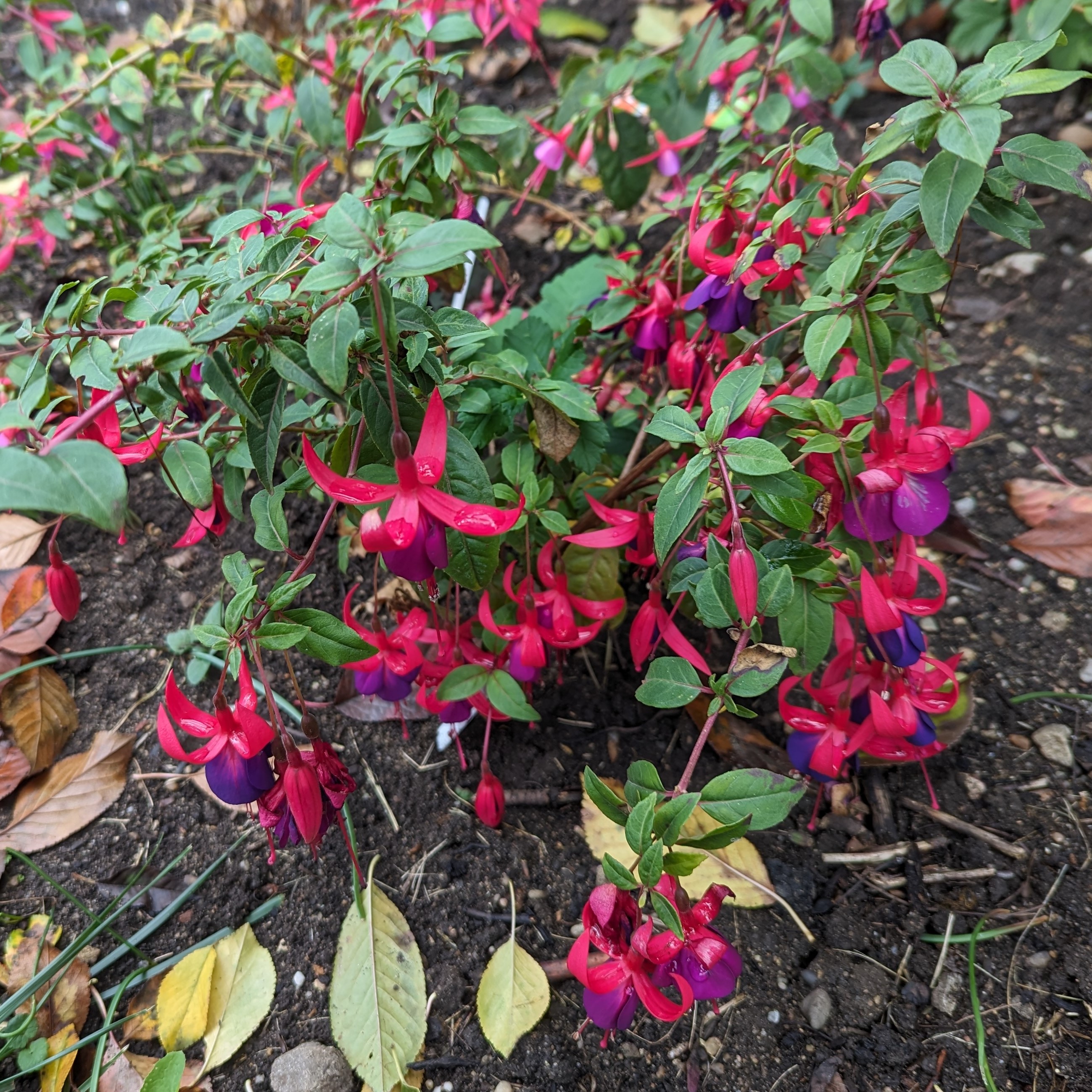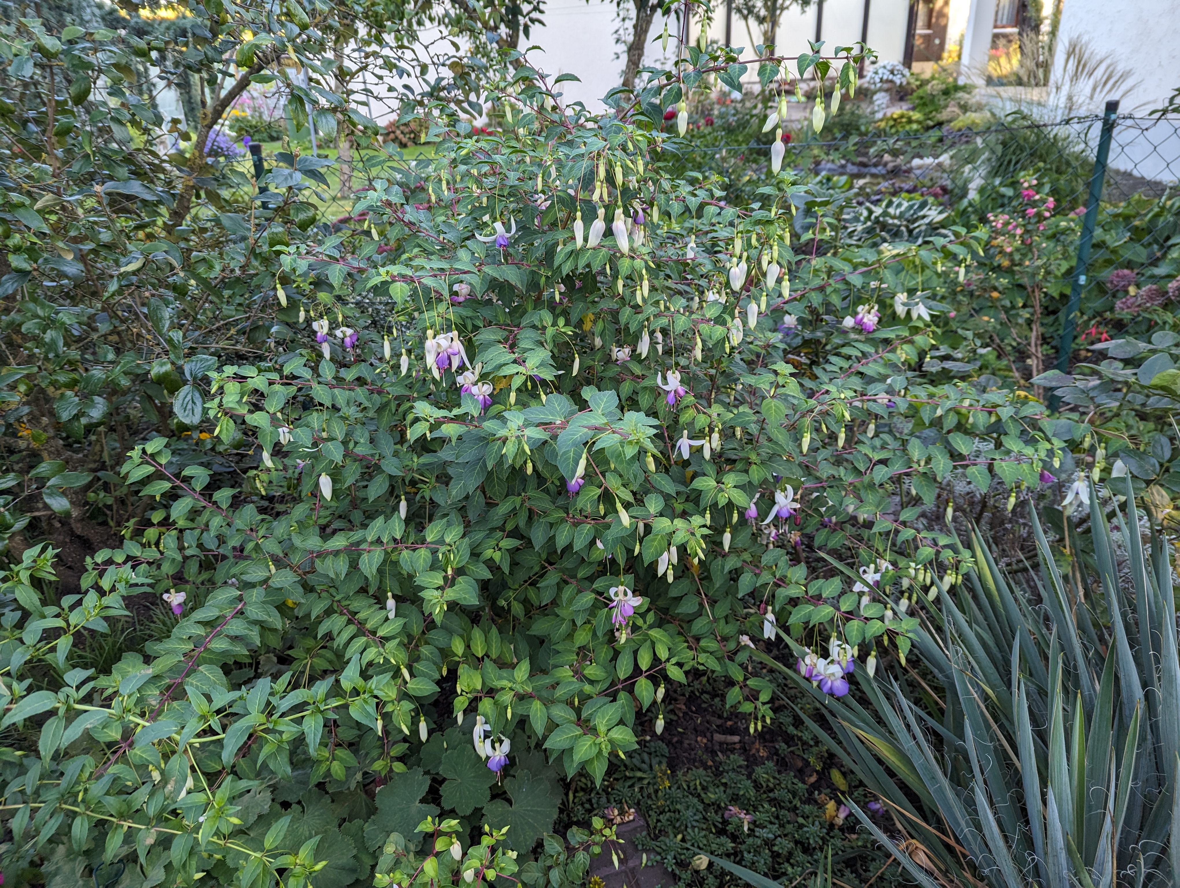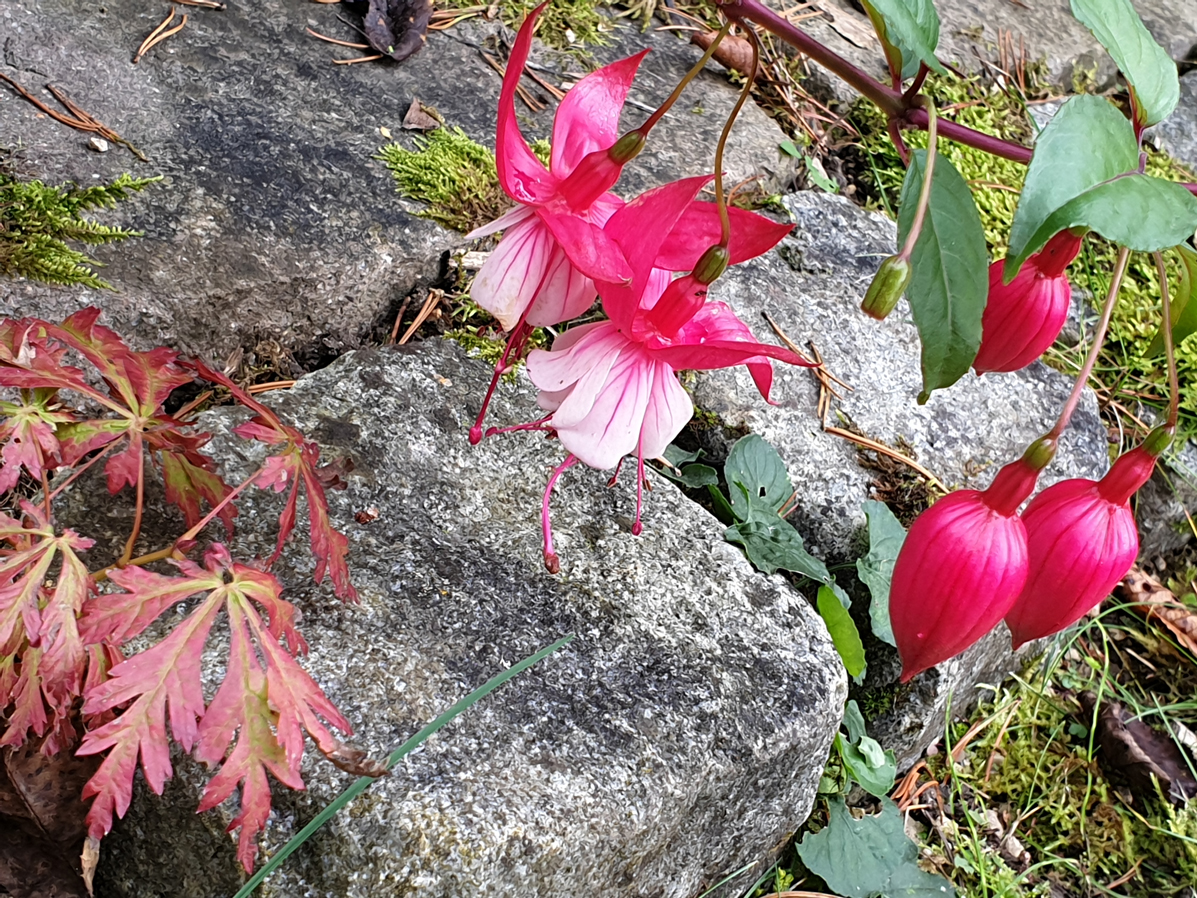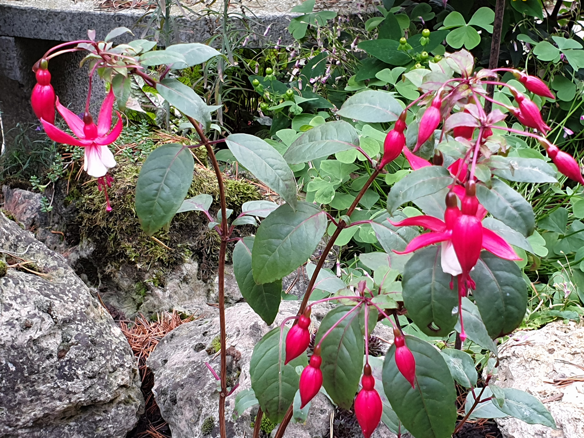 Viele winterharte Fuchsien bleiben sehr klein und die kann man überall hinsetzen. Meine Walz Polka hat Blüten und ich hoffe, dass sie noch aufgehen. Wenn doch diese kalte Nacht morgen nicht wäre... Ich denke, dass ich einige mit einem Vlies abdecken werde, wenigstens die eine Nacht! Nächstes Frühjahr werde ich schlauer sein! Ich werde sehen welche wiederkommen und welche nicht!
