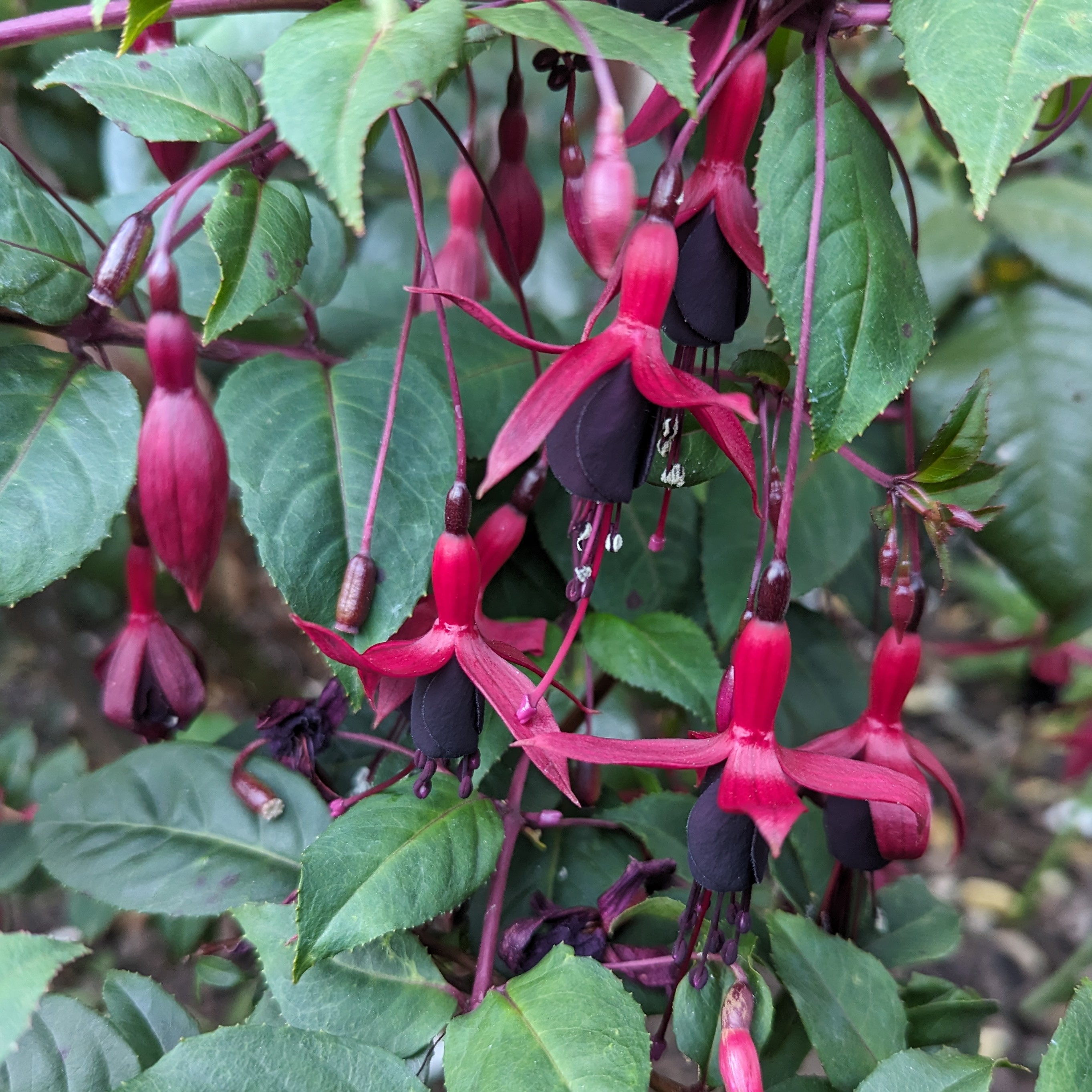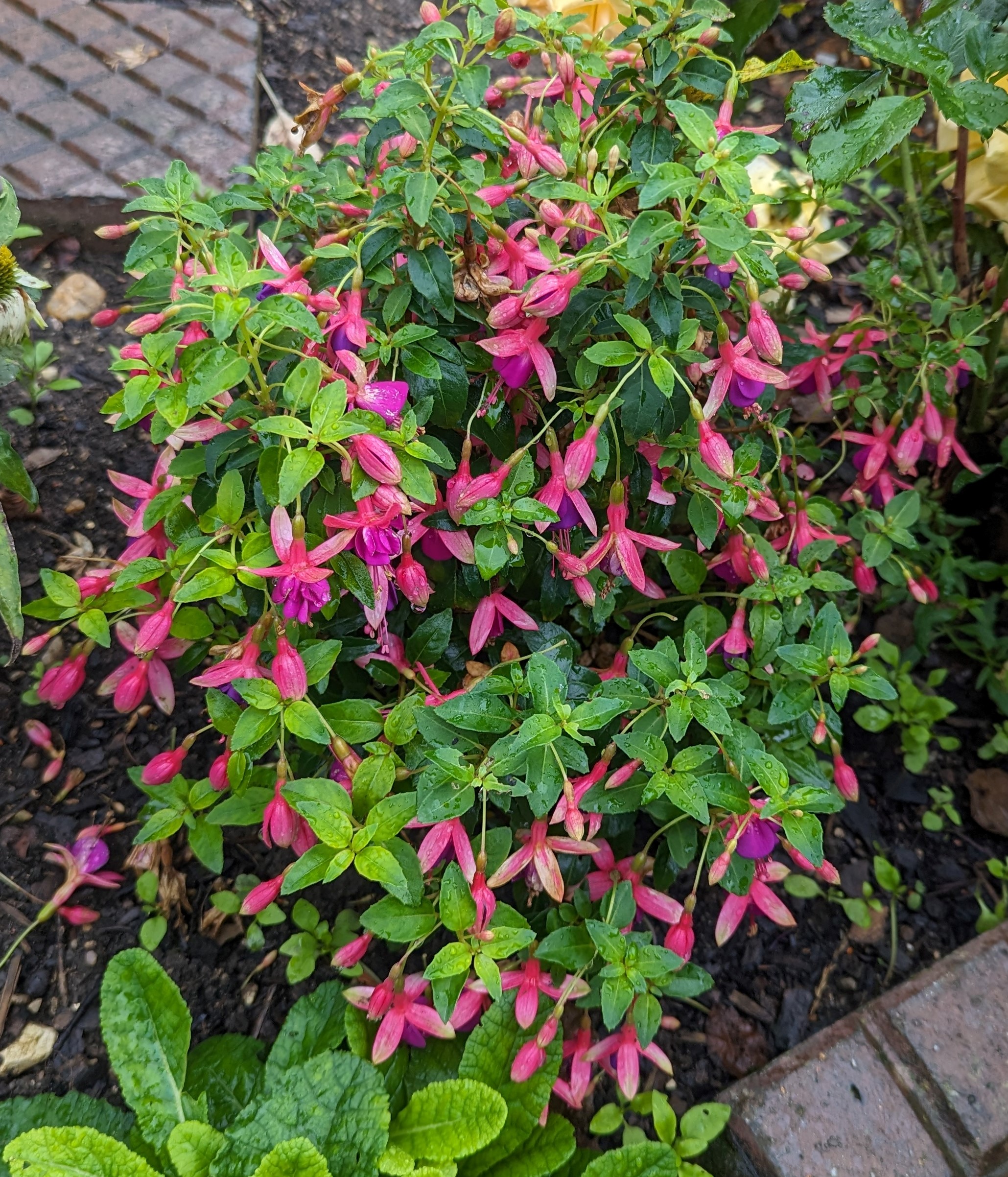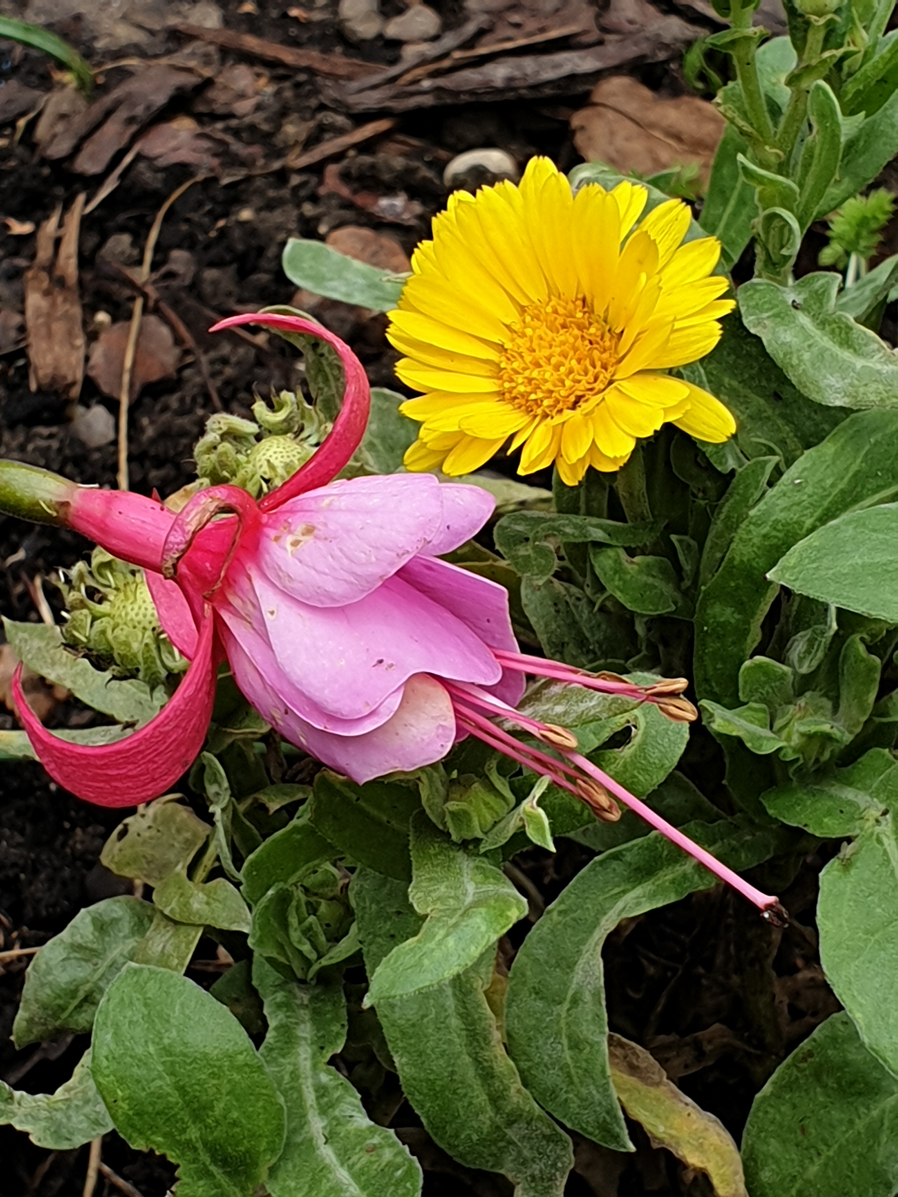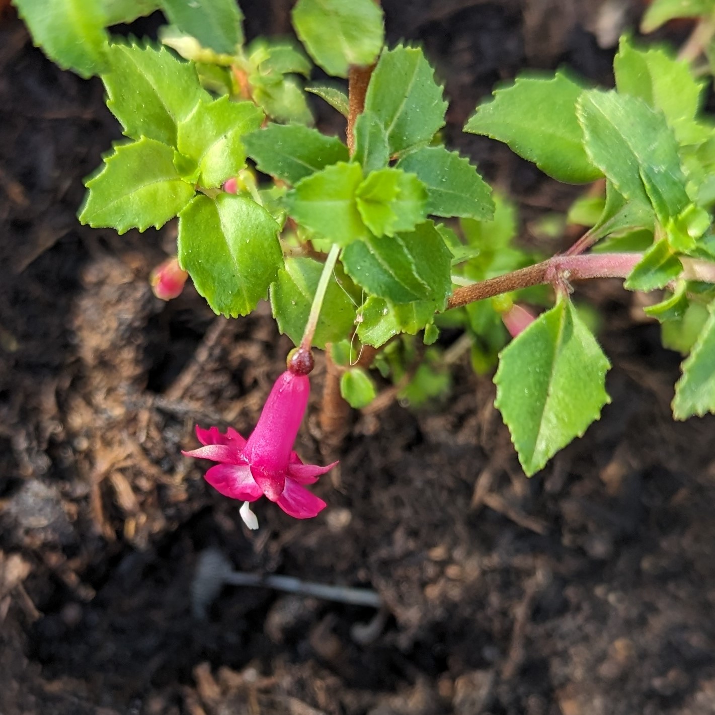 Viele winterharte Fuchsien bleiben sehr klein und die kann man überall hinsetzen. Meine Walz Polka hat Blüten und ich hoffe, dass sie noch aufgehen. Wenn doch diese kalte Nacht morgen nicht wäre... Ich denke, dass ich einige mit einem Vlies abdecken werde, wenigstens die eine Nacht! Nächstes Frühjahr werde ich schlauer sein! Ich werde sehen welche wiederkommen und welche nicht!