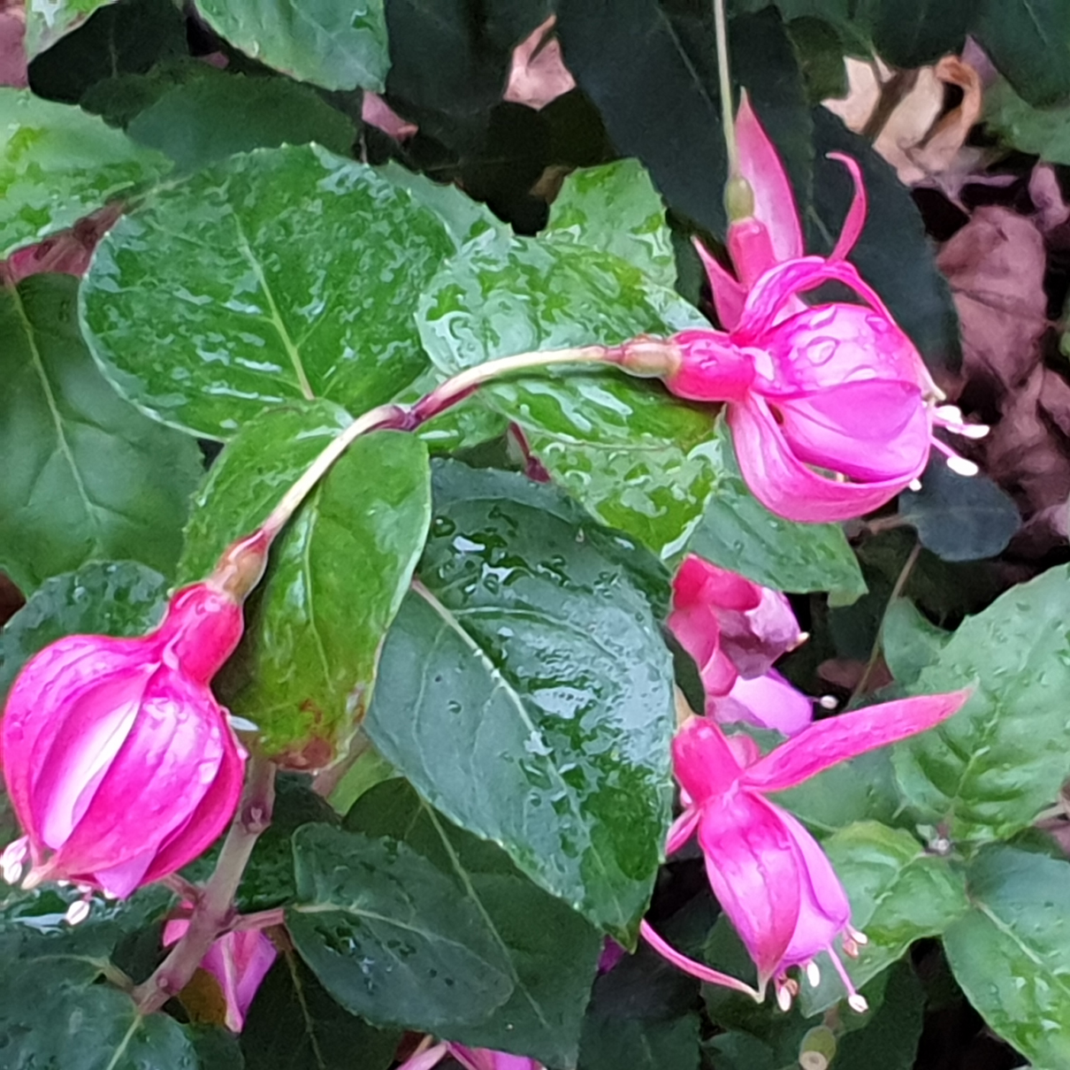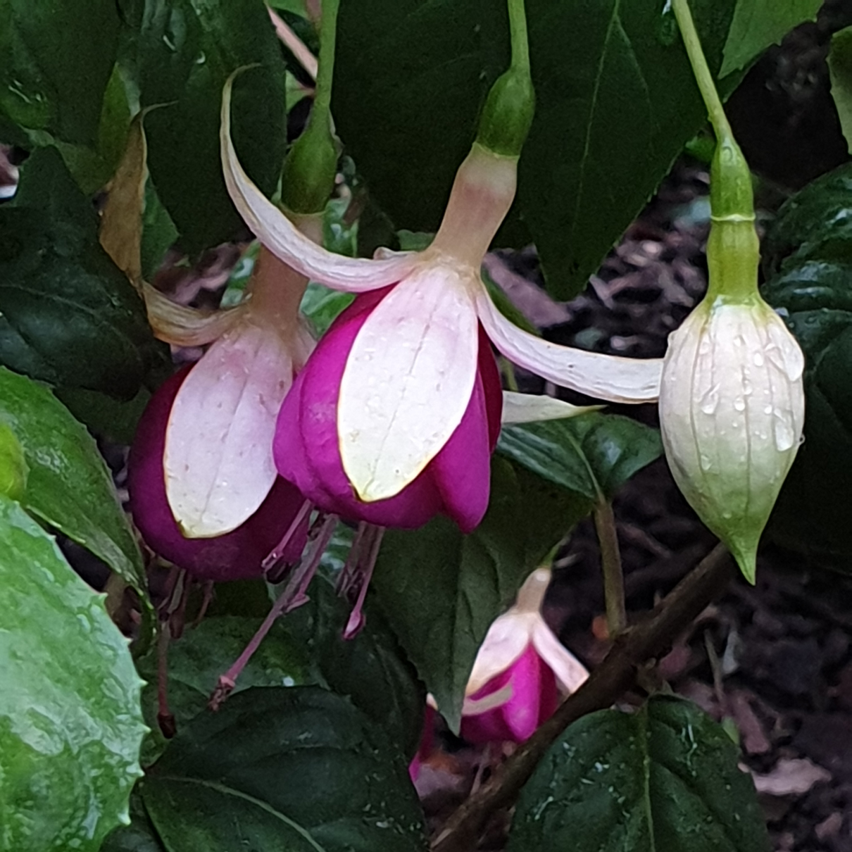 nun werden es immer weniger Blüten bei dem vielen Regen , auch bei den winterharten Fuchsien :-) Die Ingrid Christine ... Die Display ... Die Santa Cruz ... und die Walz Jubelteen ...