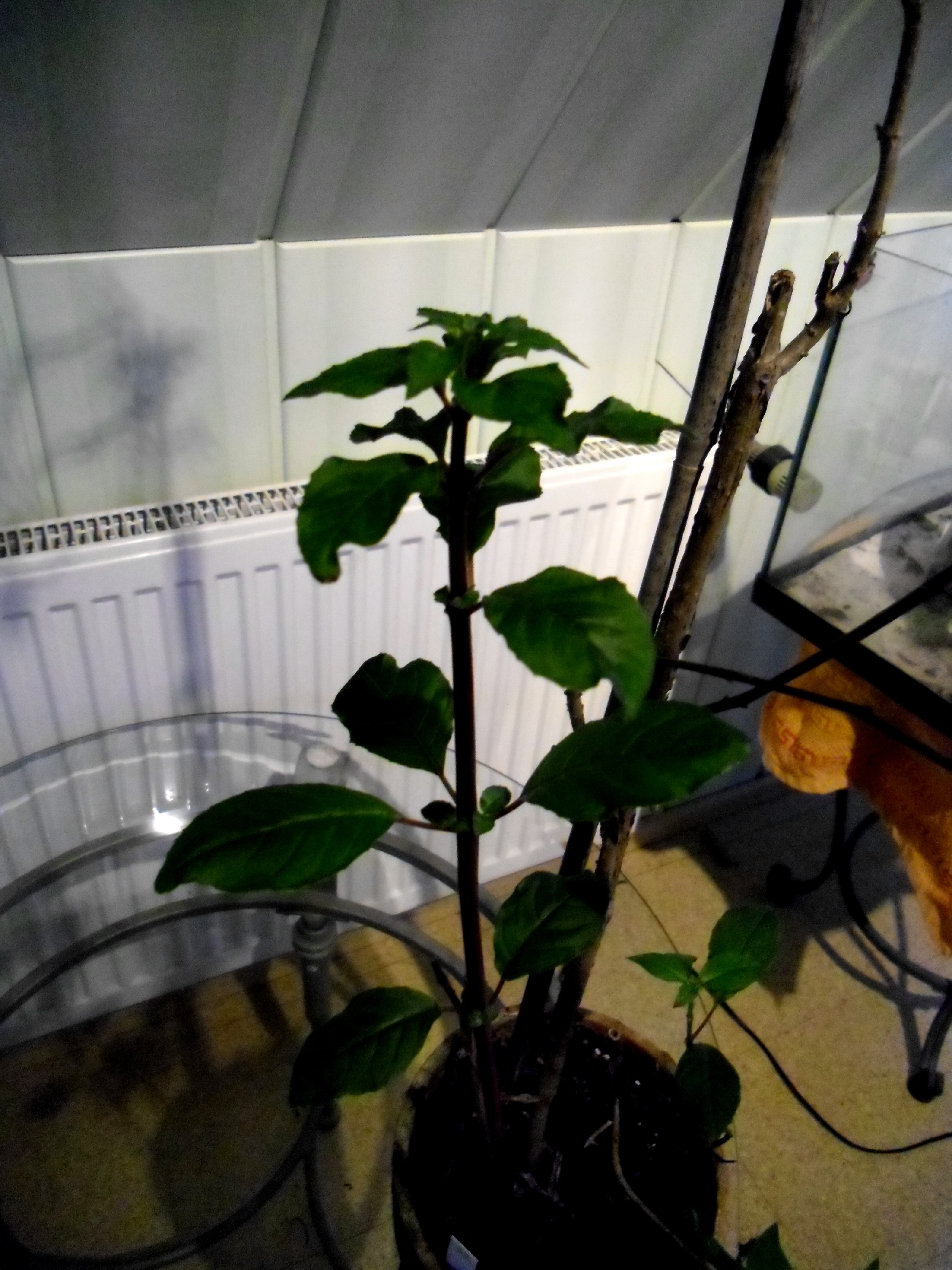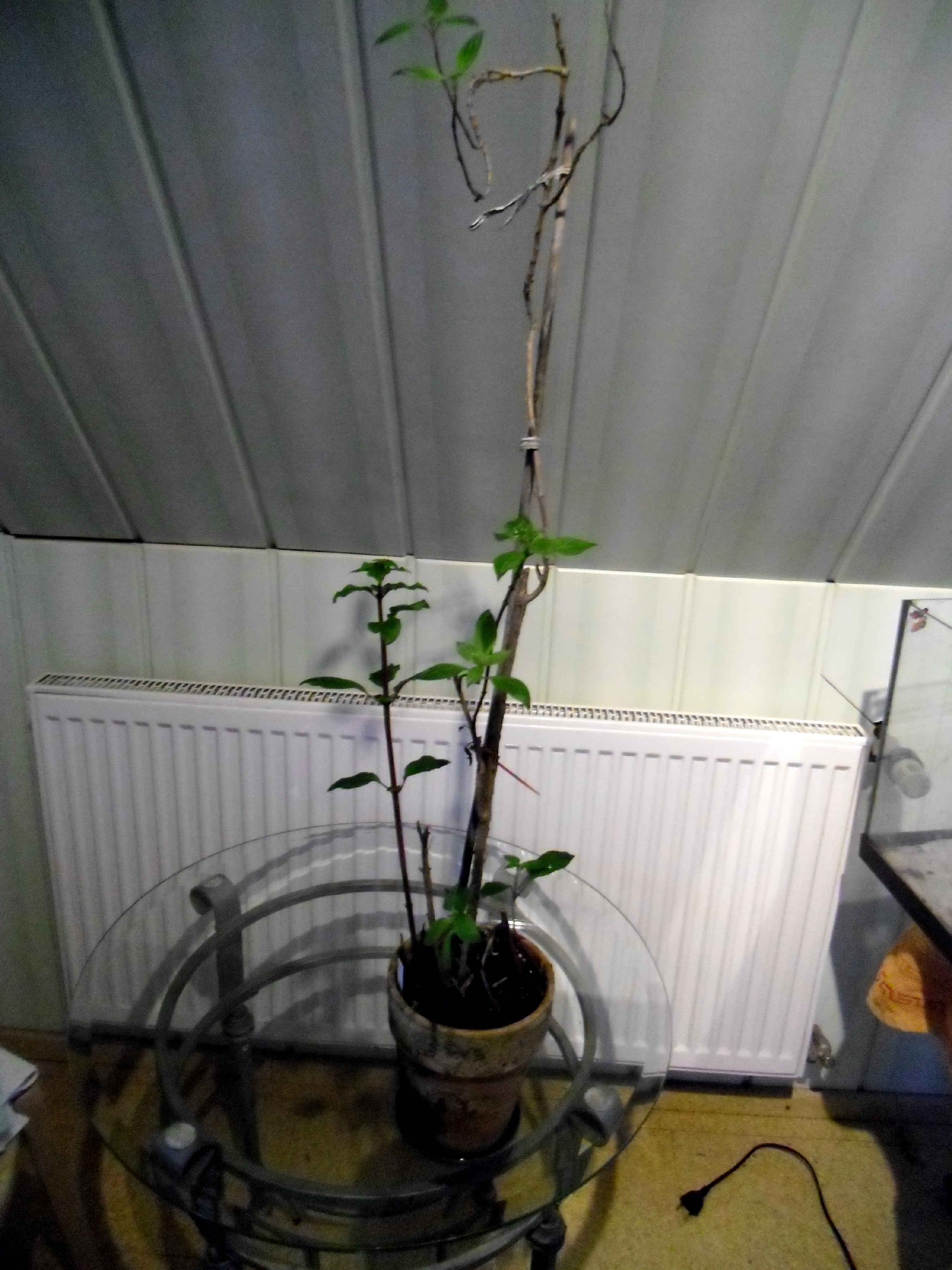 Ich hatte sie im Herbst nicht zurückgeschnitten da ich befürchtete sie würde nicht wieder austreiben.Nun hab ich sie ins Badezimmer gestellt und alle abgestorbenen Triebe abgeschnitten.