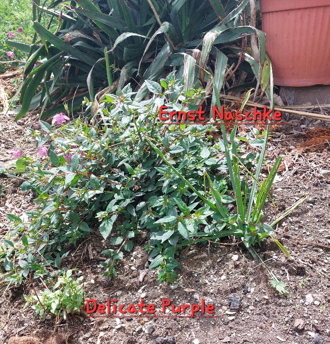 Heute habe ich es mal geschafft ein paar Fotos zu machen. Zuerst zu Ernst Naschke. Ich habe sie zur gleichen Zeit, und gleiche Größe mit Delicate Purple ausgepflanzt. So sieht es heute aus.