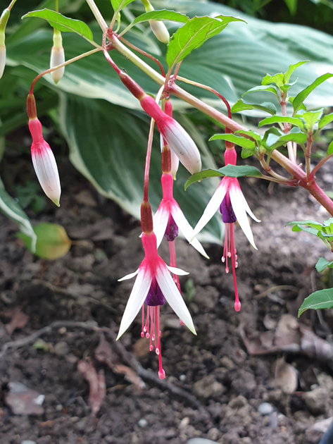 F. mag. gracilis habe ich inzwischen zweimal im Garten stehen, einmal versetzt, weil sie unter der Ernst Naschke verschwunden ist. Leider habe ich nicht alle Wurzeln ausgegraben und sie kam im darauffolgenden Jahr an gleicher Stelle wieder! Zuverlässig wie viele meiner winterharten Fuchsien, seit 2018 bei mir im Garten