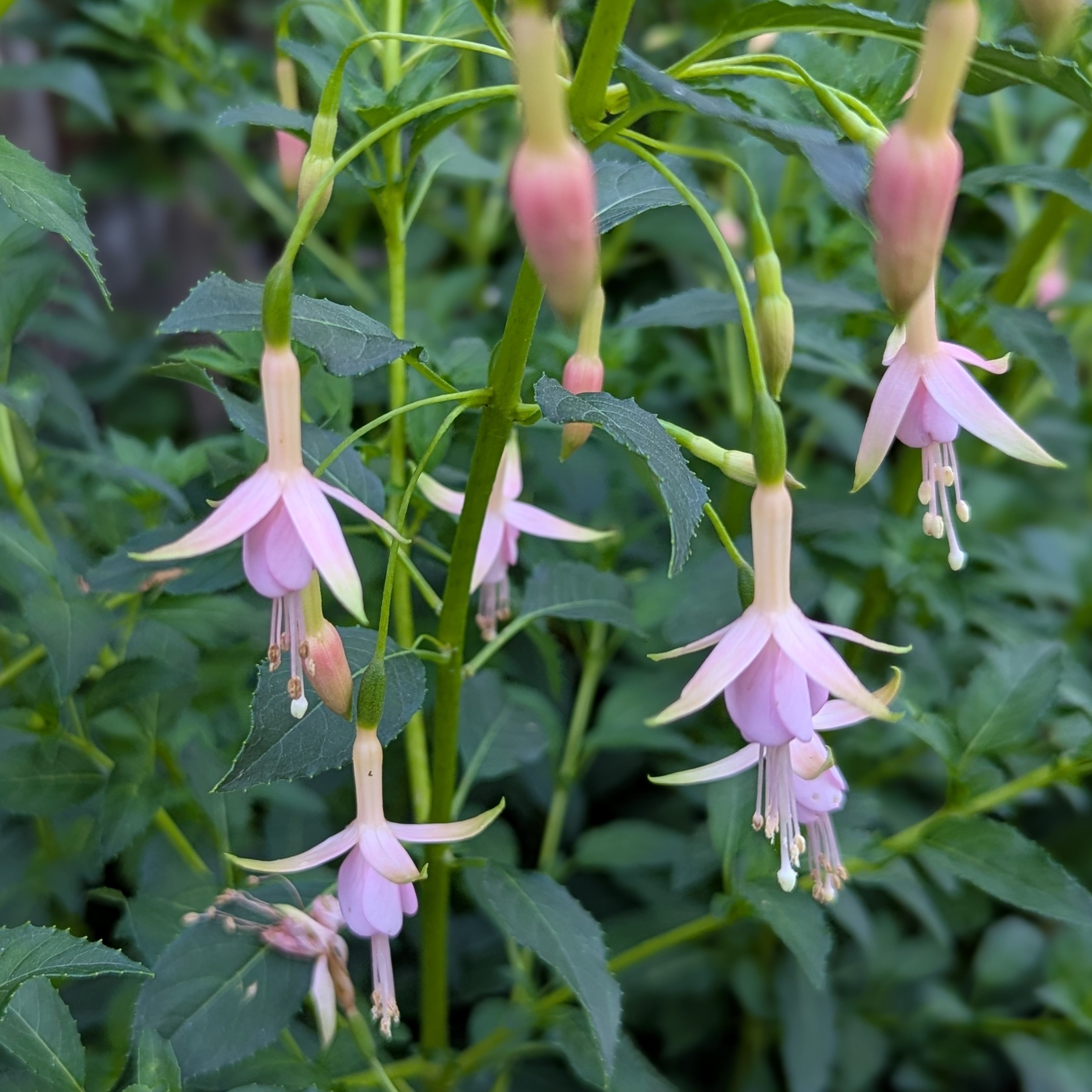 Ich werde die Delicate Purple wohl verpflanzen müssen, aber erst will ich mir eine Sicherungskopie machen. Viele umgepflanzte Fuchsien nehmen es mir übel. Ich finde aber nicht, dass die Ernst Naschke Wurzelausläufer bildet. Bei mir sieht es aus als ob die durch die Winterabdeckung niedergedrückten Zweige Wurzeln bilden.