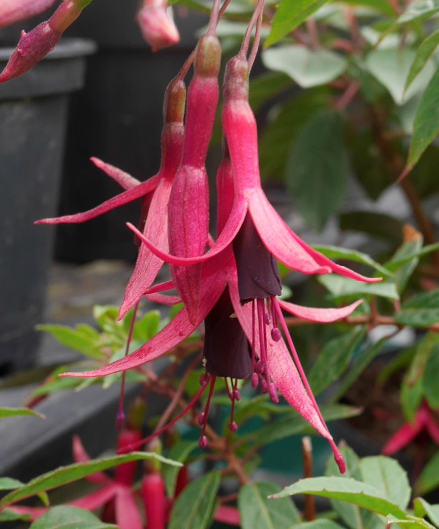 Mir gefallen (ich kenne) bei den dunklen Fuchsien eher die klein/mittelgroß blütigen ungefüllten Fuchsienblüten: