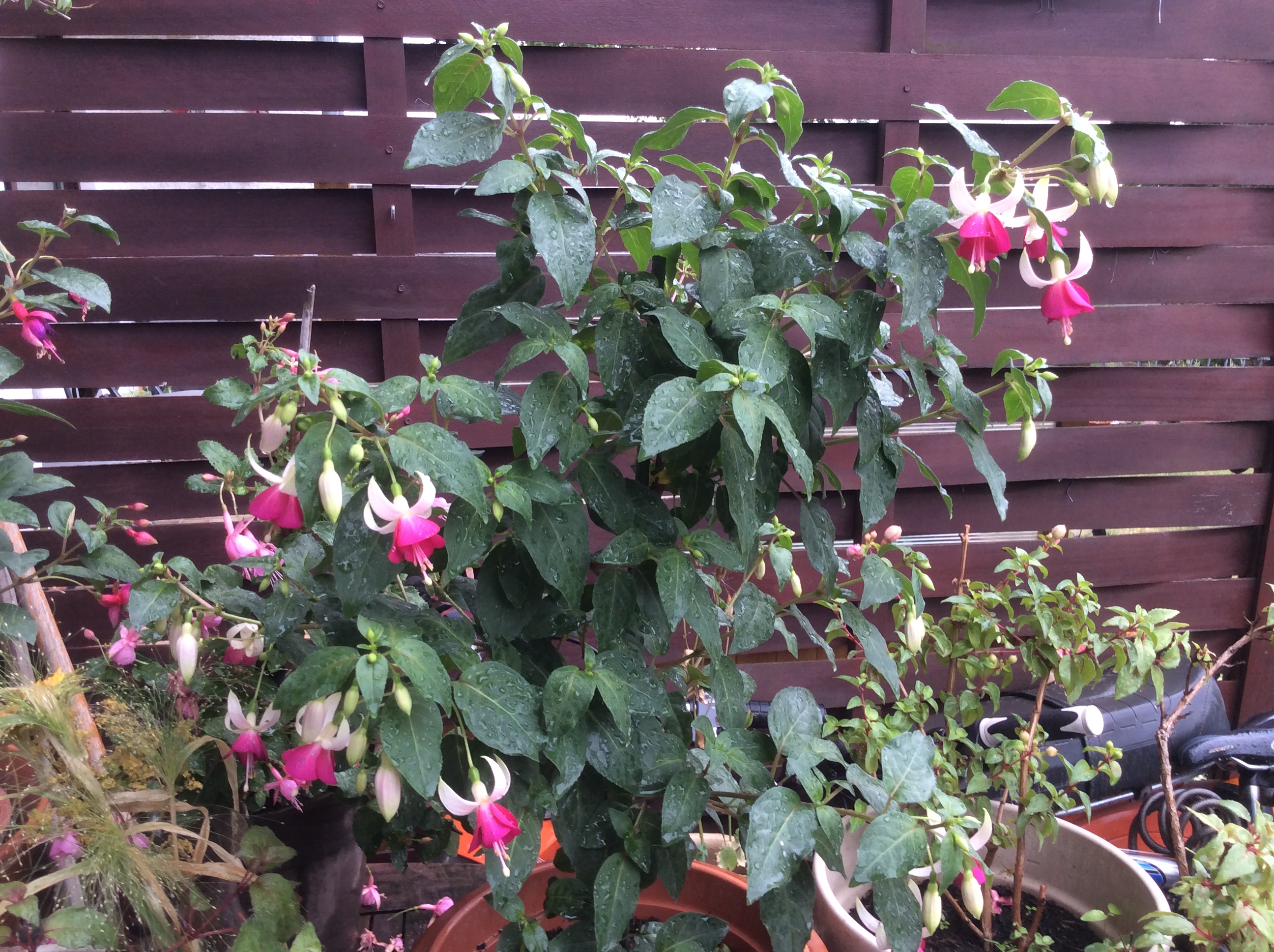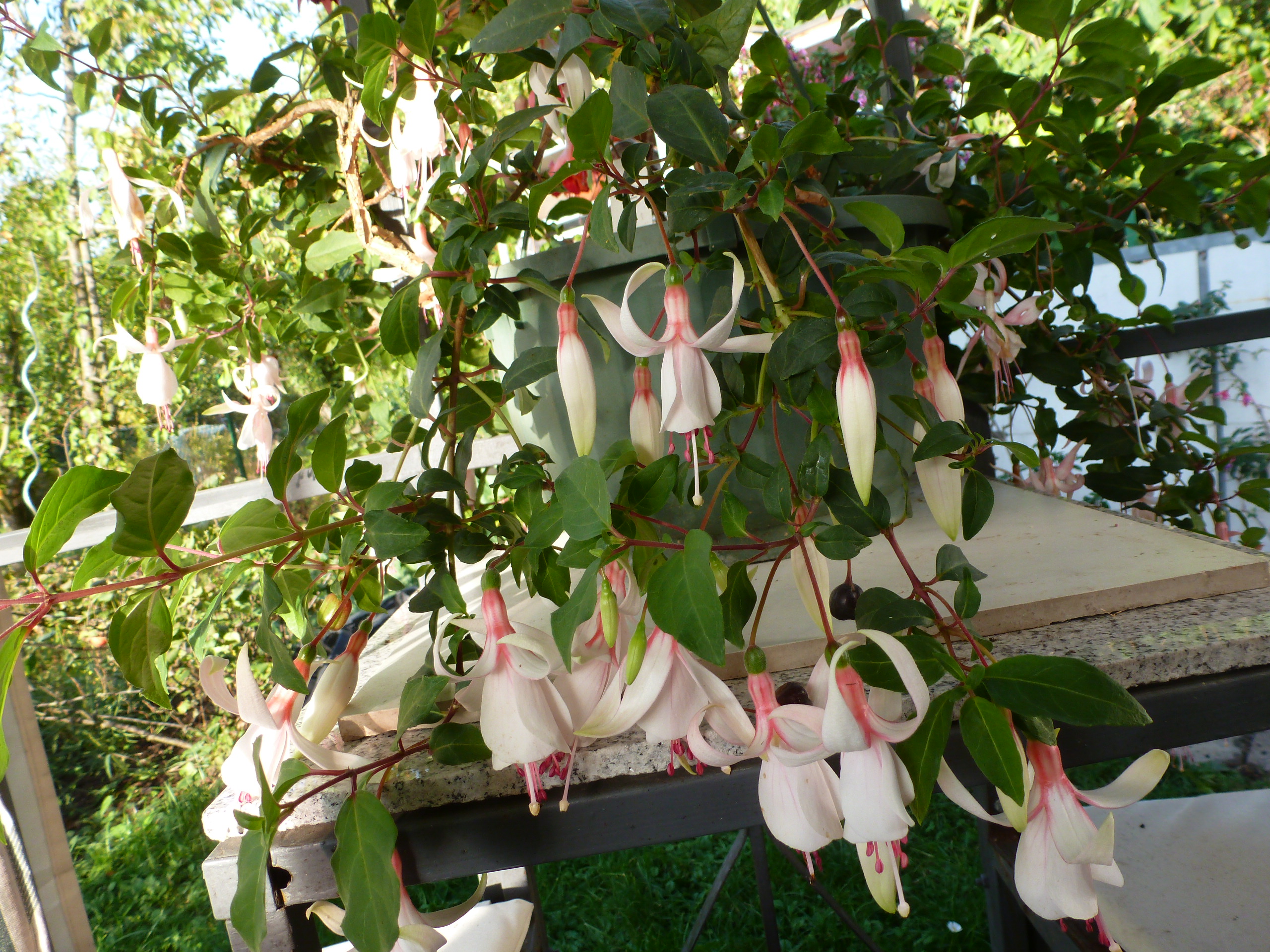 "Gartenbauverein Eupen" hat einen Wuchs hingelegt, unglaublich. Ist schön beblettert, eine richtige Vorzeigefuchsie.