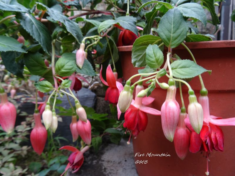 Die Fire Mountain wächst sperrig und sollte entspitzt werden,wegen der schweren Blüten wird sie später halbhängend.