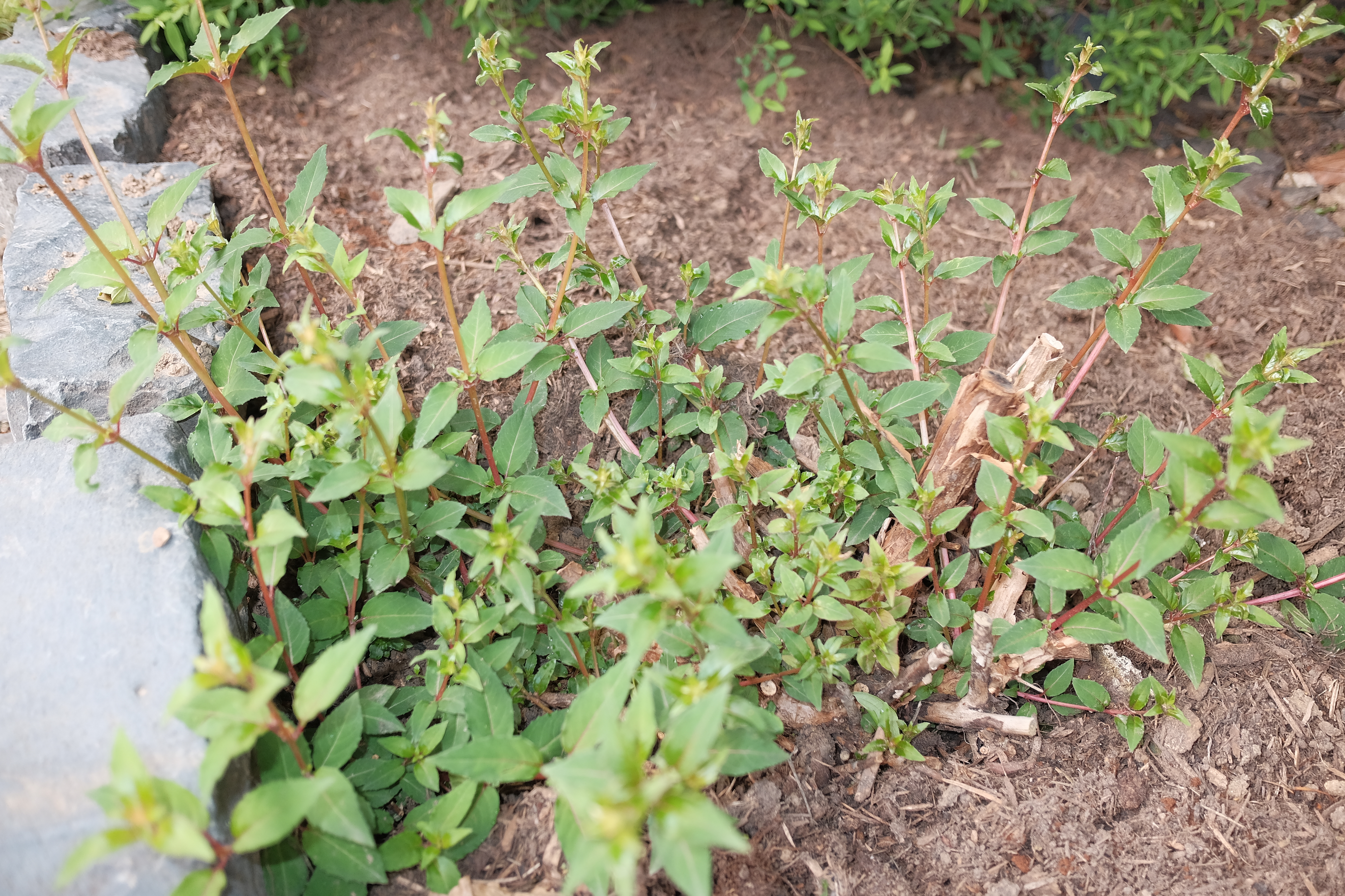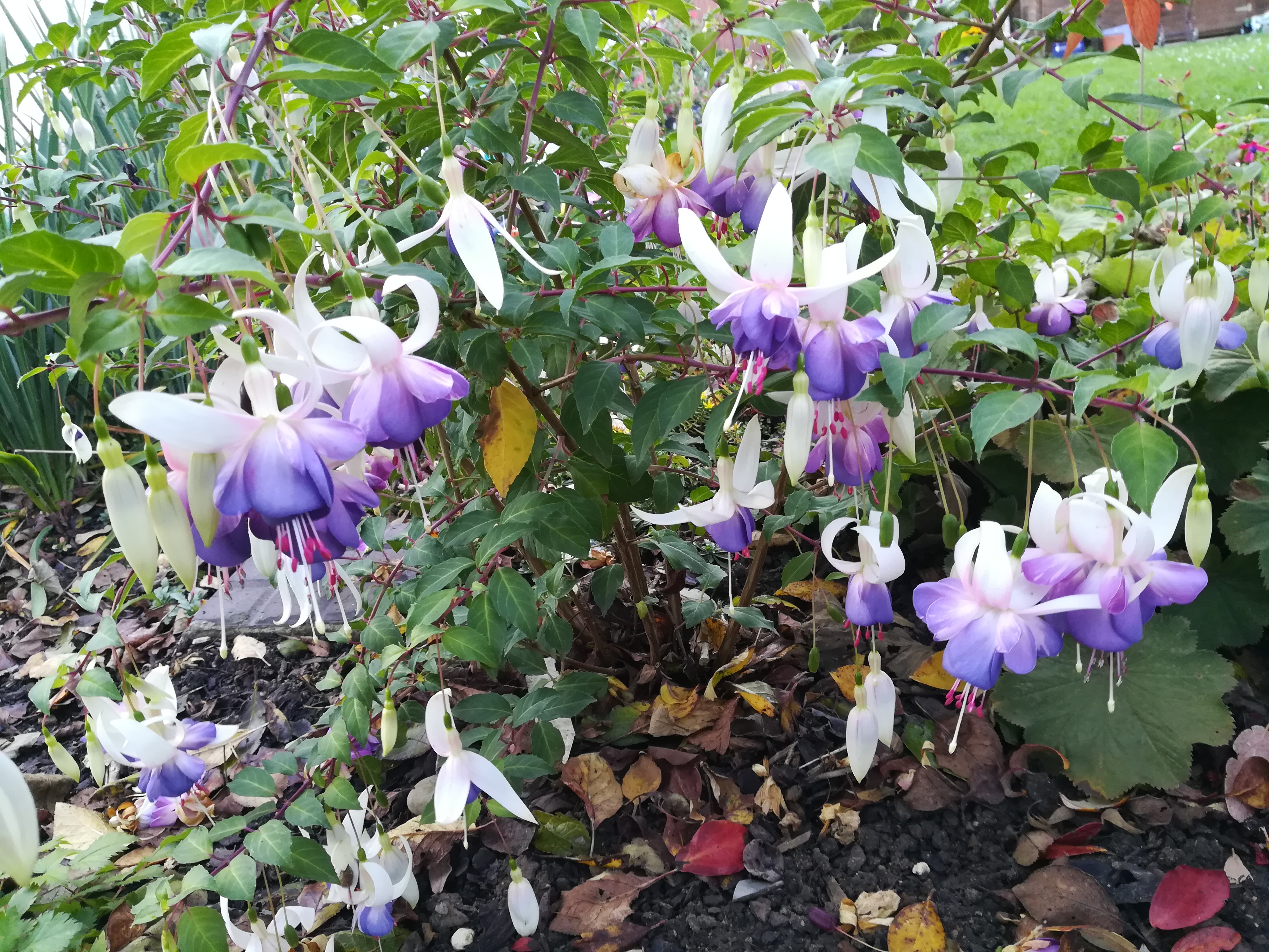 Ich habe ja nicht viele winterharte Fuchsien. Meine "alten" lasse ich unbeschnitten und ungeschützt stehen.