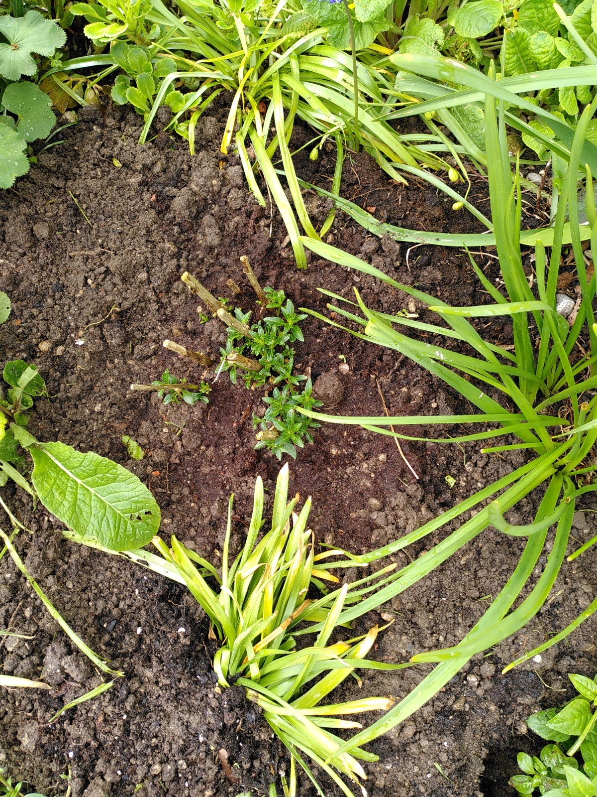 Ich decke sie gut mit Erde/Laub ab und lege noch Tannenzweige darüber.