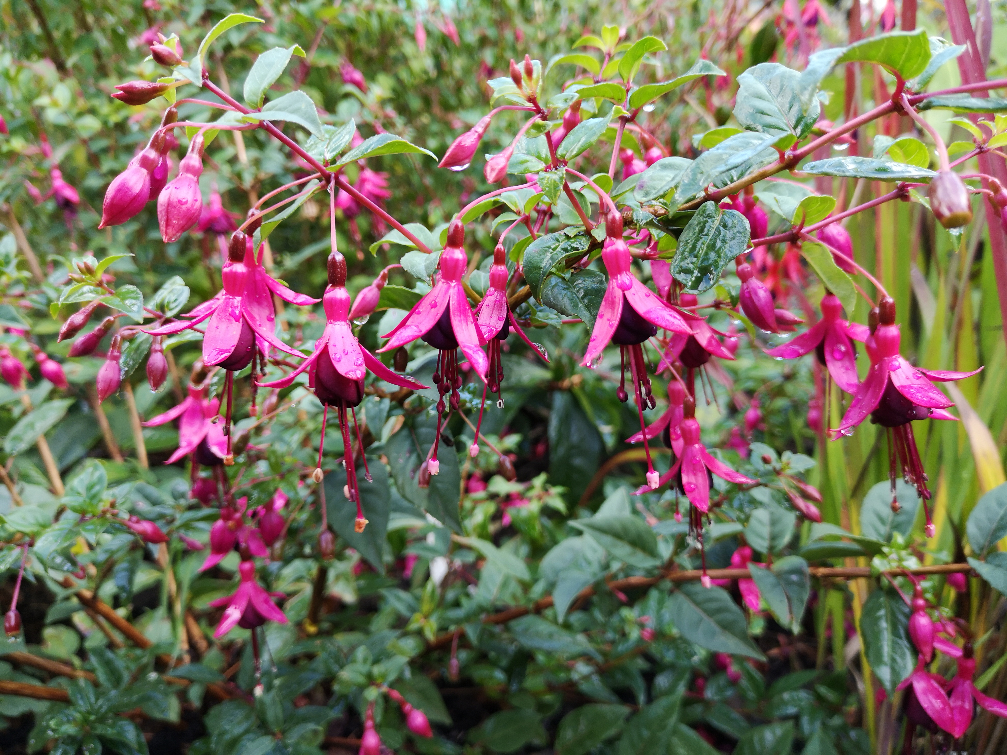 Ein Fuchsienfreund nutzte die Langtriebigkeit der 'Lady Boothby' um einen Bogen zu beranken.