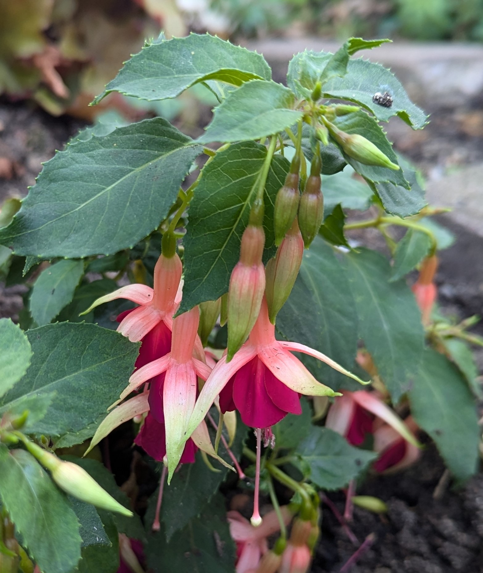 Margaret Roe ist eine hübsche kleine Fuchsie mit außergewöhnlichen Blüten. Ich habe sie seit 2020.