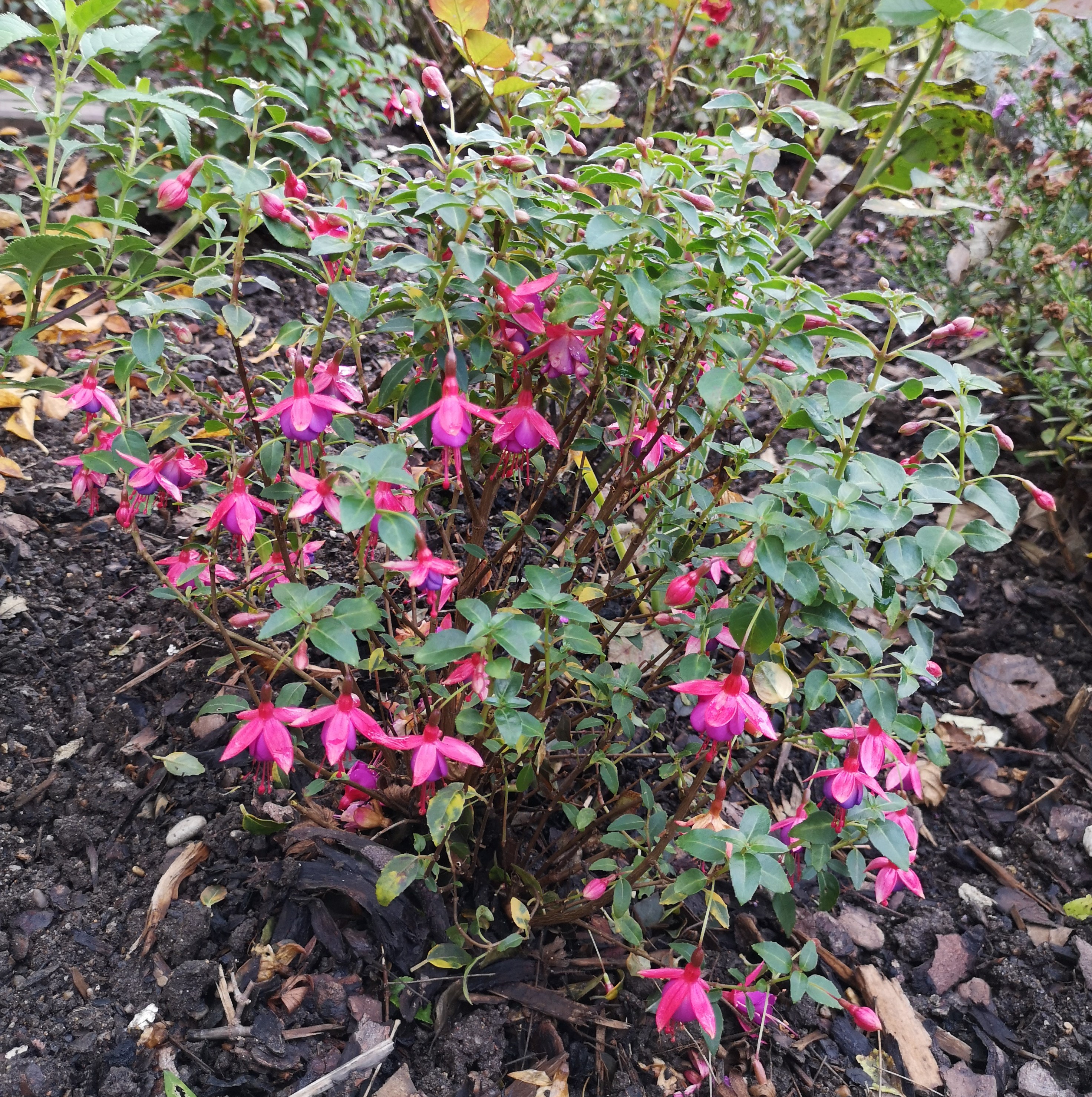 Ich habe meine Fuchsien alle noch draußen stehen,die Pelargonien und andere Kübelpflanzen auch.