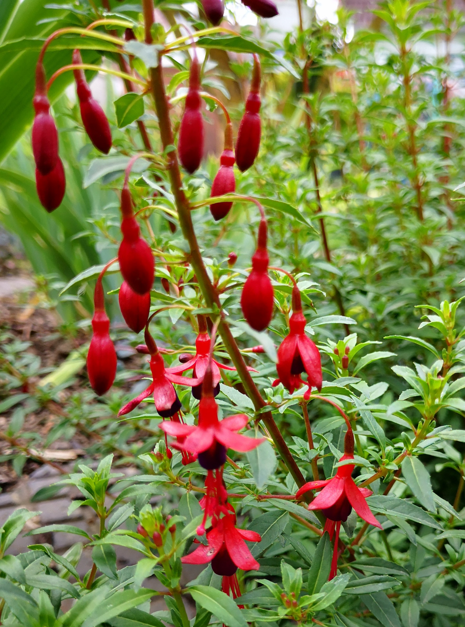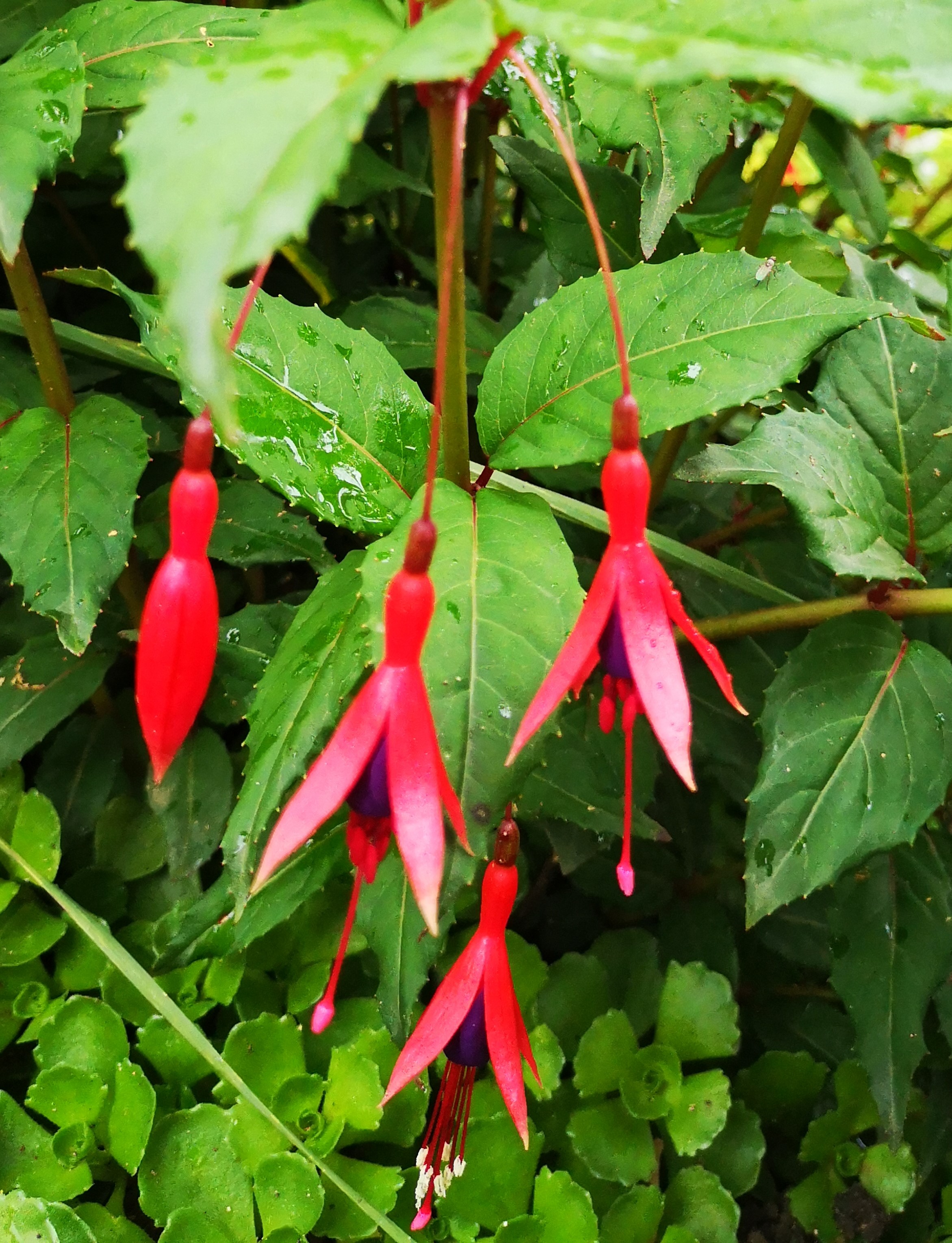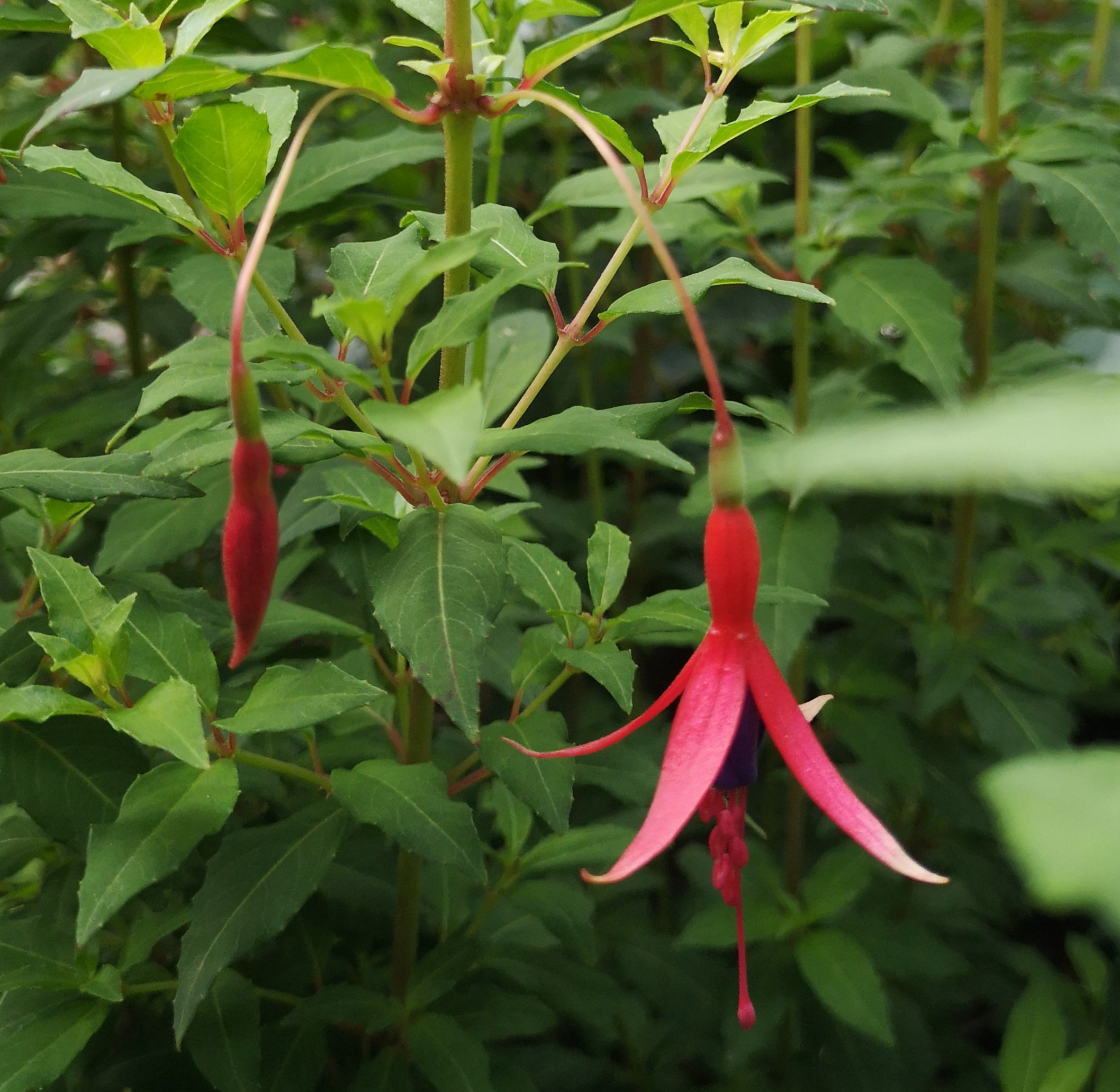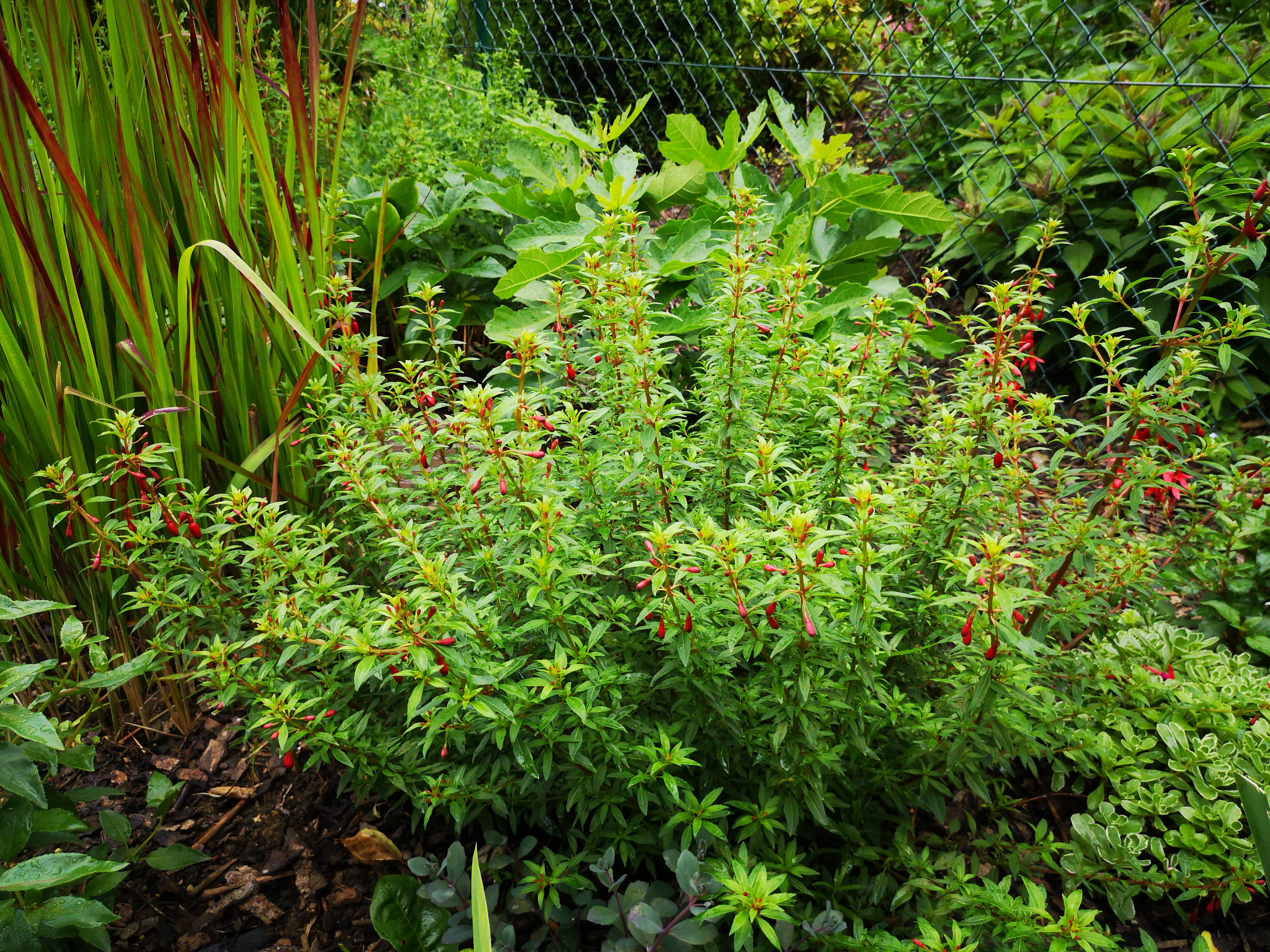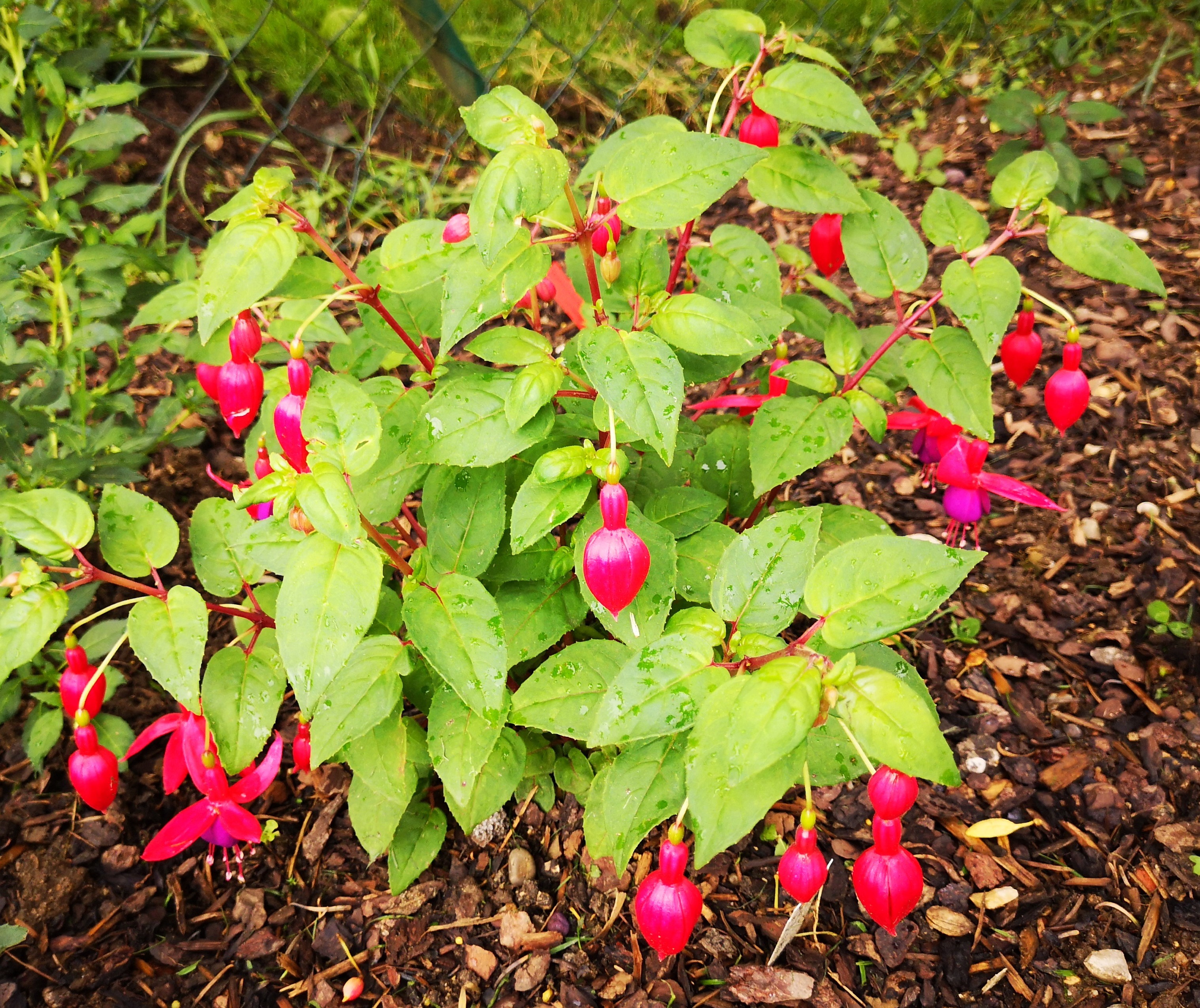 Manchen von uns mag das aktuelle Wetter zu sehr vermischt bis zu feucht, oder gar zu kühl sein. Den winterharten Fuchsien können wir es gar nicht besser bieten.