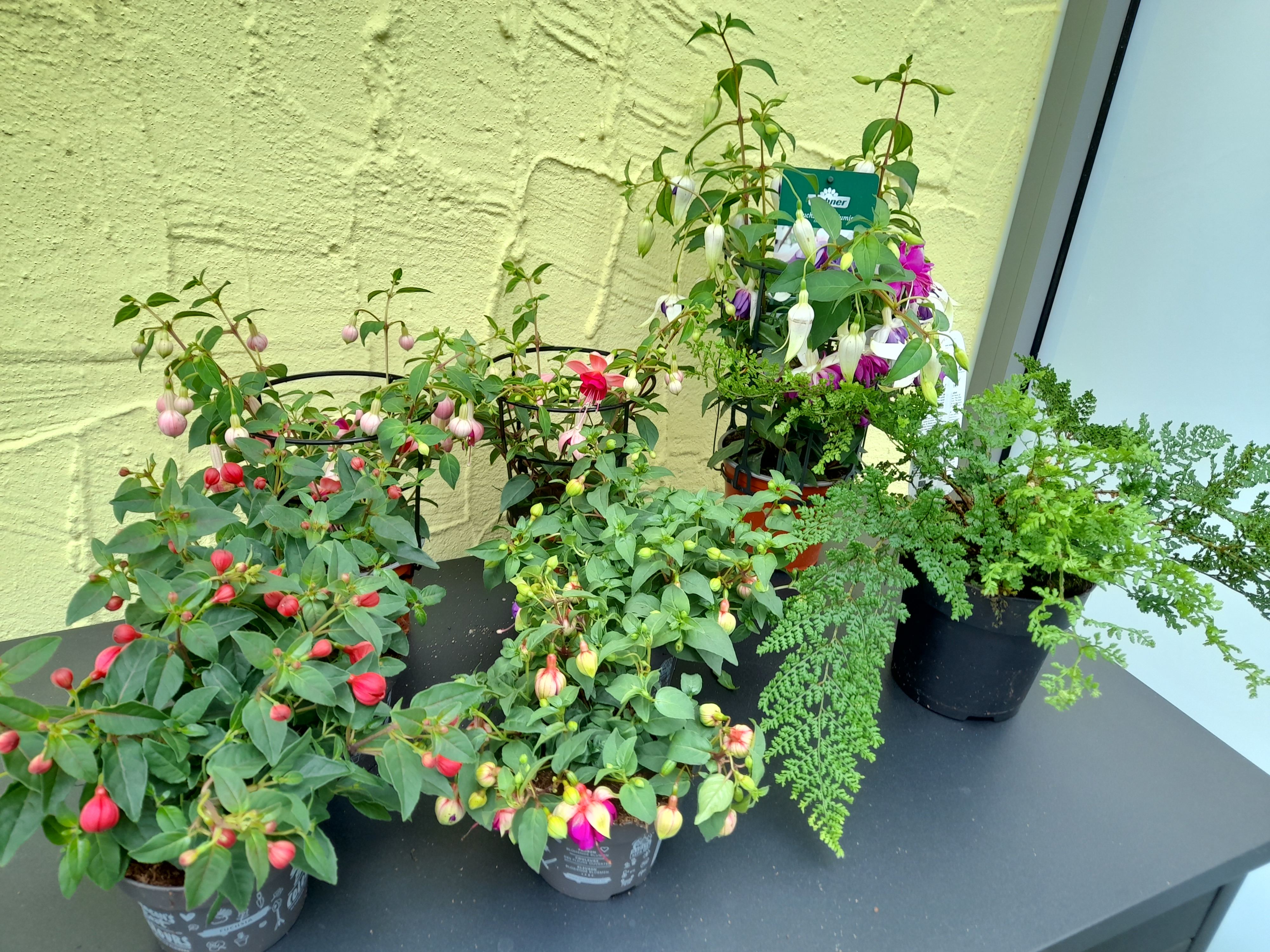 Von den großen Fuchsien fand ich keine mehr. Dann musste ich noch dringend Meisenknödel und Kräuter kaufen...da fand noch diese hübschen Sorten.