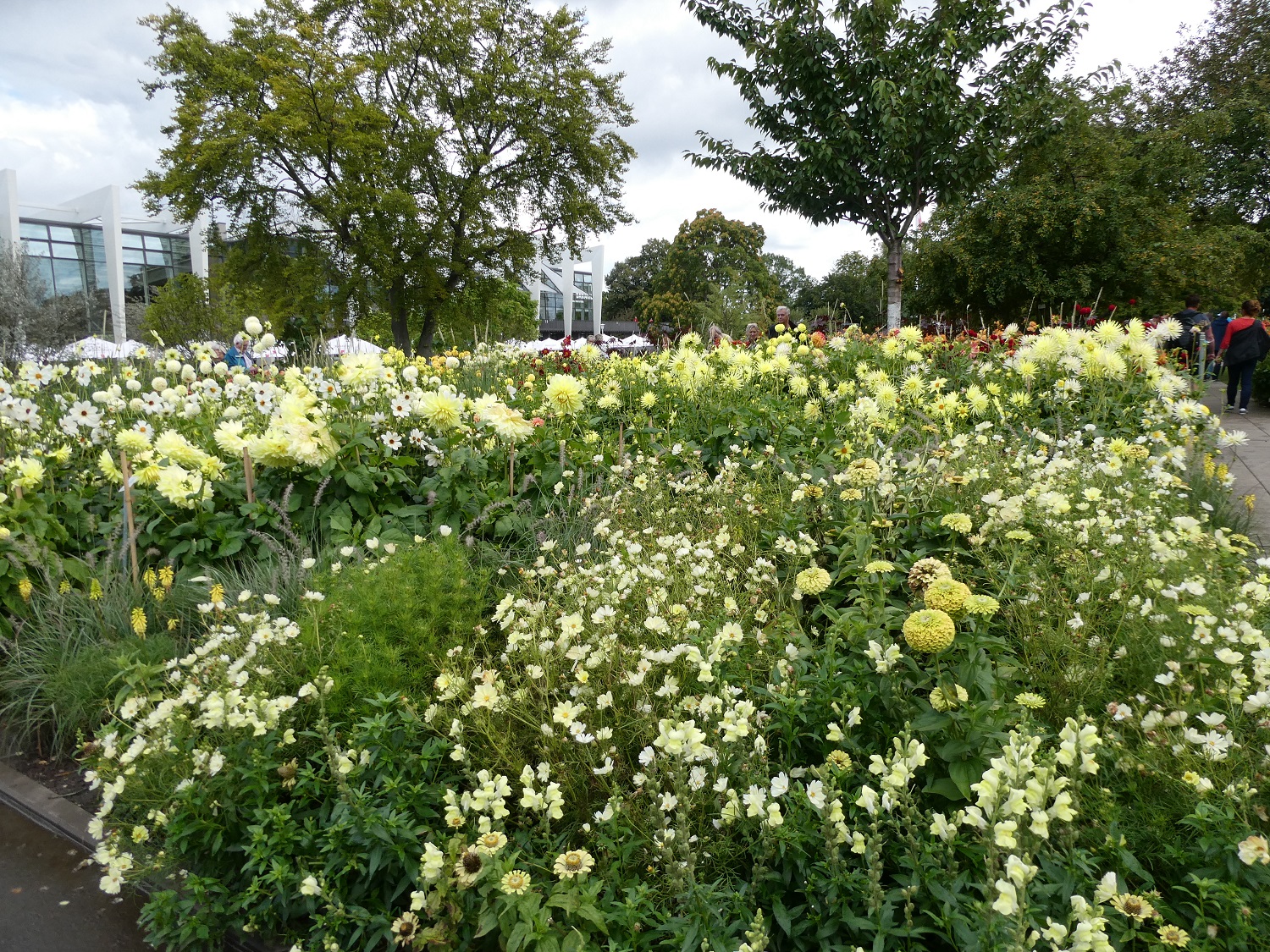 Dann erreichte mich eine Nachricht von Horst, dass der FF HH am 12. 09. zu einer Dahlien Ausstellung, auf unserem ehemaligen LGS Gelände, vorgesehen ist. Jürgen Raber vom FF Harz hatte noch Pflanzen, die er uns zum verkaufen mit geben wollte. Allerdings hatte Horst keinen Platz mehr im Auto, also fuhren wir am 3. 9 in Bad Sachsa vorbei. Zuerst bekamen wir Kaffee und Kuchen, danach eine Führung durch den Garten. Dann wurde unser Auto voll gemacht mit winterharten und anderen Fuchsien. Ohne Stau (es war dann doch schon spät) sind wir dann heil angekommen. Am Sonntag hatten wir eine Familienfeier, erst ab Montag konnte ich mich dann um den Garten und Haushalt kümmern. Seither ist der Fokus auf das Dahlienfest. Im 2. Teil stelle ich noch einige Bilder aus Erfurt und vom Treffen ein.
