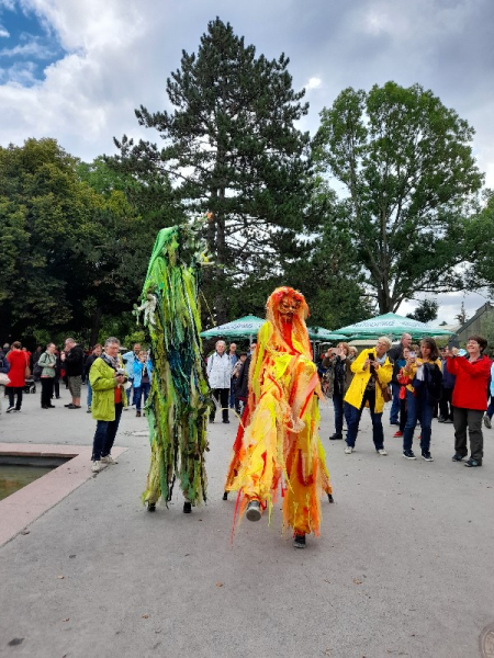 Am Sonntag nach der Hauptversammlung sind die meisten nach Hause gefahren. Wir wollten nochmal auf die EGA und auf den Petersberg. Dort ich traf noch Rosie Friedl im strömenden Regen. Vor dem sind wir Schluss endlich dann doch geflüchtet. Am Montag fuhren wir dann weiter nach Saalfeld. Dort trafen wir uns mit einer Reisebekanntschaft, die einen Aussenbezirk der BUGA, den Bergfried betreut. Eine persönliche Führung in diesem interessanten Park war etwas besonderes und ist sehr zu empfehlen.