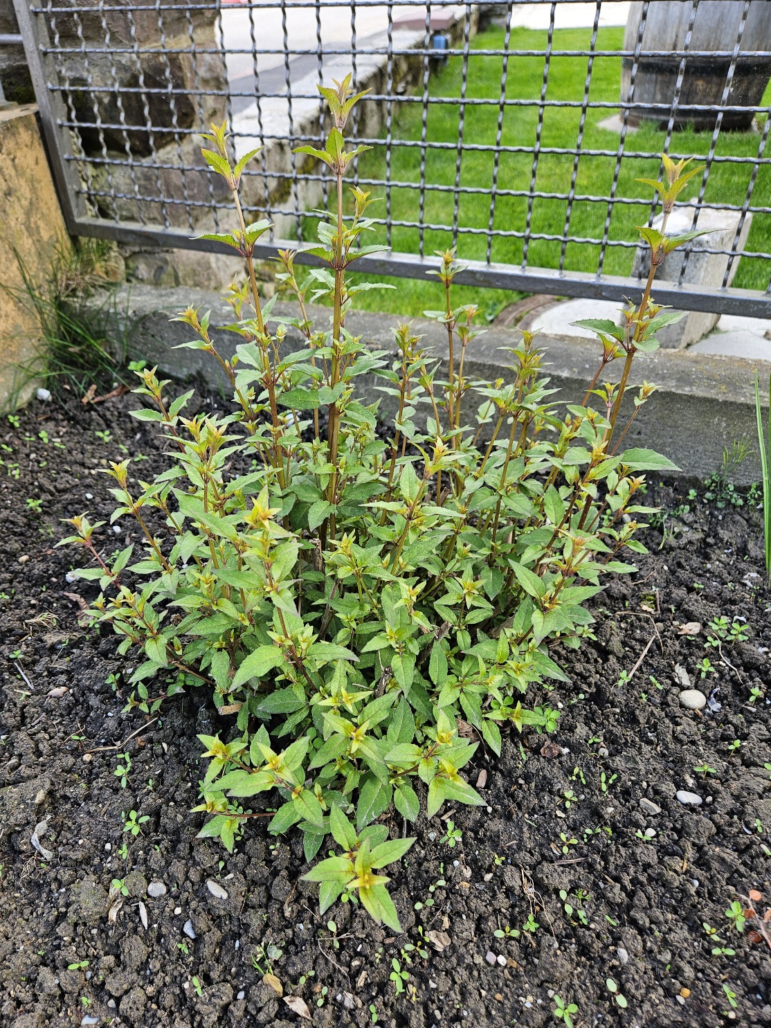 Bei mir haben sich Arauco und Ernst Naschke jeweils 50cm, reitzii elektra bis 100cm und rechts daneben der Mönchspfeffer 40cm durch den Girsch gekämpft. Dieser scheint wohl ein guter Bodendecker für Fuchsien zu sein!