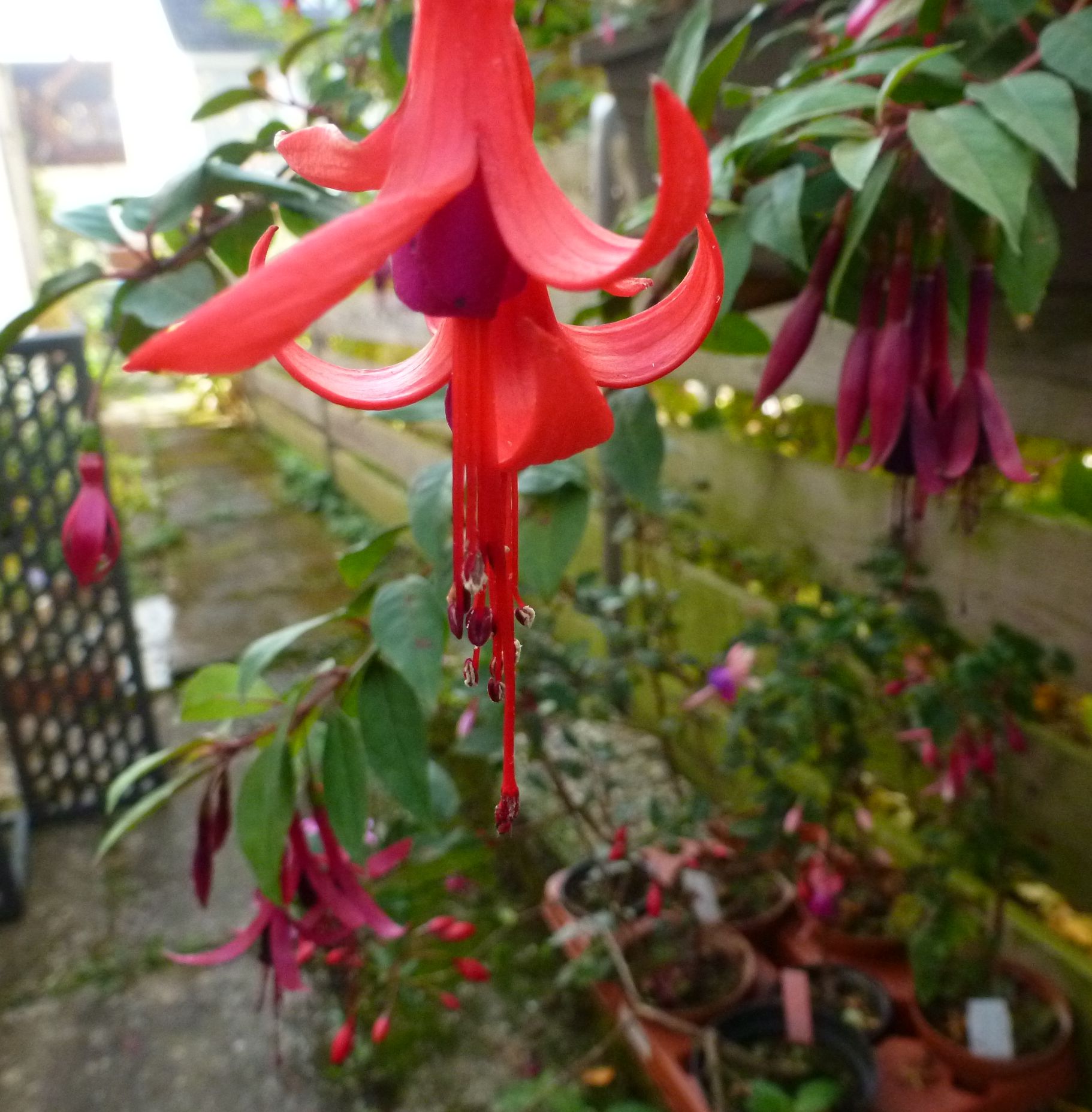 Nachdem jetzt alle Fuchsien zurückgeschnitten sind, kann ich mich noch an den winterharten Fuchsien erfreuen: