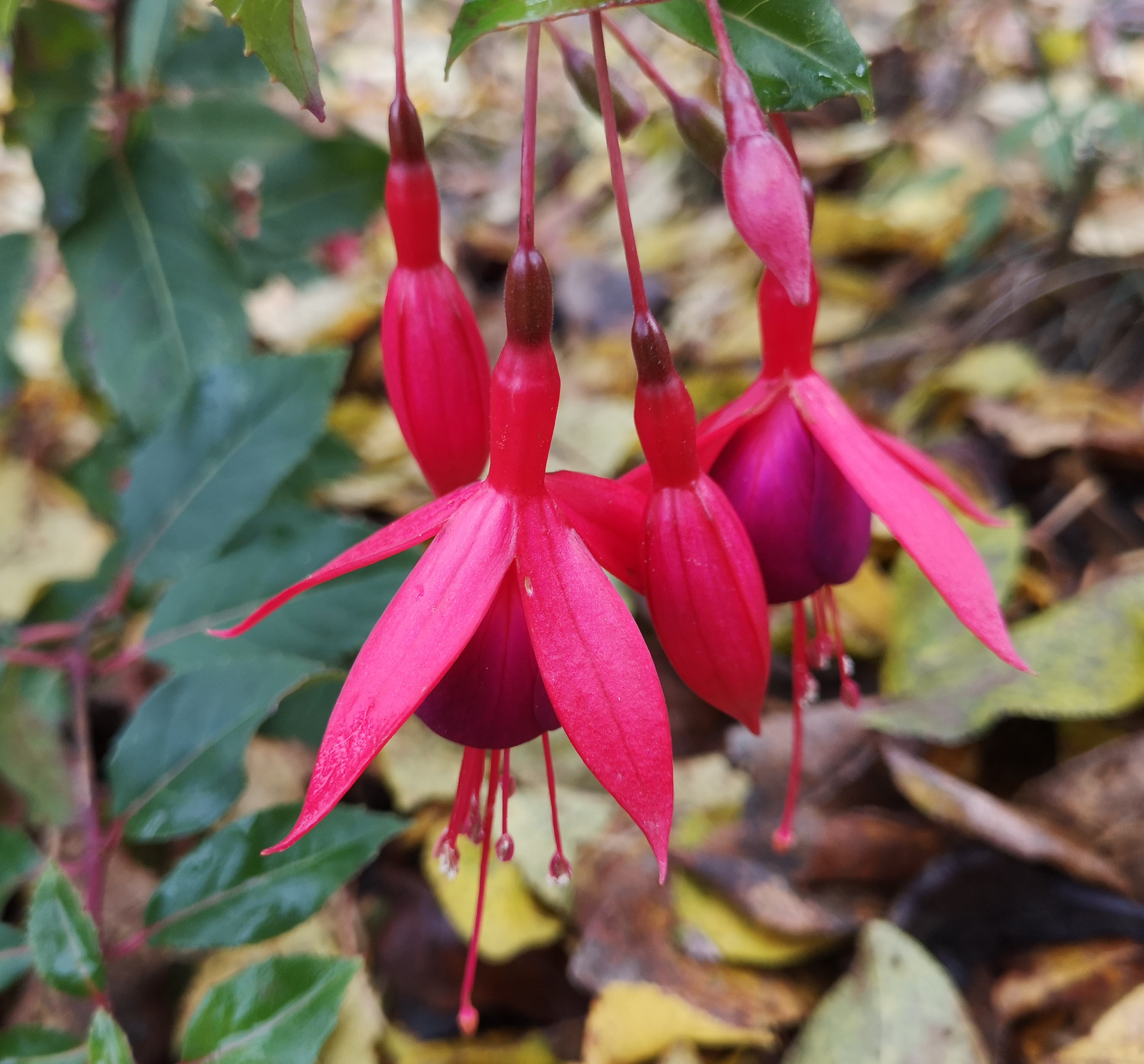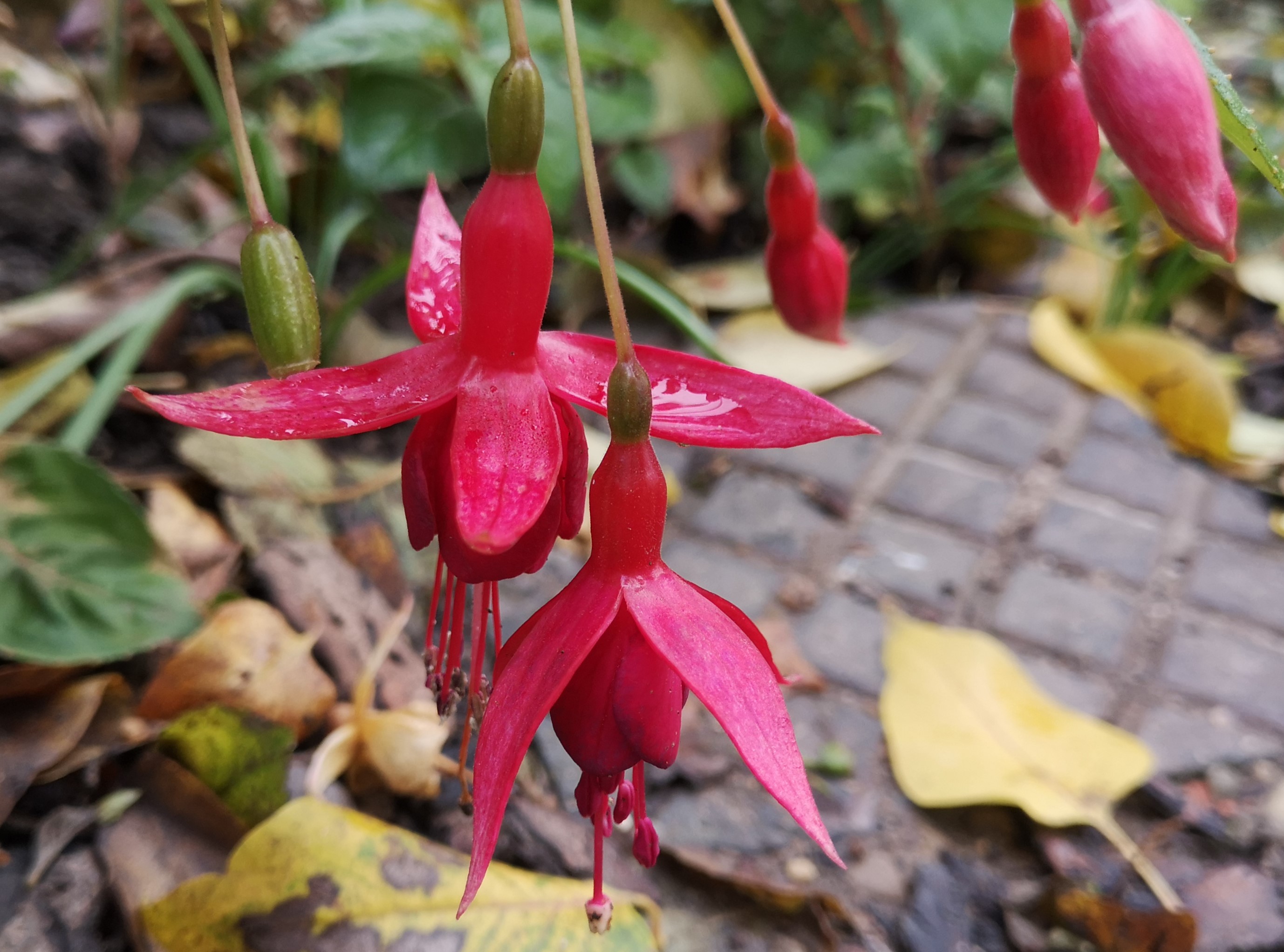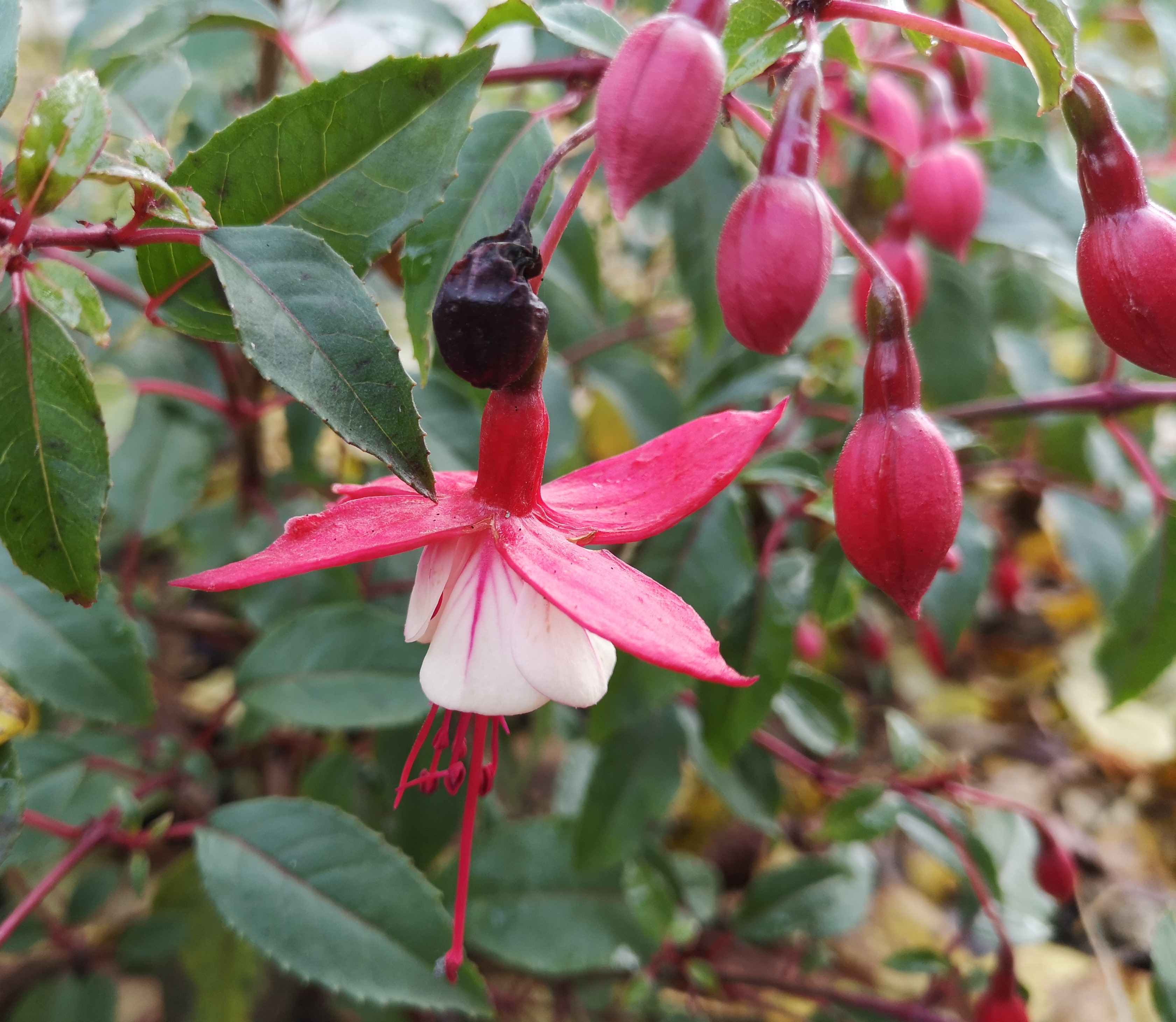 Meine winterharten blühen auch nur noch zum Teil.Mrs.Poppel hat noch sehr schöne Blüten und F.magellanica Tricolor