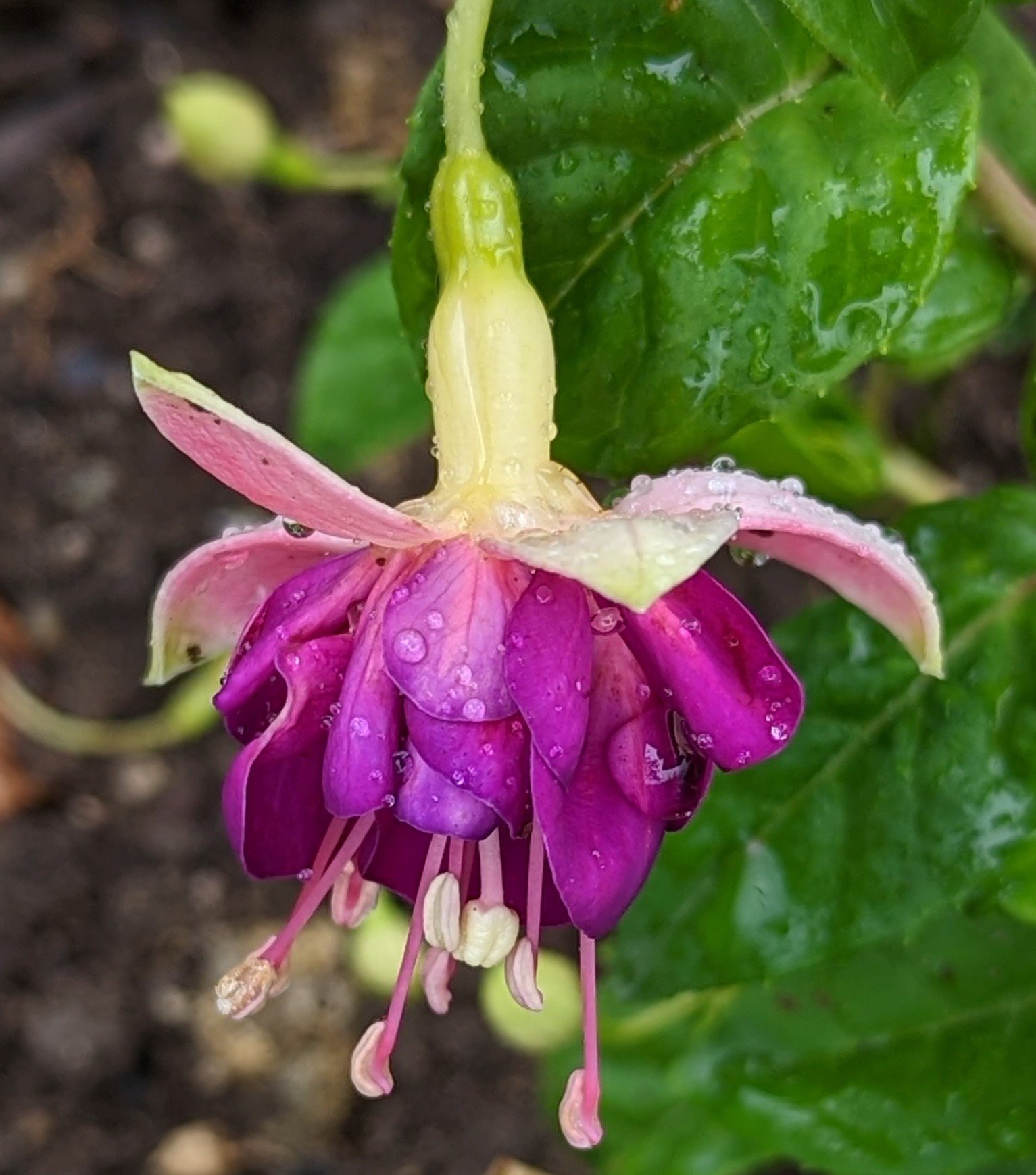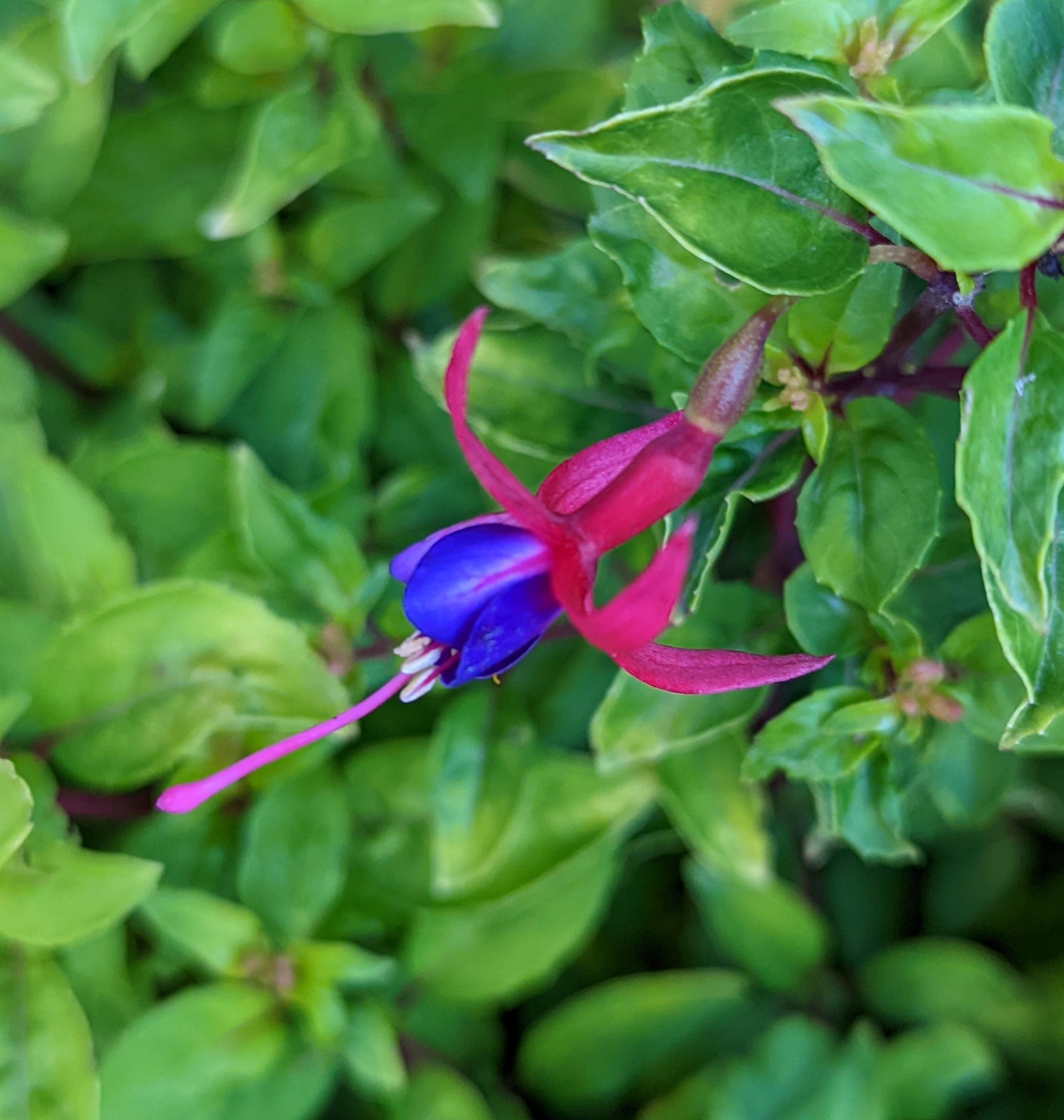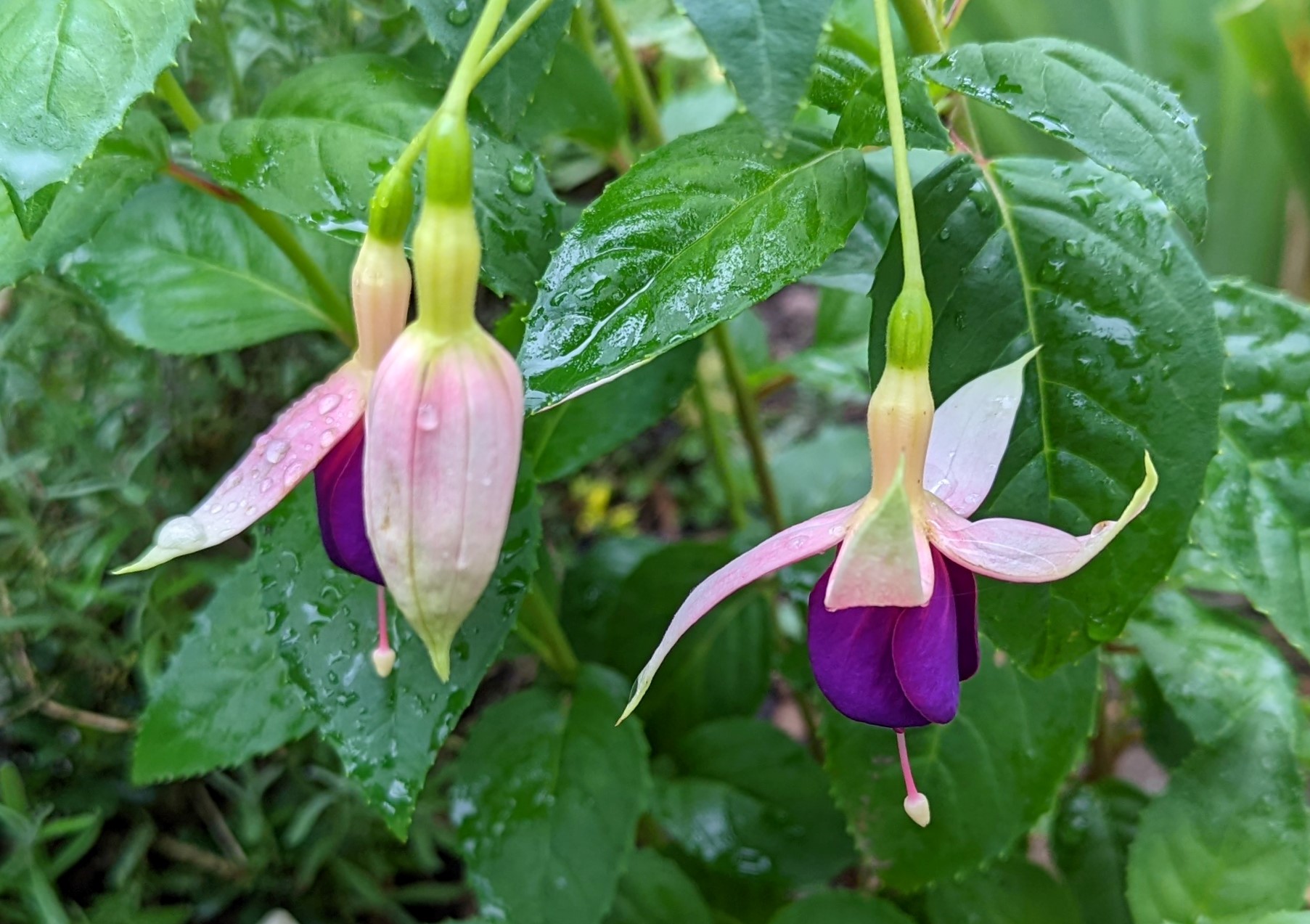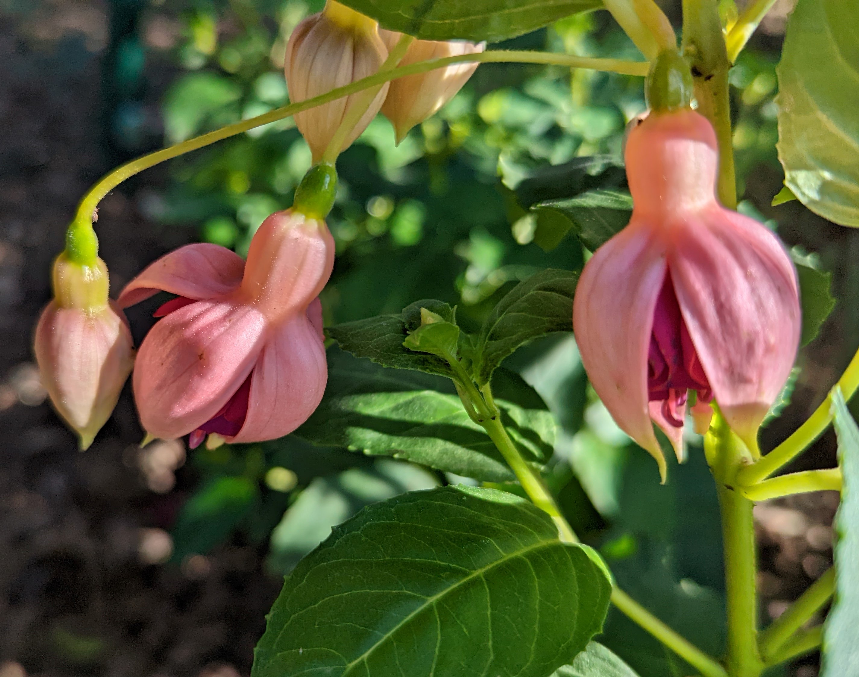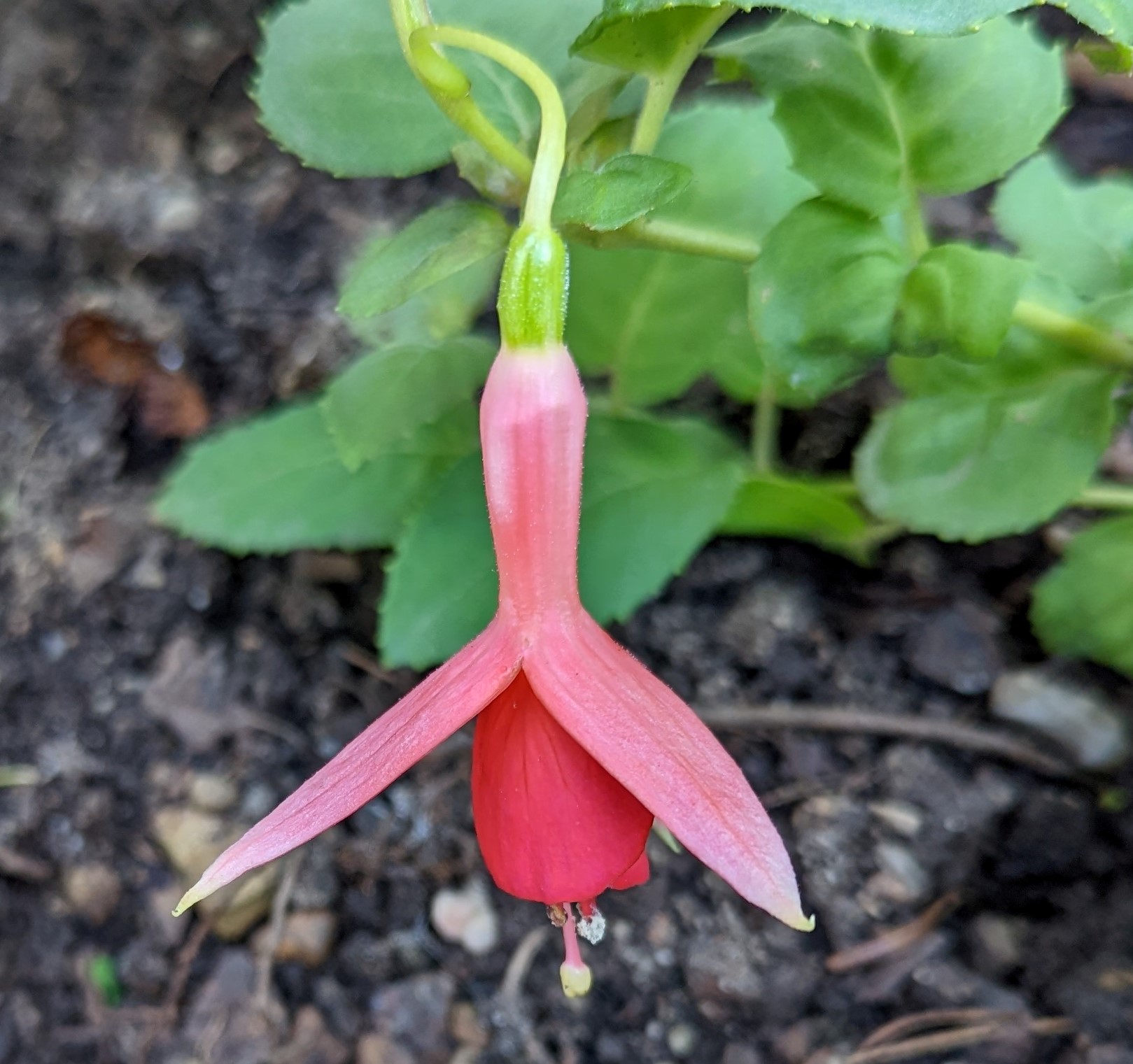 Mein Boden ist auch ziemlich lehmhaltig, aber das mögen die Fuchsien doch eigentlich gerne!? Beim Einpflanzen kommt auch immer noch eine Handvoll guter Erde mit ins Pflanzloch und das kräftige Angießen muss auch sein. Die Grayrigg hatte ich im vergangenen Jahr umgepflanzt, anfangs wurde sie tagsüber immer schlapp und ich dachte, das geht nicht gut! Dieses Jahr ist sie die erste, die super gewachsen ist und viele Blüten trägt! Ernst Naschke zeigt auch schon eine Menge Blüten und bei Genii ist das die erste Blüte, sie sieht noch nicht so toll aus, finde ich! Gracilis habe ich im Frühjahr umgesetzt, sie kämpft auch noch mit ihrem neuen Platz, sie ist noch nicht so hoch wie die letzten Jahre!