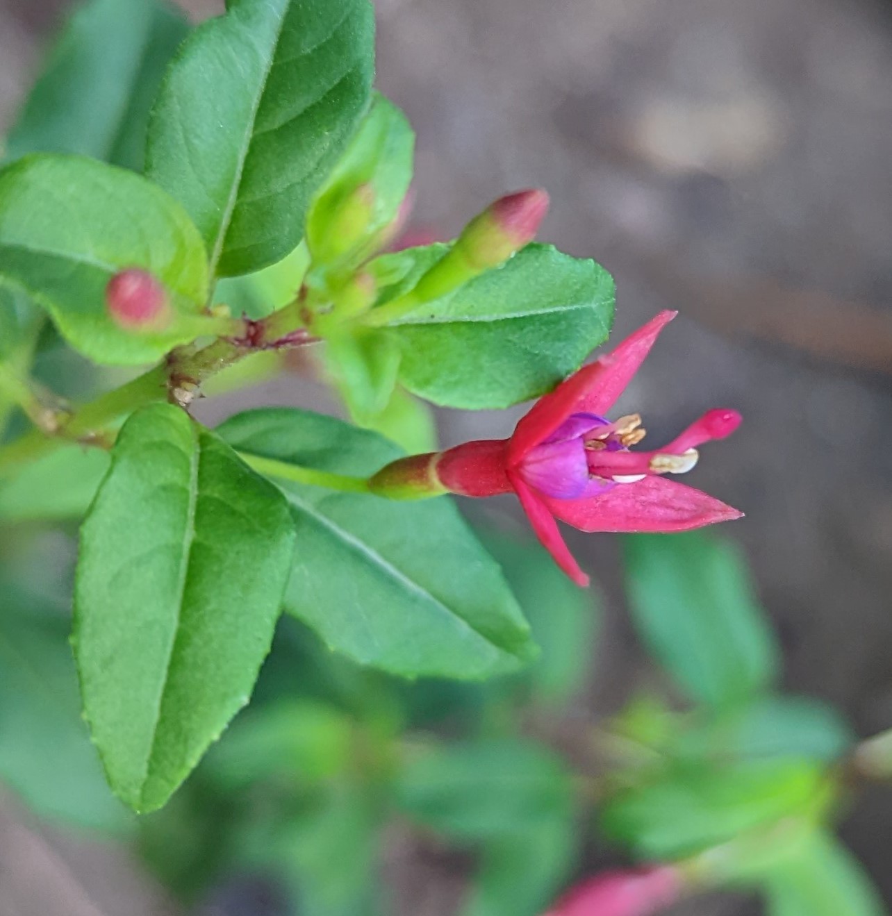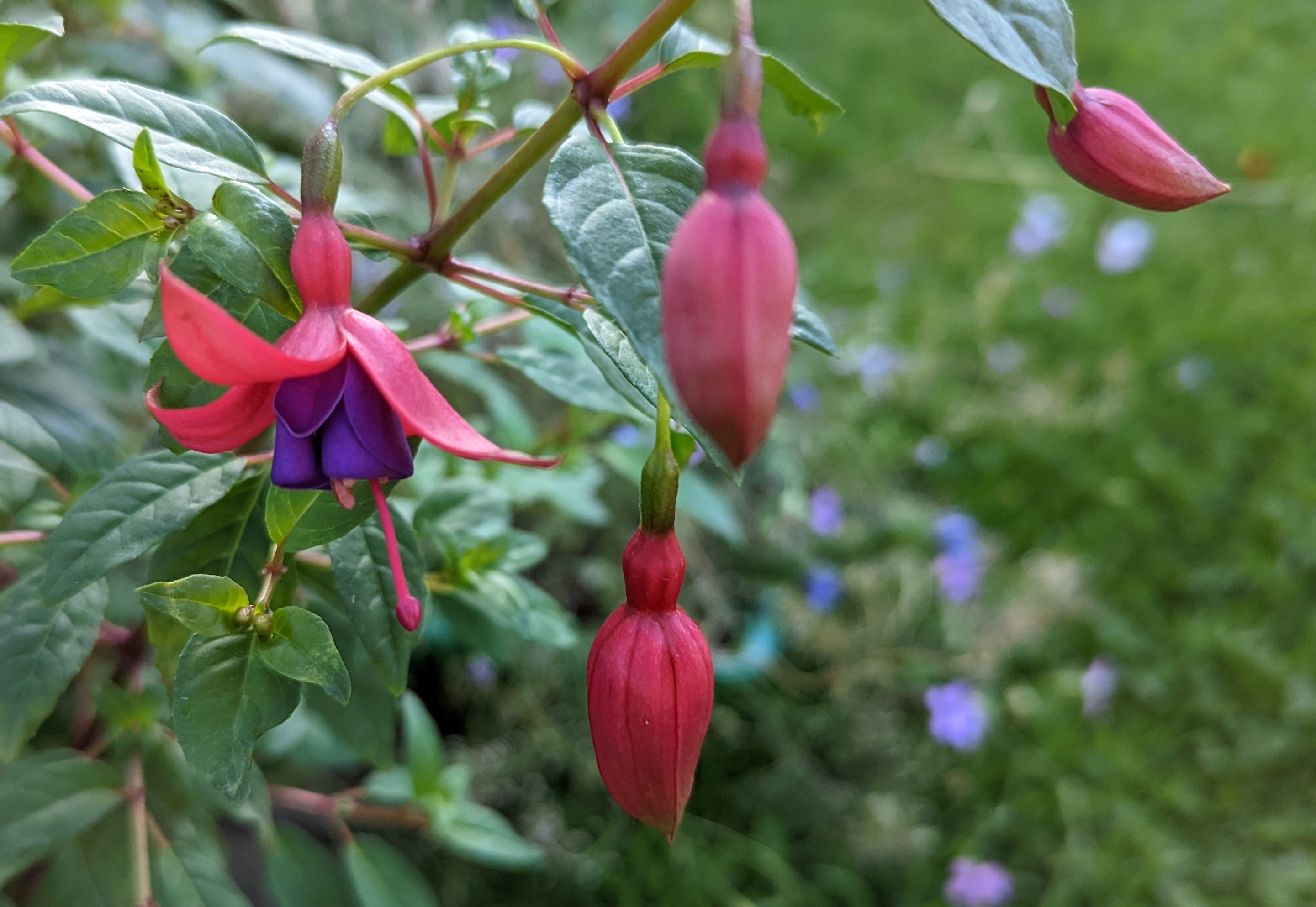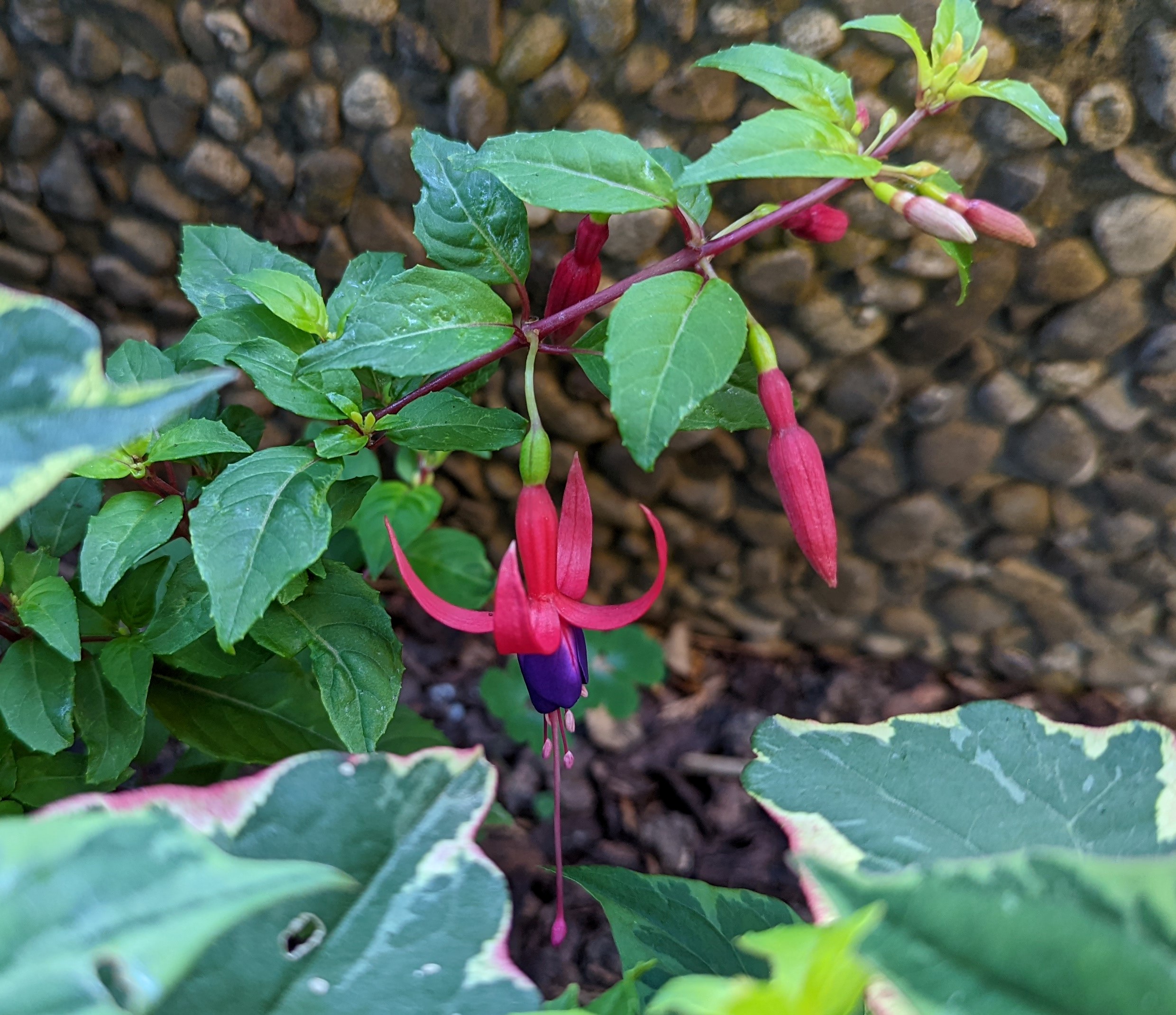 Das ist die mit den bunten Blättern Fu.mag.tricolor, die Blüten sind noch nicht geöffnet!