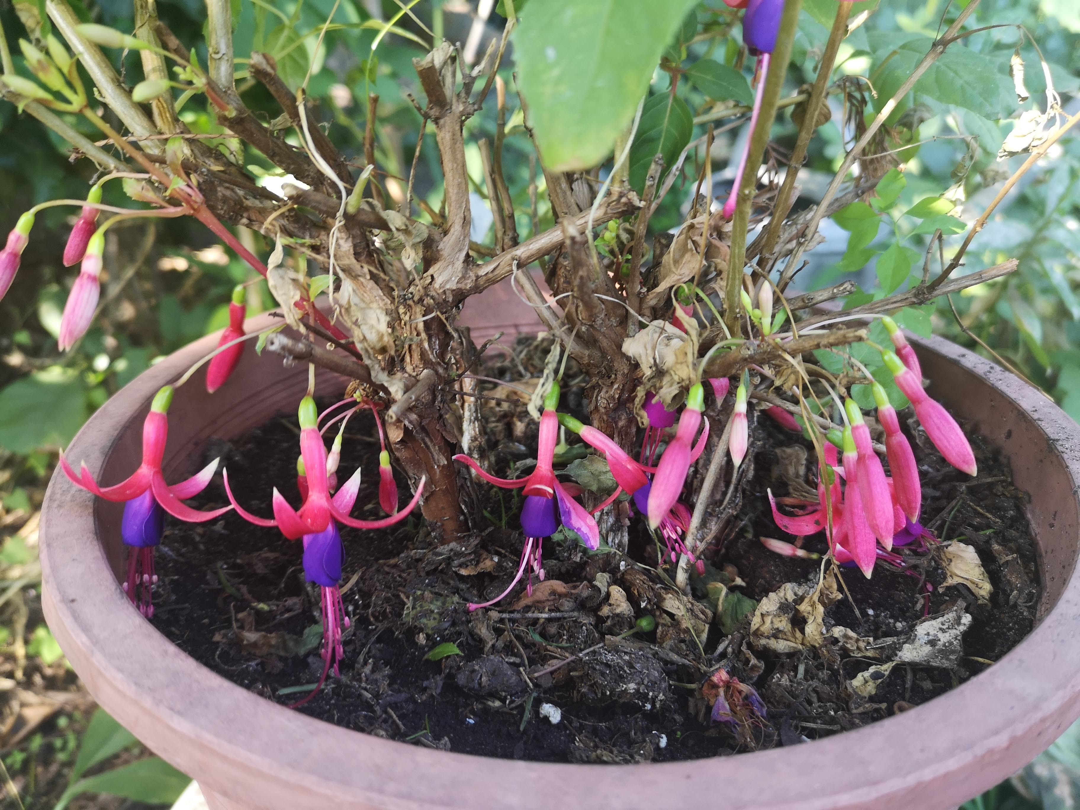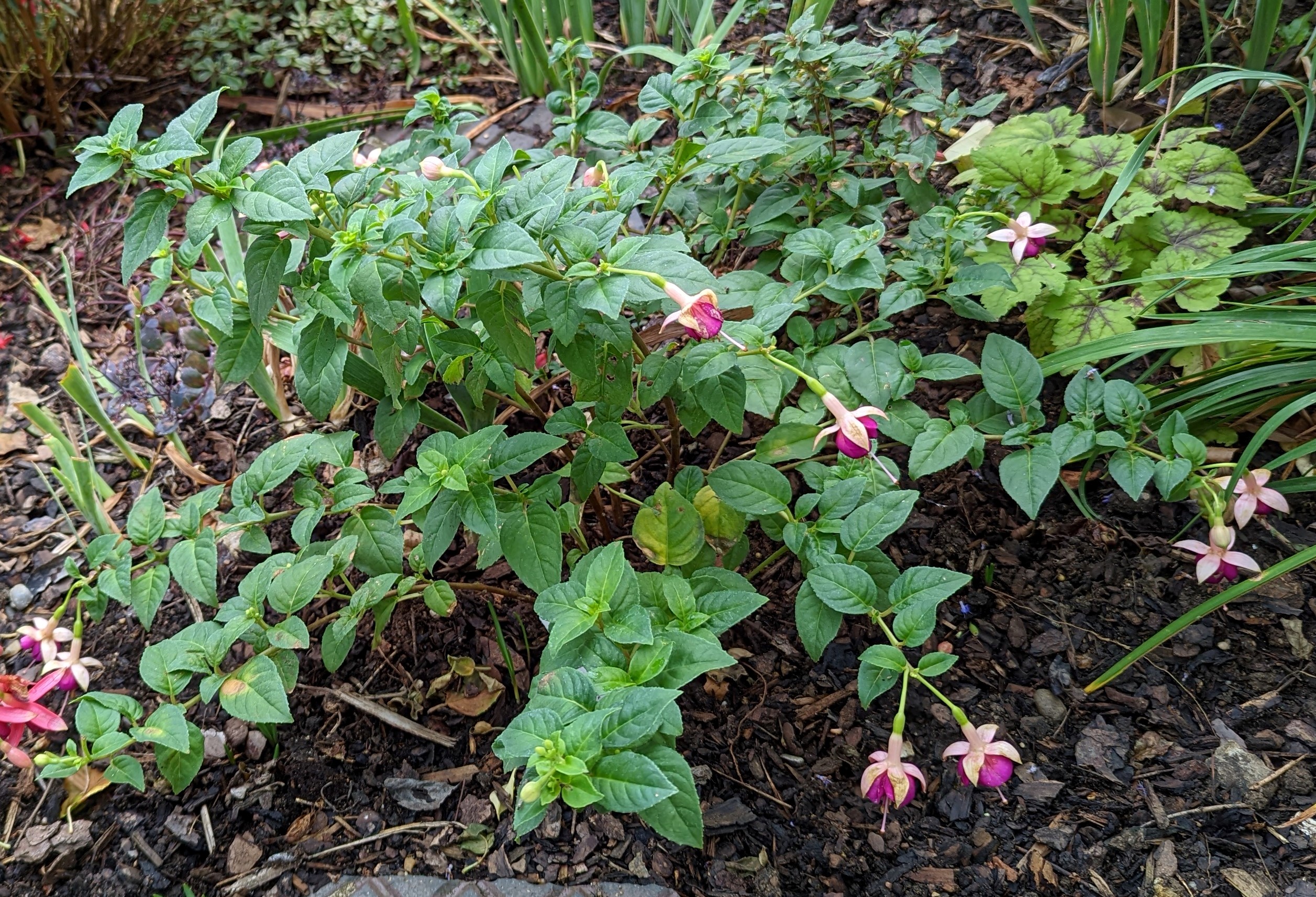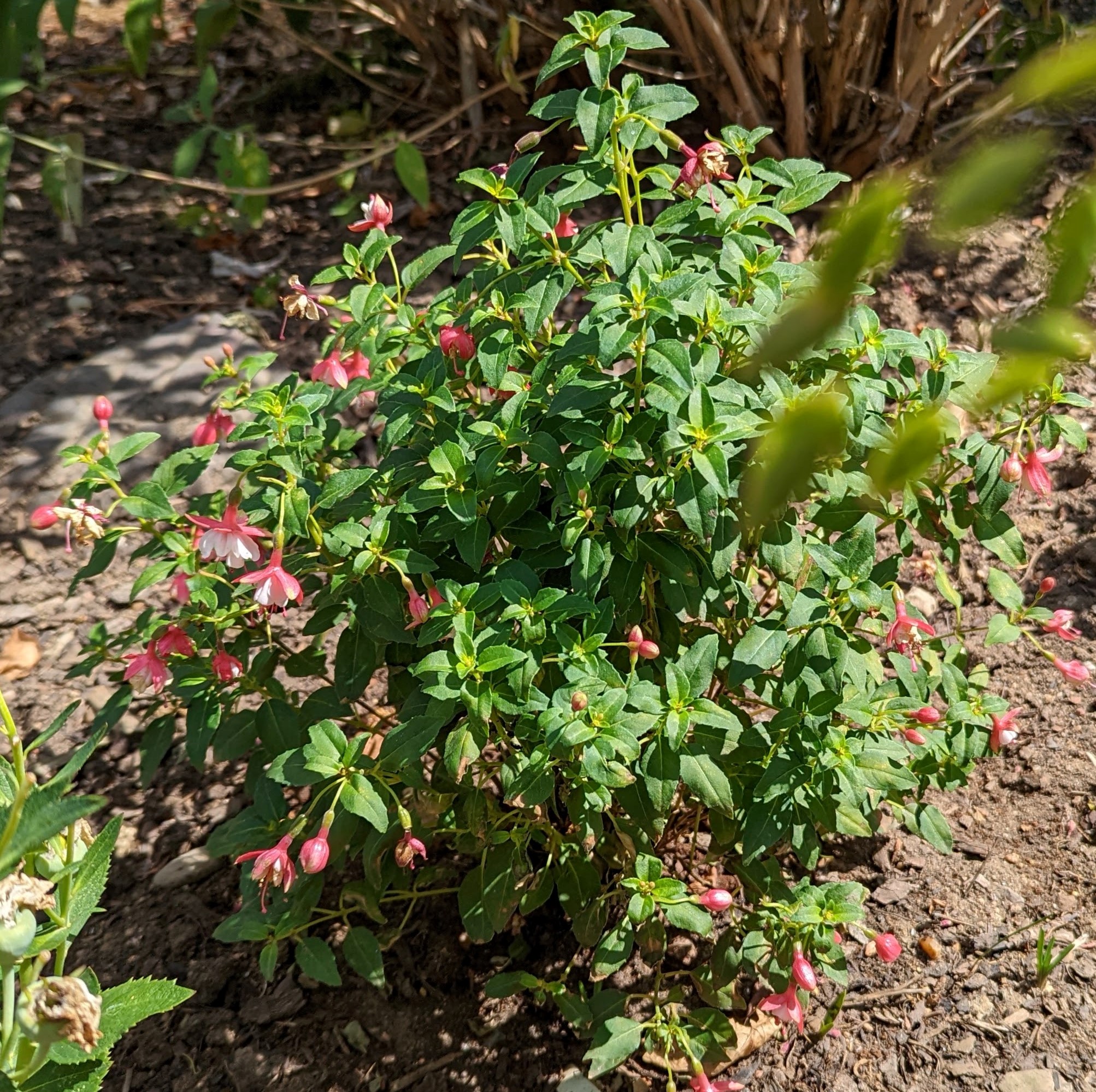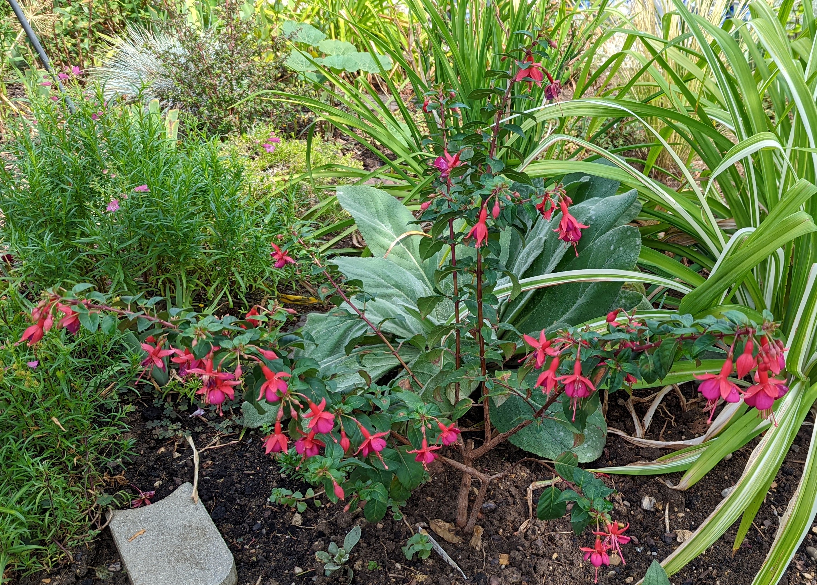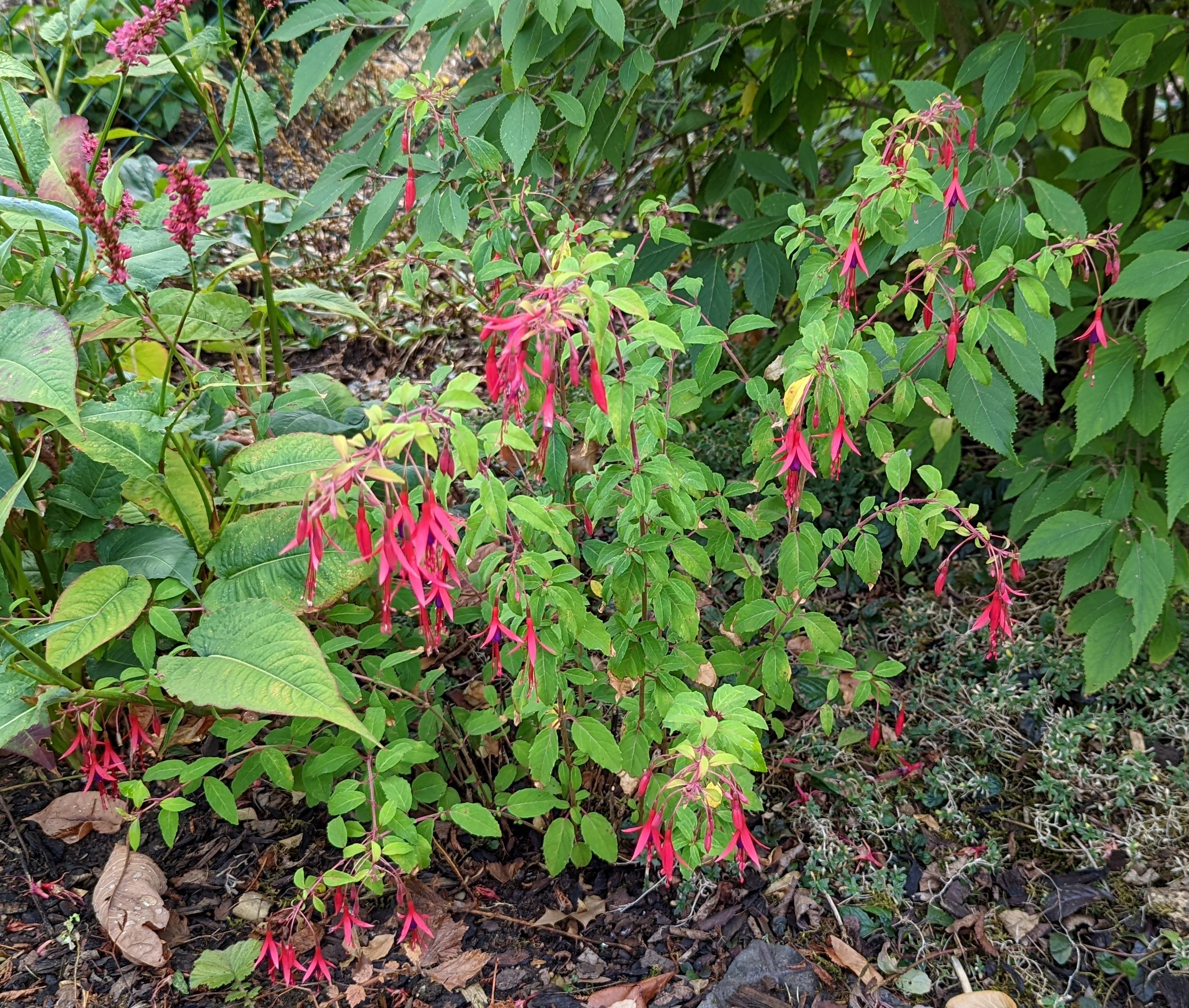 Wie gut, dass es winterharte Fuchsien gibt. Überraschend hatte ich heute einige neue Blüten und bin total happy damit!