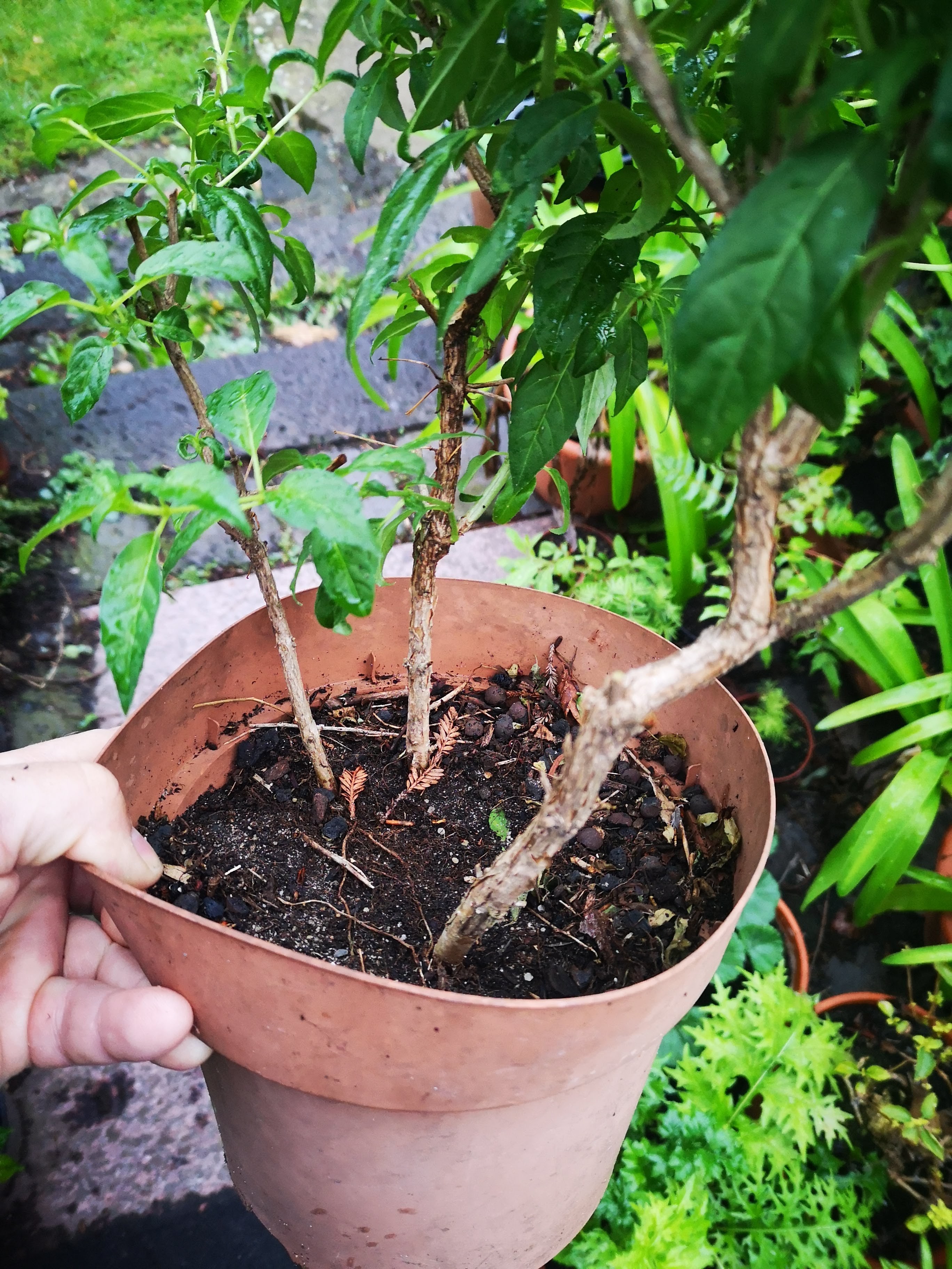 Ungefähr 50 winterharte habe ich im Bestand, davon 27 ausgepflanzt. Jetzt muss ich erst mal meine Fuchsienliste aktualisieren. Dann kann ich alle benennen.