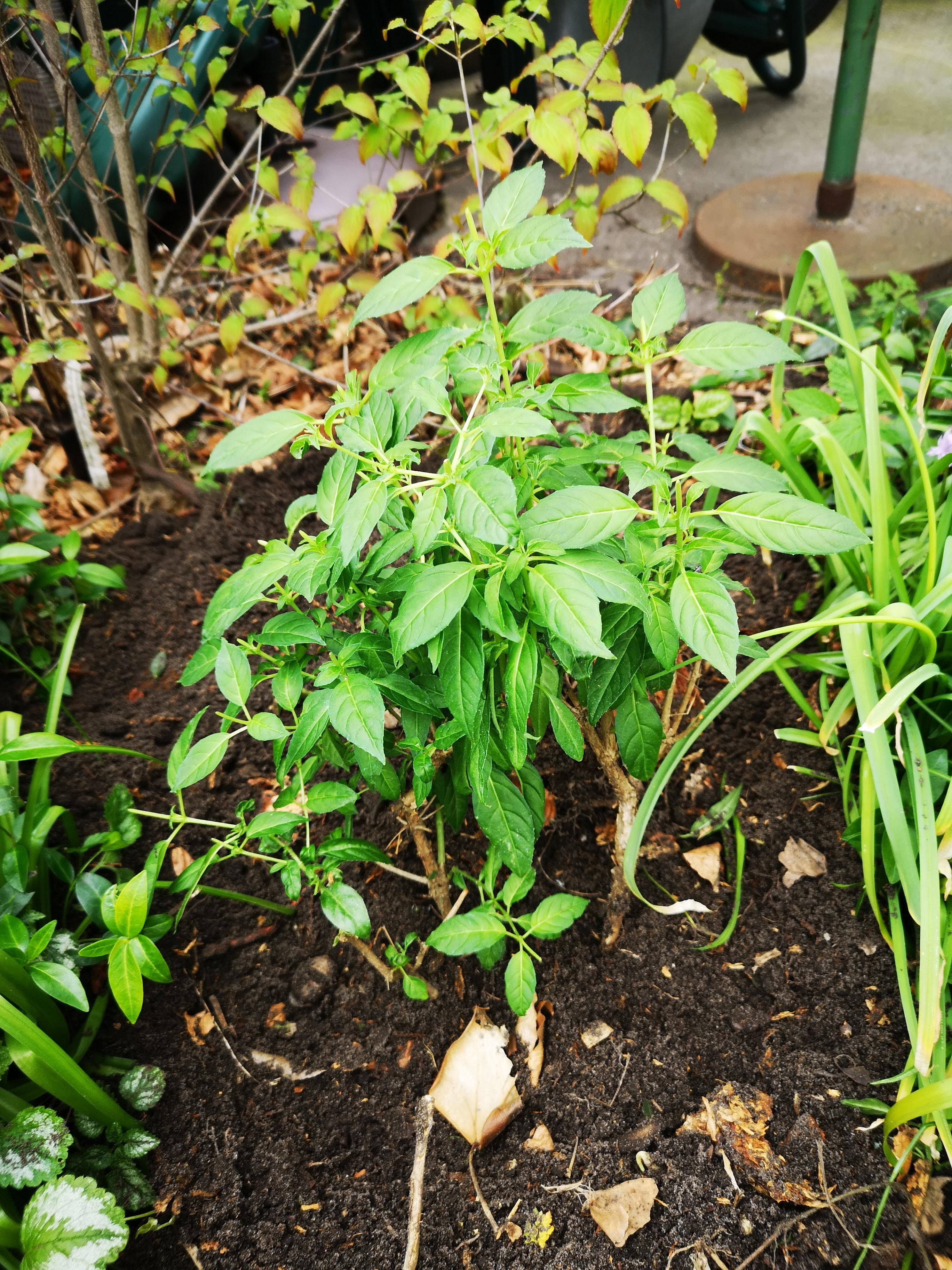 Ich habe heute auch die Plätze angesehen, wo ich winterharte Fuchsien gepflanzt habe, im letzten Oktober, kurz vorm Einwintern der Fuchsien.