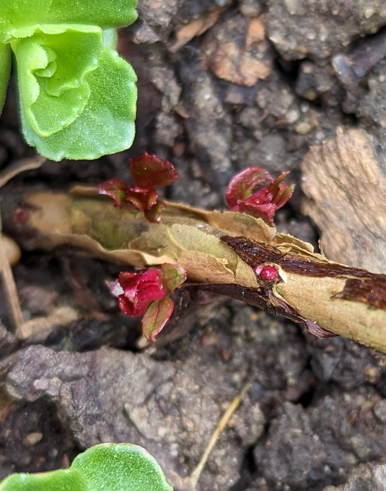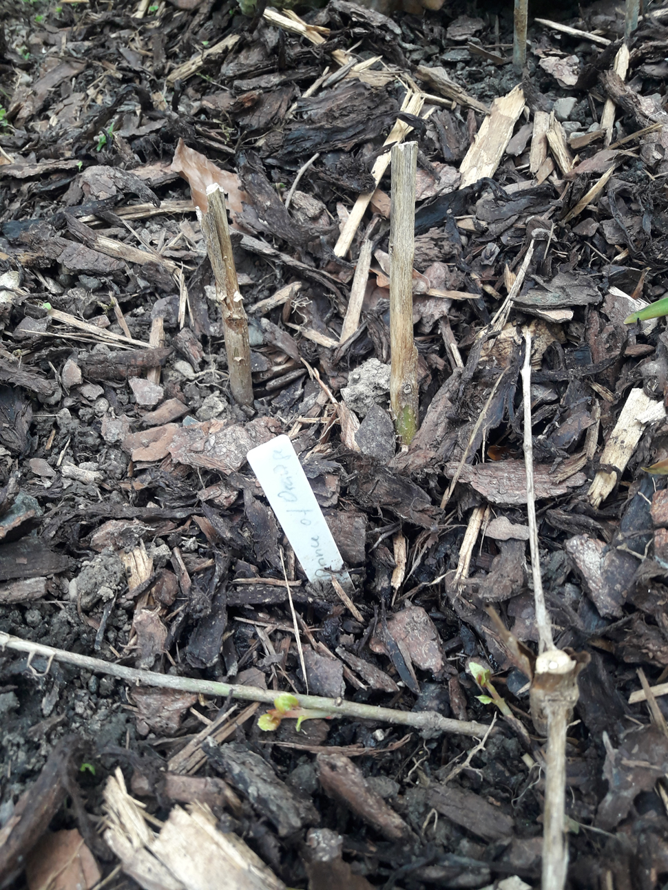 Gestern haben wir das Wetter genutzt und Fuchsien aus der Grube geholt, 5 Wochen später als letztes Jahr, aber das Wetter hatte bisher nicht mitgespielt. Viele haben in der Grube schon gut ausgetrieben gehabt. Von der deutschen Perle fiel ein Austrieb, ähnlich gewachsen wie eine Koralle ab. Ich versuche mal den Austrieb wachsen zu lassen. Dann noch die ausgepflanzten winterharten Fuchsien abgedeckt und Freude: Die Arauco hat teils oberirdisch am alten Holz ausgetrieben. Die reitzii hat auch schon große Austriebe und einige andere auch.