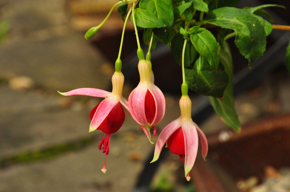 Auf jeder Seite war ein Schild mit dem Namen der Fuchsie, die gepflanzt war. 'Anita' und 'Genii' waren die anderen beiden.....