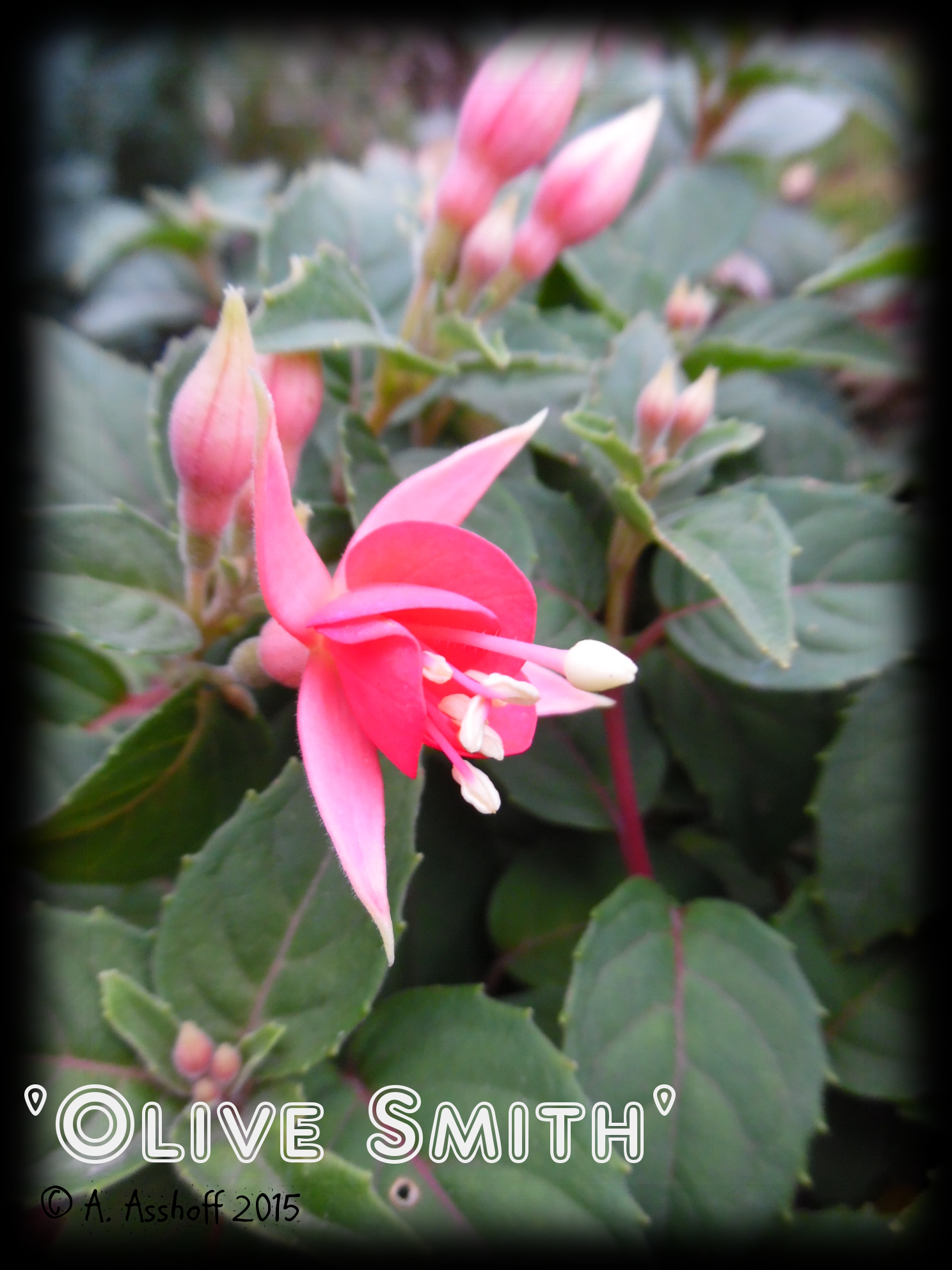 'Olive Smith' gehörte zu den ersten Fuchsien die ich damals bekam und genau diese eine Pflanze hab ich immernoch. Sie bildet schöne kugelige Büsche, ohne dass man entspitzen muss, sie blüht sehr reich ohne wirkliche Blühpause. Man sollte sie allerdings gut ausputzen, da sie sehr zur Beerenbildung neigt bzw die Fruchtknoten nicht abwirft. Wirklich ausreifen wollen die Beeren aber auch nicht, sodass sie eher eintrocknen. Das hemmt jedenfalls die weitere Blütenbildung und sieht irgendwann unschön aus.