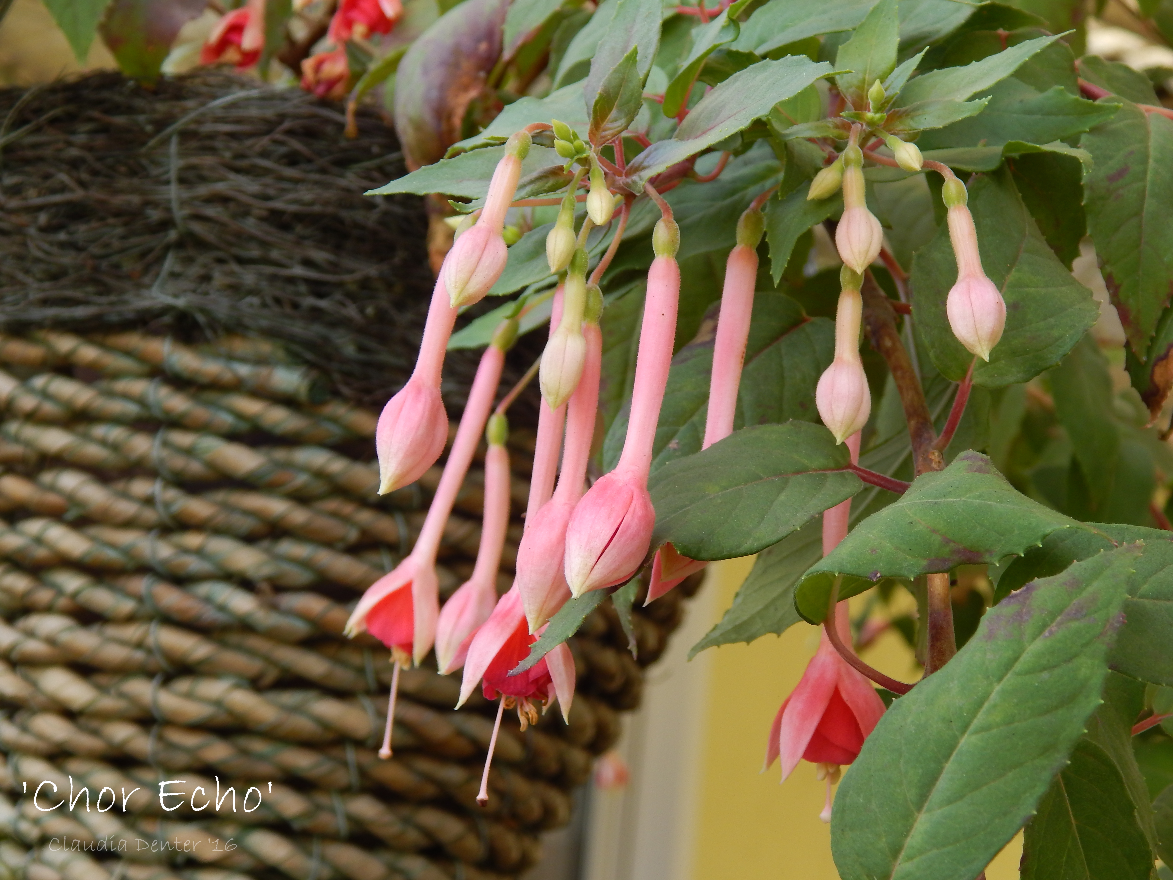 'Chor Echo' ist eine Fuchsie die mit der allgemein bekannten 'Remembering Claire' vergleichbar ist.