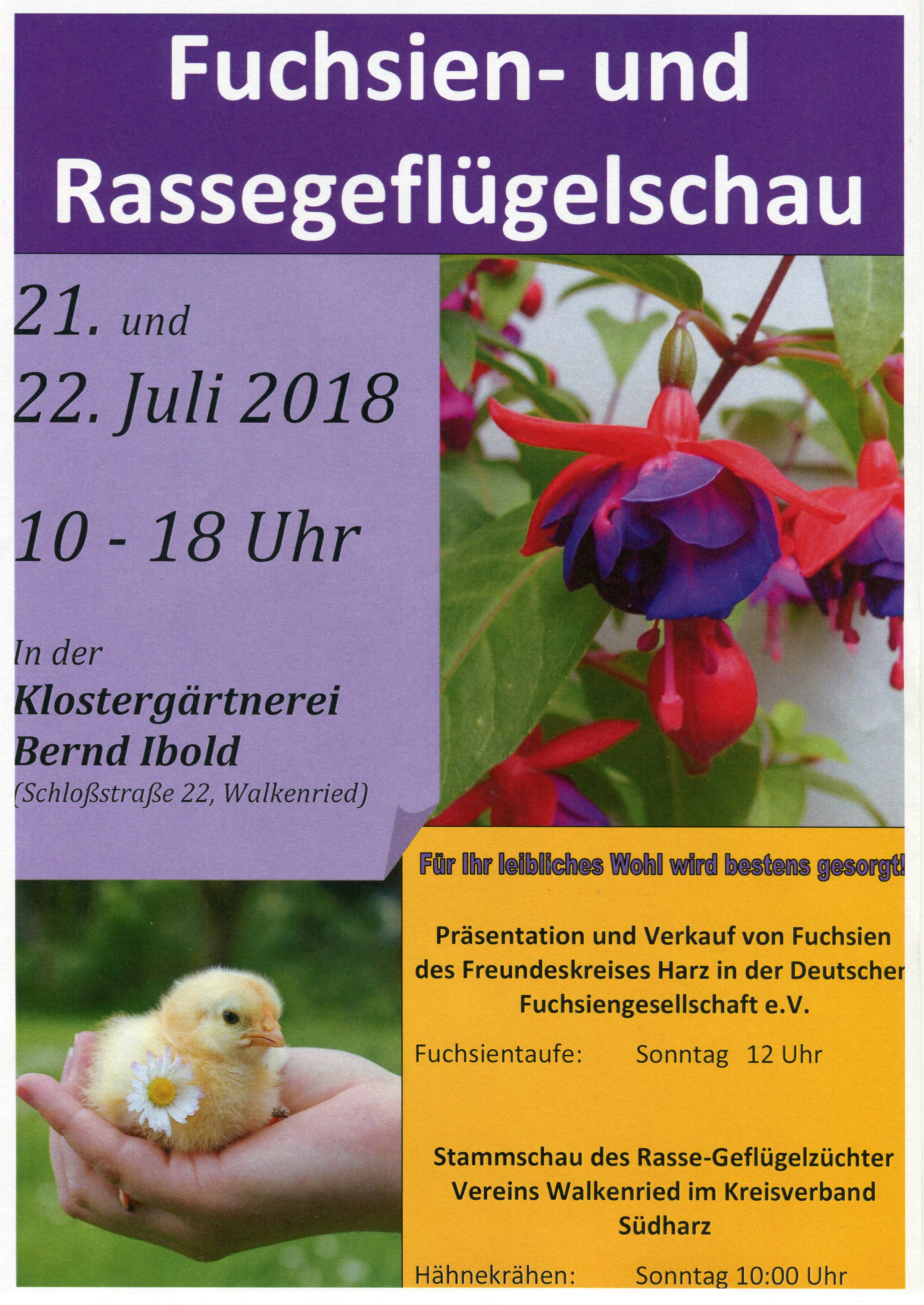 Zu unserer Fuchsienschau in Walkenried am 21.und 22. Juli laden wir wieder alle Fuchsien- und Blumenfreunde recht herzlich ein.