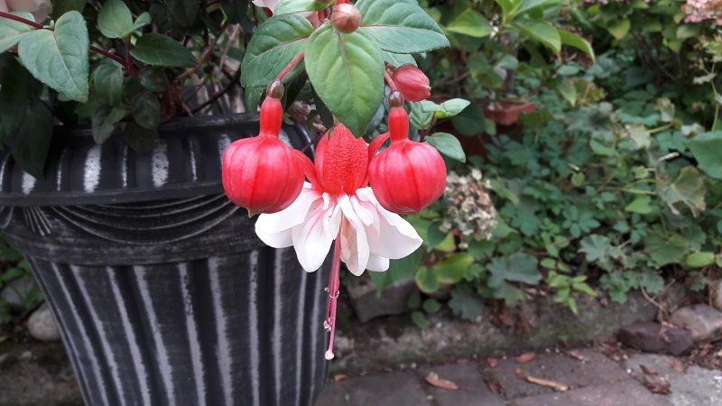 Sie blüht durchgehend, ist für alle Formen geeignet, und gilt als eine gute Beetfuchsie!